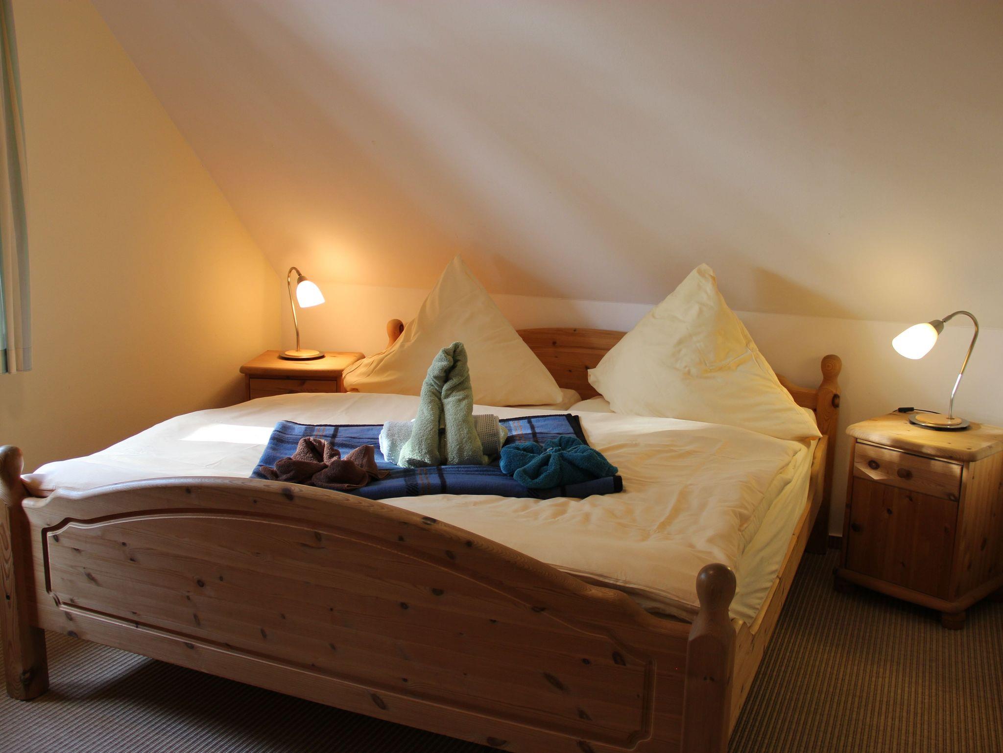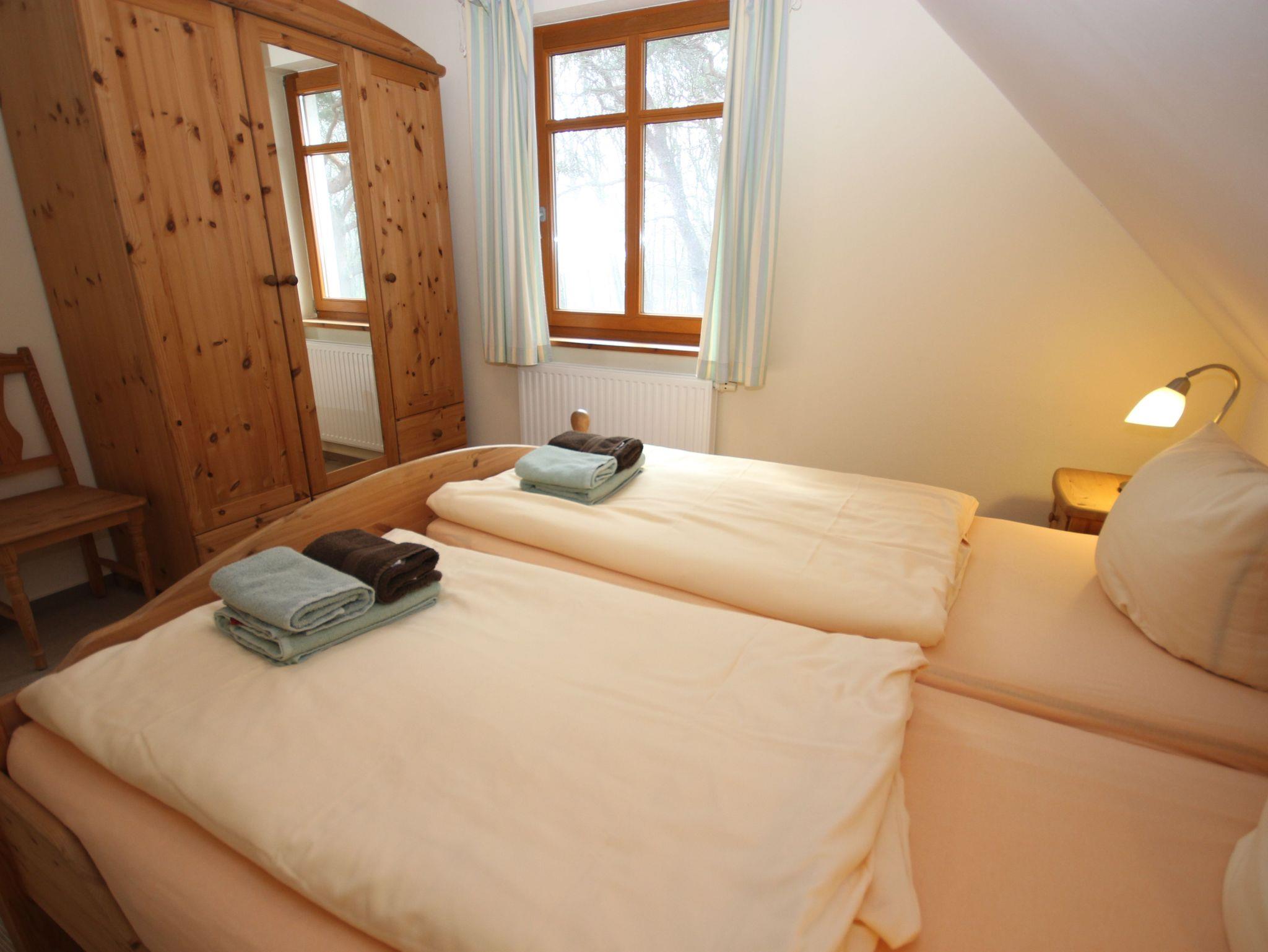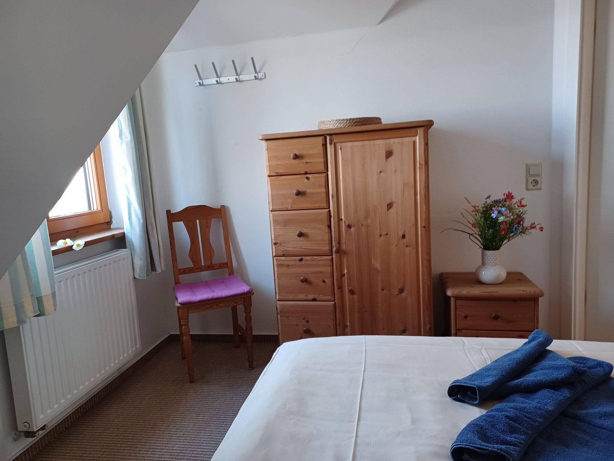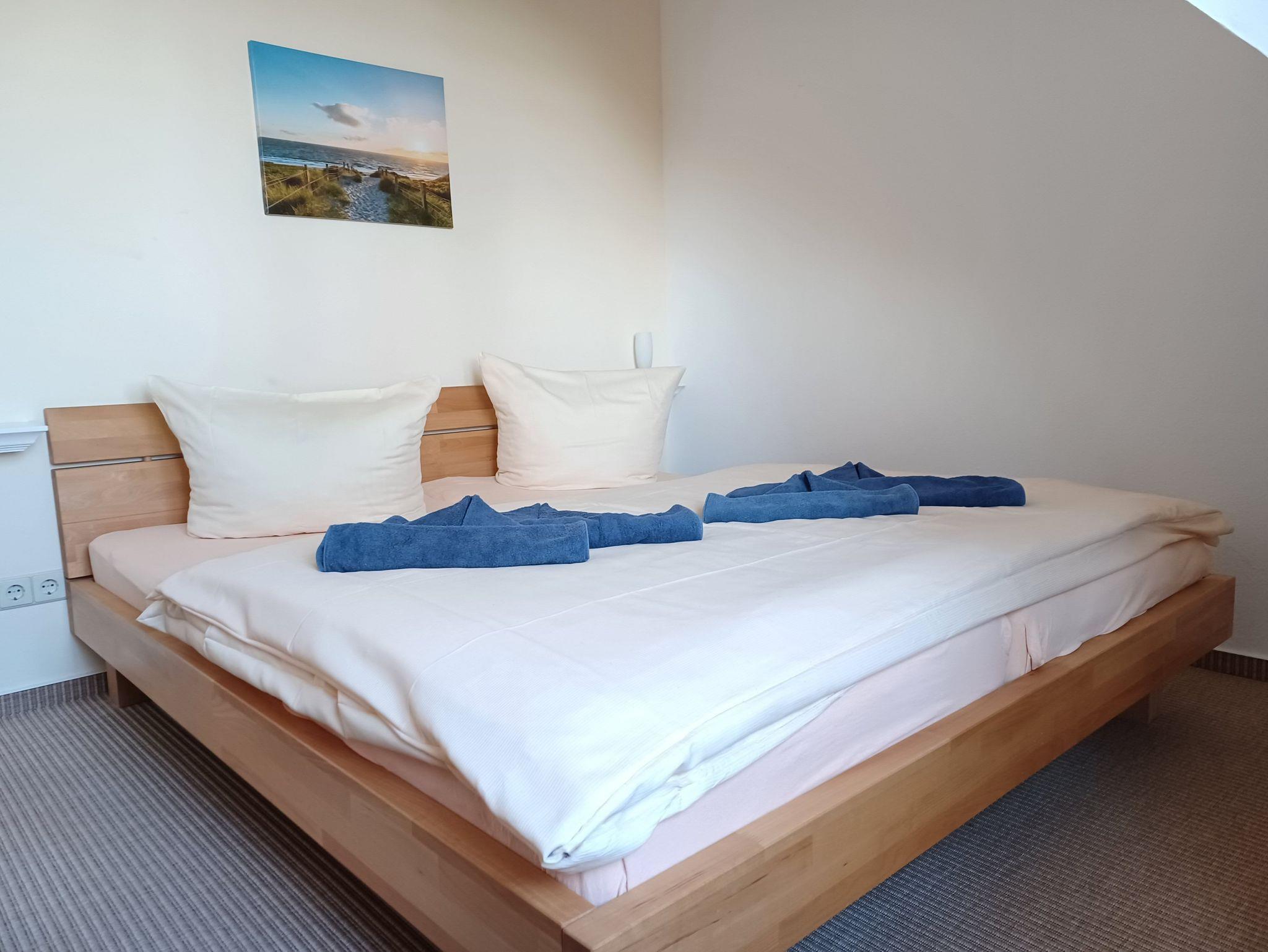 Die Ferienwohnung 3 befindet sich im Obergeschoss und verfügt über 2 Schlafzimmer mit Doppelbetten (jeweils 1,80 x 2,00 m mit getrennten Matratzen). Die Bettwäsche und Handtücher sind für Sie inklusive.