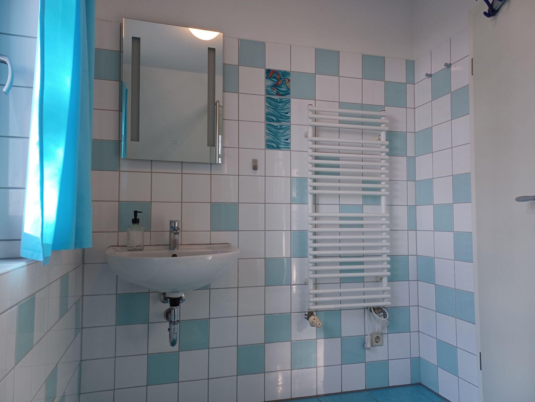 Das Badezimmer ist mit Dusche, WC und Fön ausgestattet.