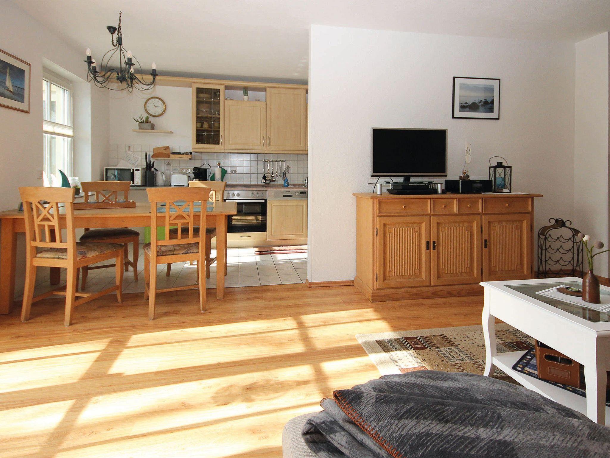 die Zentral gelegene Ferienwohnung Bernstein ist für 1 bis 3 Personen geeignet. Die Wohnung verfügt über ein Wohnzimmer mit Schlafcouch 1,10 x 2,30 m, einem Schlafzimmer (zum ruhigen Innenhof) mit Doppelbett 1,80 x 2,00 m getrennte Matratzen ), offene Küchenzeile und Bad mit Regenwalddusche. Die Terrasse befindet sich mit Süd/Ost Ausrichtung zur Schmiedestraße hin, Nähe L 21. Zu Fuß erreichen Sie den Strand in ca. 10 min und die nächste Einkaufsmöglichkeit in ca. 4 min. Die Ferienwohnung Bernstein bietet alles, was für den täglichen Bedarf benötigt wird (z.B. Senseo Pad- und Kaffeemaschine, Mikrowelle, Toaster, Wasserkocher, Sandwich- Toaster, Bügelbrett mit Bügeleisen, Gefrierschrank, Notfallbox mit Drogerieartikeln, Blue- ray DVD- Player.