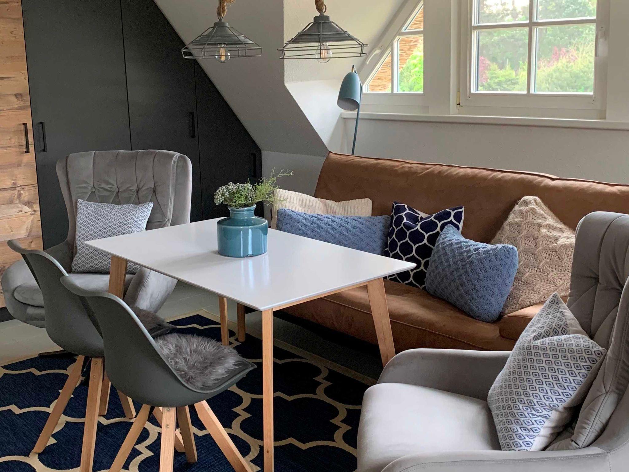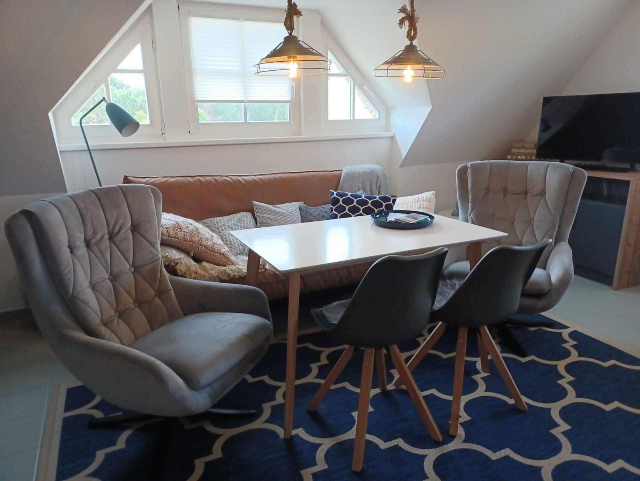 liebevoll eingerichtete Ferienwohnung im Obergeschoss über 2 Etagen. Die Wohnung liegt direkt hinter dem Deich im Ferienhof am Fischland etwa 1,5 km vor Wustrow in einer kleinen Ferienanlage.Die sonnige Terrasse mit Strandkorb lädt zum Verweilen ein oder Sie genießen den Sonnenuntergang am Strand mit einem Glas Wein. Das offen gestaltete Wohnzimmer mit den bequemen Sitzmöbeln bietet Platz für 2 Personen. Die offene Schlafgalerie mit Doppelbett 1,60 x 2,00 m und einer durchgehenden Matratze bietet Ihnen einen erholsamen Schlaf. In der separaten Küchenzeile finden Sie eine Spülmaschine, Lapicola- Pad Kaffeemaschine, einen Backofen und ausreichen Küchenutensilien, um gemeinsam leckere Speisen zu kochen. Die Wohnung verfügt über einen kostenlosen WLAN- Zugang. Die Bettwäsche ist inklusive und Handtücher sind bei der Zimmervermittlung zubuchbar - ein Wäschepaket 19,50 (1 Badetuch, 1 Handtuch, 1 Laken, 1 Kopfkissen, 1 Bezug). In der Wohnung ist das Rauchen nicht erlaubt.