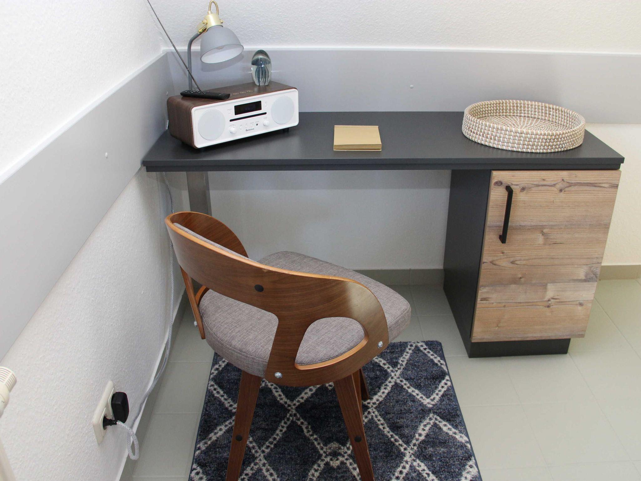 liebevoll eingerichtete Ferienwohnung im Obergeschoss über 2 Etagen. Die Wohnung liegt direkt hinter dem Deich im Ferienhof am Fischland etwa 1,5 km vor Wustrow in einer kleinen Ferienanlage.Die sonnige Terrasse mit Strandkorb lädt zum Verweilen ein oder Sie genießen den Sonnenuntergang am Strand mit einem Glas Wein. Das offen gestaltete Wohnzimmer mit den bequemen Sitzmöbeln bietet Platz für 2 Personen. Die offene Schlafgalerie mit Doppelbett 1,60 x 2,00 m und einer durchgehenden Matratze bietet Ihnen einen erholsamen Schlaf. In der separaten Küchenzeile finden Sie eine Spülmaschine, Lapicola- Pad Kaffeemaschine, einen Backofen und ausreichen Küchenutensilien, um gemeinsam leckere Speisen zu kochen. Die Wohnung verfügt über einen kostenlosen WLAN- Zugang. Die Bettwäsche ist inklusive und Handtücher sind bei der Zimmervermittlung zubuchbar - ein Wäschepaket 19,50 € (1 Badetuch, 1 Handtuch, 1 Laken, 1 Kopfkissen, 1 Bezug). In der Wohnung ist das Rauchen nicht erlaubt.