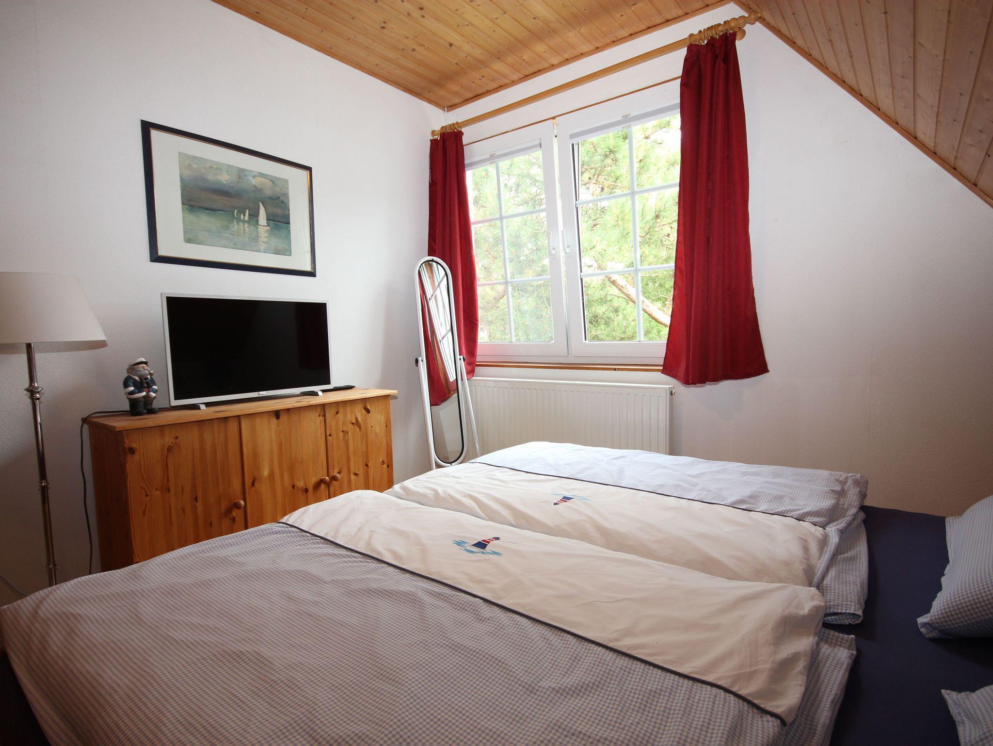 Das Schlafzimmer hat ein Doppelbett 1,80 x 2,00 m ( getrennte Matratzen ) und ein Einzelbett (1,40 x 2,00 m) für eine Aufbettung. Die Ferienwohnung wird mit Bettwäsche und Handtücher übergeben (Erstausstattung - wöchentlicher Wechsel gegen Aufpreis möglich). Die Wohnung verfügt über einen WLAN- Anschluss und ist eine Nichtraucherwohnungen.