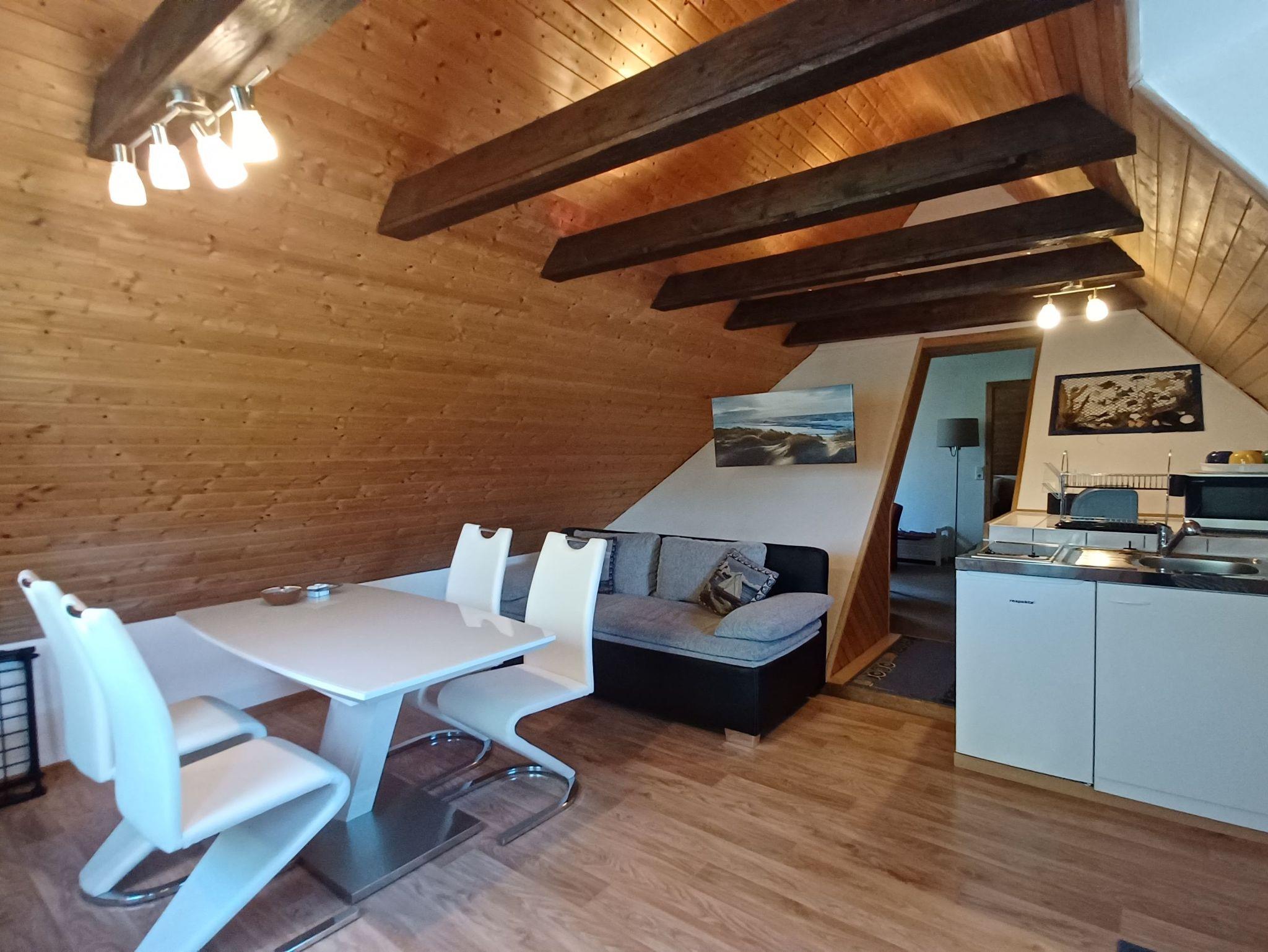 In der Wohnküche finden Sie eine Miniküche, Mikrowelle und Kühlschrank, sowie eine umfangreiche Küchenausstattung.
