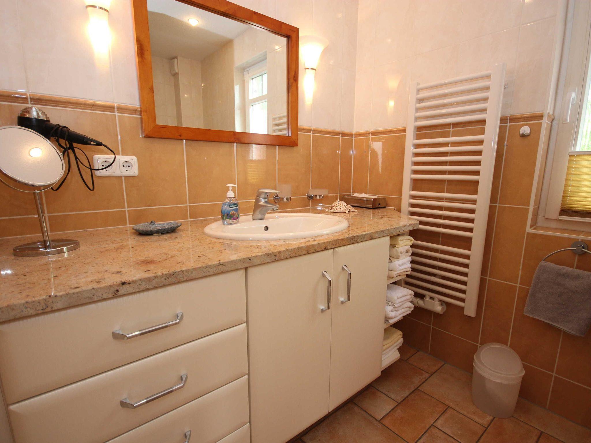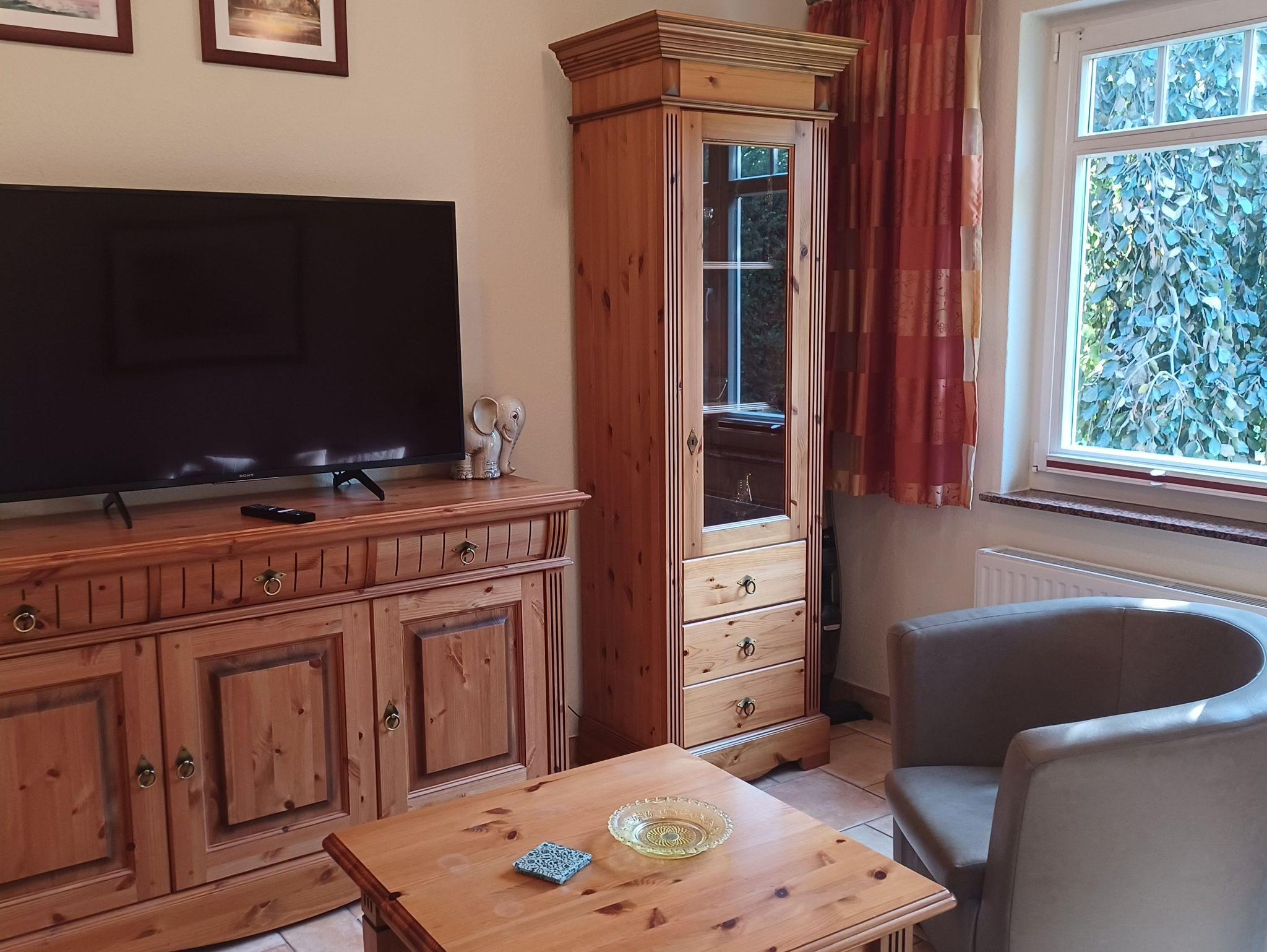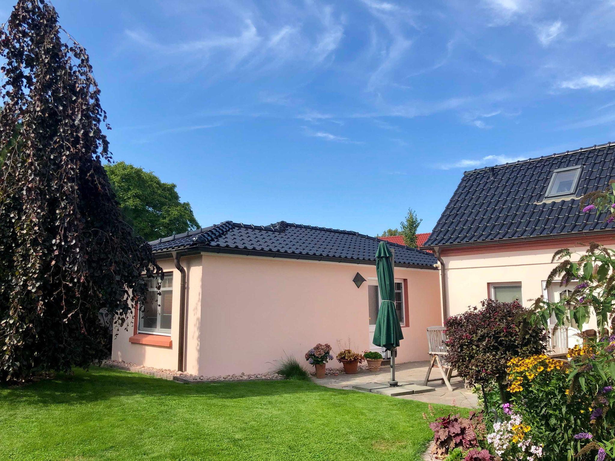 ein komfortabel eingerichtetes Ferienhaus mit ca. 39 qm Wohnfläche in sehr ruhiger Lage im Ortskern von Wustrow. Die Terrasse mit Strandkorb schließt sich direkt am Garten an, mit einer Liegewiese am Haus. An das gemütliche Wohnzimmer mit moderner Einrichtung, SAT- TV und Radio , sowie einer gemütlichen Couch schließt sich die offen gestaltete und moderne Küche mit umfangreicher Ausstattung an, wie Herd, Mikrowelle mit Grillfunktion, Geschirrspüler und dem Essplatz für 2 Personen. Das Schlafzimmer ist mit einem mit Doppelbett (1.80 x 2.00 m) und getrennten Matratzen ausgestattet. Das großzügige Duschbad verfügt über eine Fußbodenheizung.