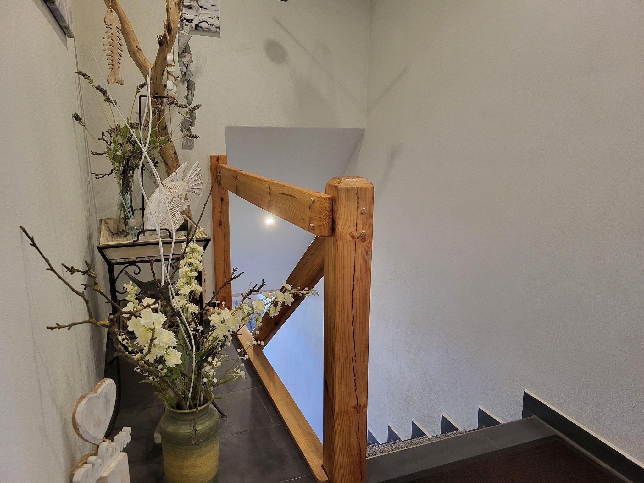die Ferienwohnung im Obergeschoss erstreckt über 2 Etagen. Schlafen unterm Sternenhimmel im Dachgeschoss, mit Doppelbett 2,00 x 1,80 m (getrennte Matratzen). Liebevoll und fachgerecht 2017 grundsaniert, alles wurde mit natürlichen Baustoffen hergerichtet. Freigelegtes altes Sichtfachwerk und Naturholzböden zeigen die Persönlichkeit der Wohnung. Naturholzmöbel sorgen für ein wohnliches Ambiente. Der offene Wohnstil mit komplett ausgestatteter Küchenzeile, ein lichtdurchflutetes Bad und der großzügige Wohnraum sorgen für Gemütlichkeit. Im großen naturbelassenen Garten lädt eine sonnige Gemeinschaftsterrasse am alten Apfelbaum zum verweilen ein.Ein Parkplatz befindet sich auf dem Grundstück. Die Wohnung ist nicht geeignet für Kinder unter 6 Jahren. Die Ferienwohnung wir mit Bettwäsche und Handtücher übergeben.
