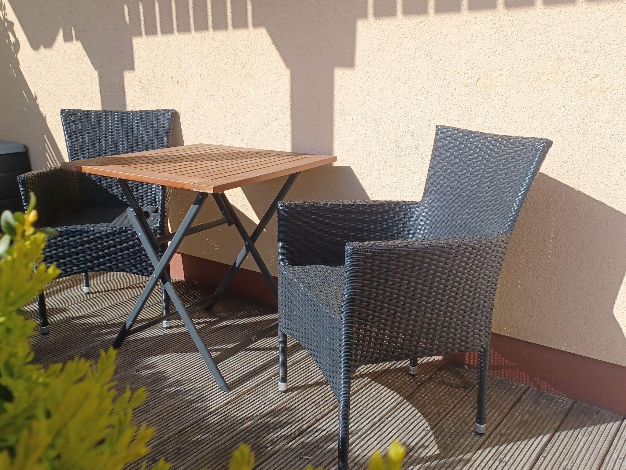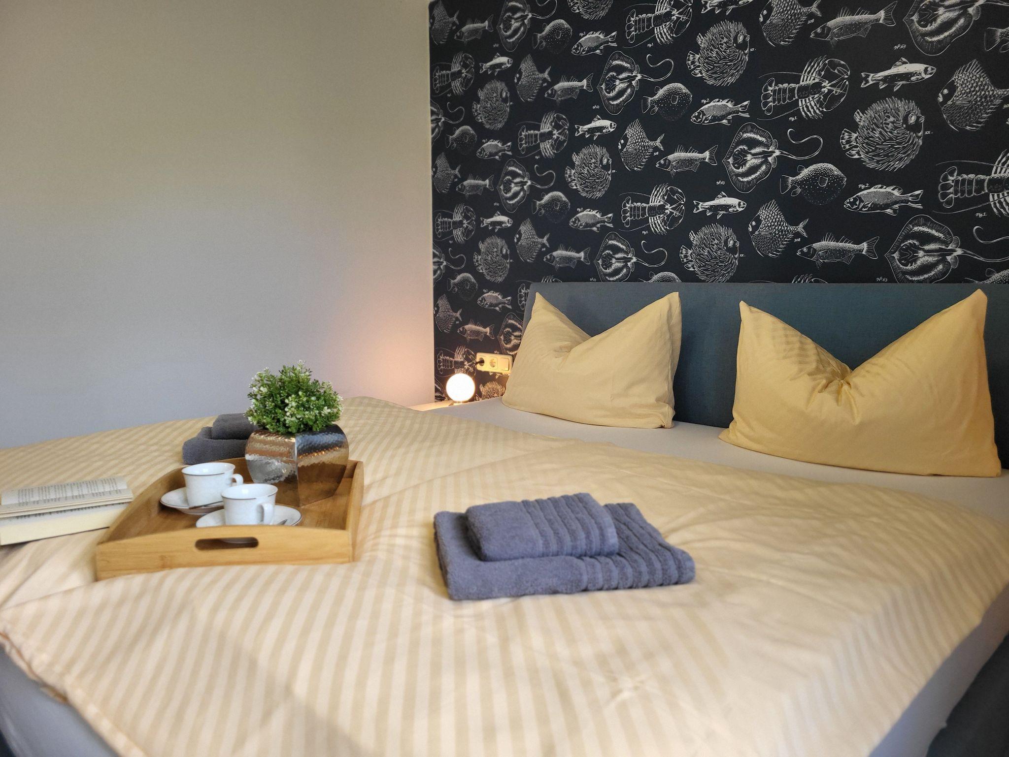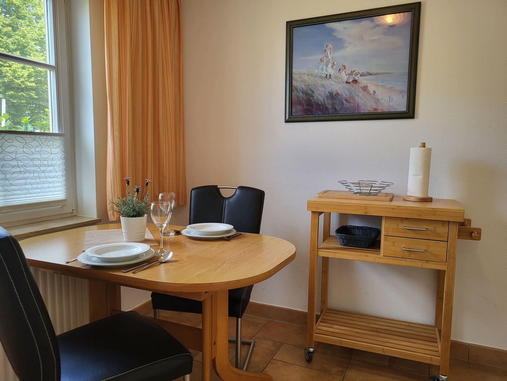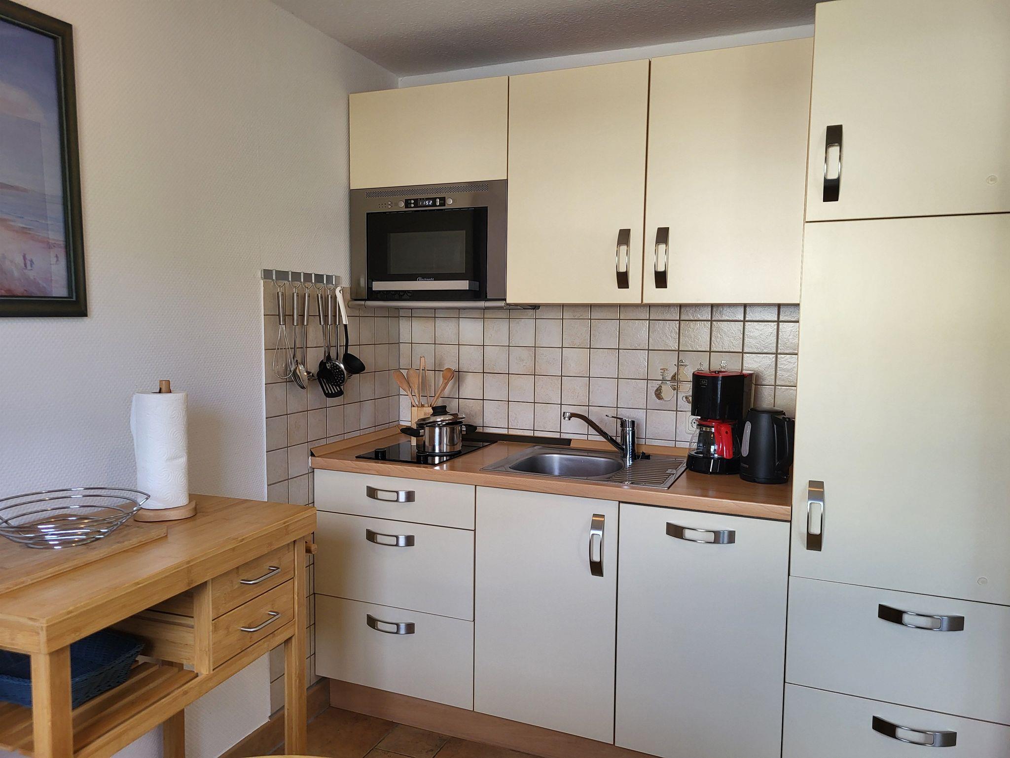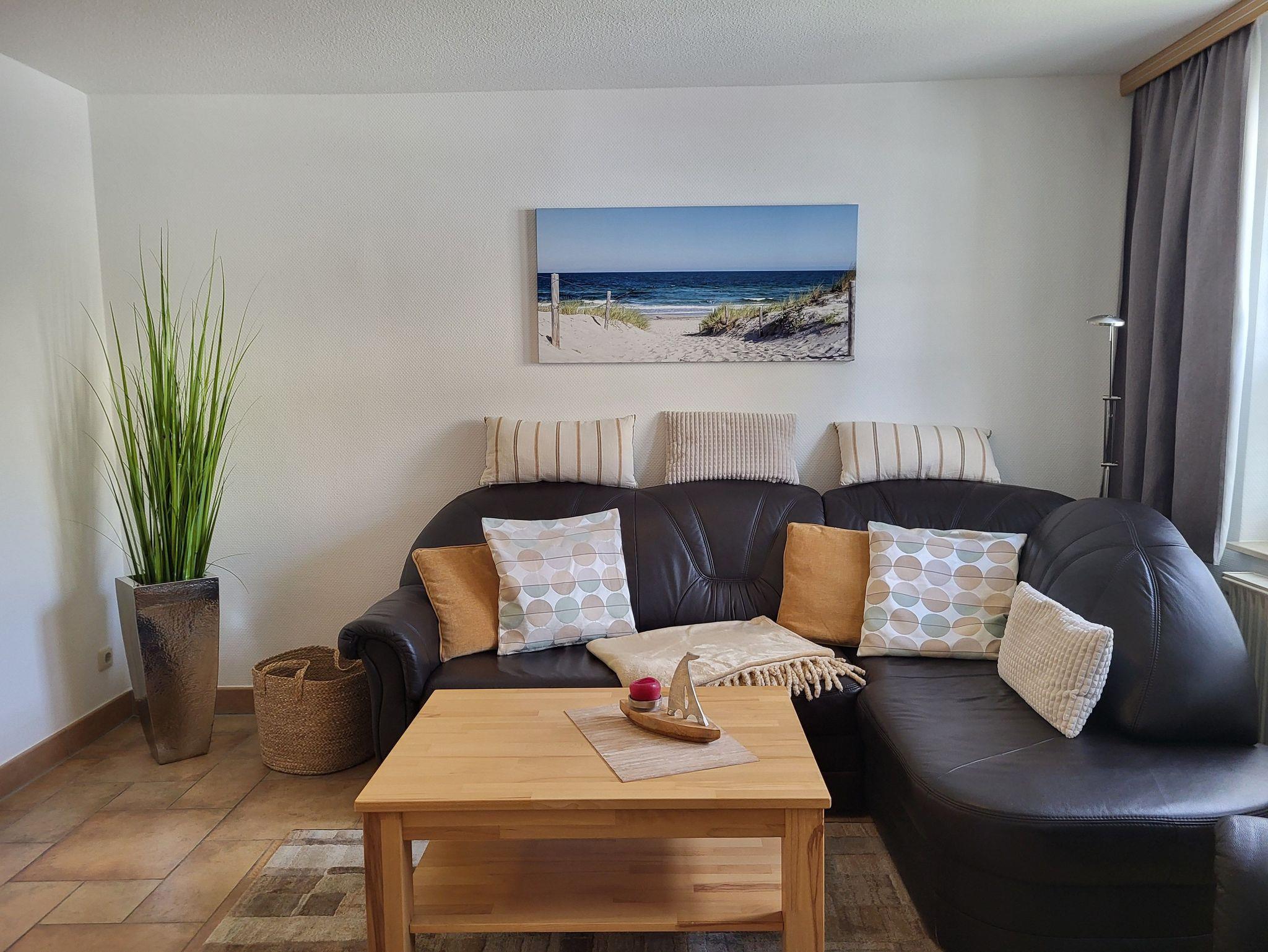 mit viel Liebe zum Detail eingerichtete Ferienwohnung im Erdgeschoss in ruhiger Süd- Lage. Die Terrasse direkt vor der Wohnung lädt zum gemütlichen Frühstück oder zum Relaxen ein. Der feinsandige Strand ist fußläufig in ca. 5 Minuten zu erreichen. Für unsere Gäste steht der Parkplatz bereit, ebenso ein Fahrradunterstand. Das offene Wohnzimmer verfügt über eine bequeme Eckcouch, SAT- TV, Radio, Zentralheizung und kostenlosem WLAN- Zugang. Die offene Küchenzeile mit Essplatz ist voll ausgestattet mit Geschirrspüler, 2- Platten- Cerankochfeld, Kaffeemaschine, Toaster, Wasserkocher und ausreichend Küchenutensilien. Das Schlafzimmer verfügt über ein Boxspringbett 1,80 x 2,00 m mit durchgehender Matratze. Die Wohnung wird inklusive Bettwäsche und Handtücher (1 Duschtuch, 1 Handtuch pro Pers.) übergeben. Das Bad verfügt über eine Dusche. Es handelt sich um eine Allergikerwohnung. Das Rauchen ist nicht gestattet.