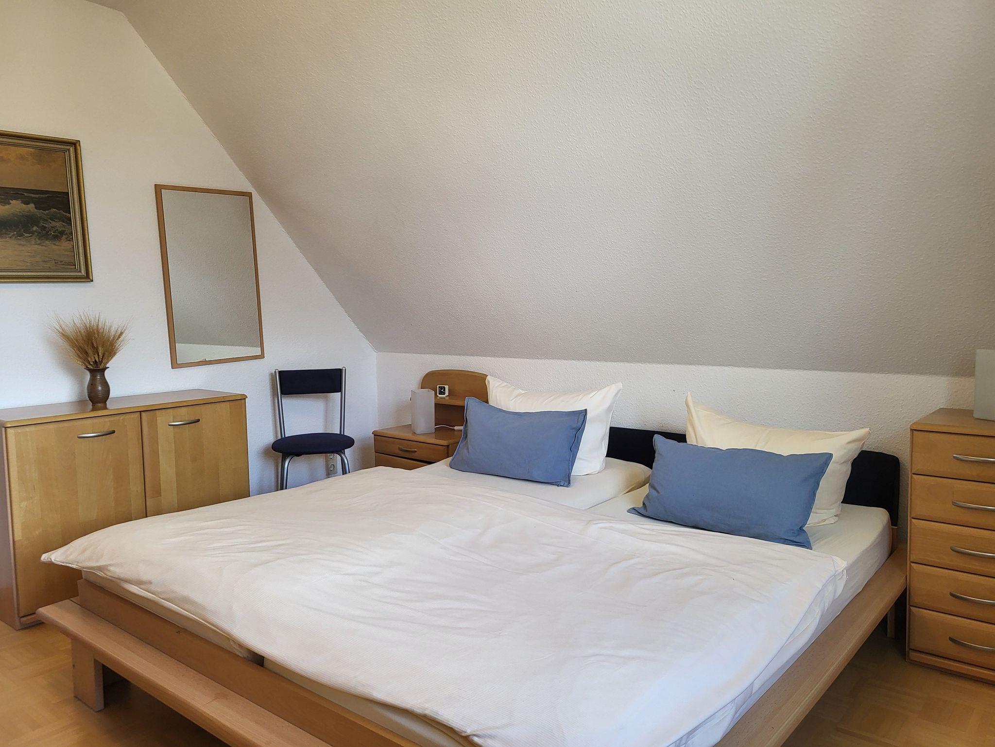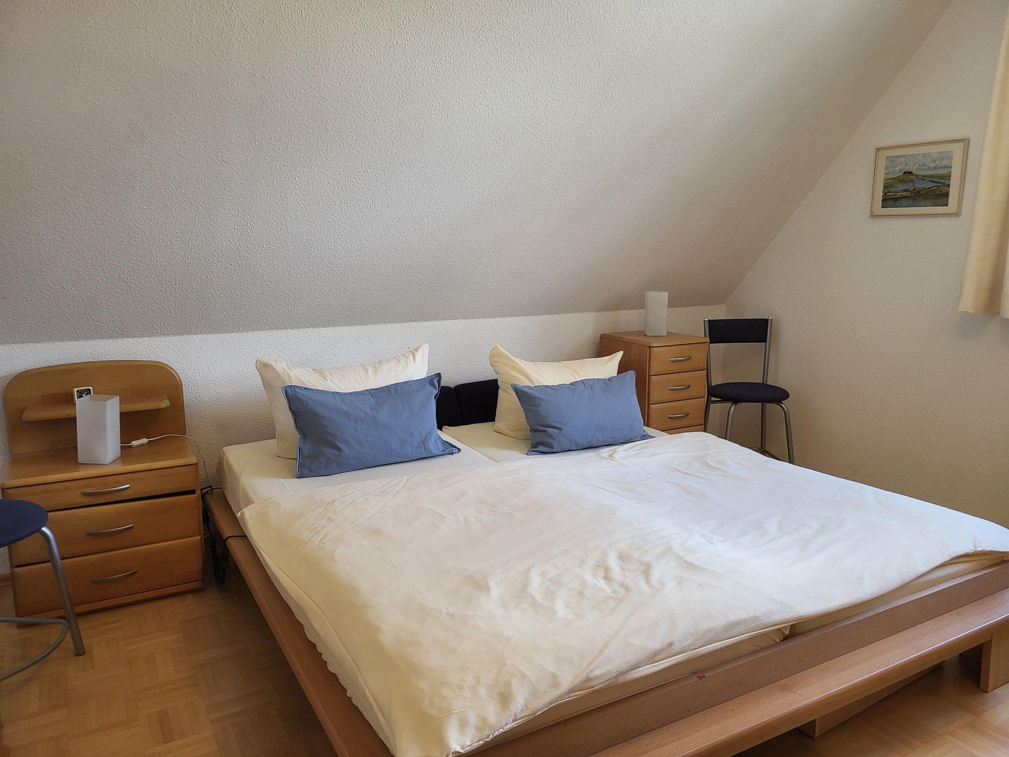 Im 1. Schlafzimmer ist ein Doppelbett 1,80 x 2,00 m und im Kinderzimmer ein Bett 0,90 x 2,00 m (ausziehbar) vorhanden. Die Bettwäsche ist inklusive, Handtücher, können bei der Zimmervermittlung gemietet werden und kosten 7 Euro pro Person (ein Badetuch, ein Handtuch).