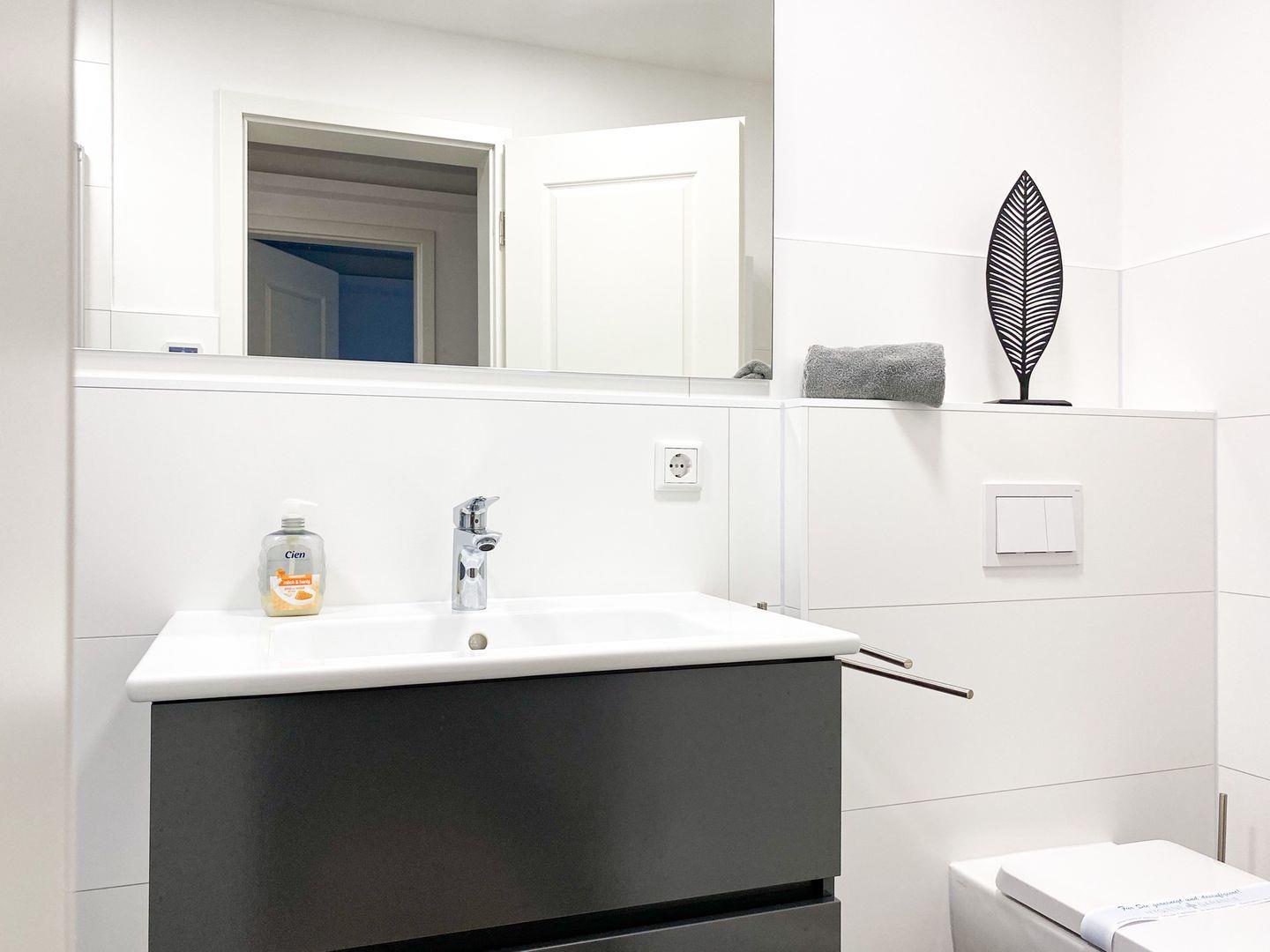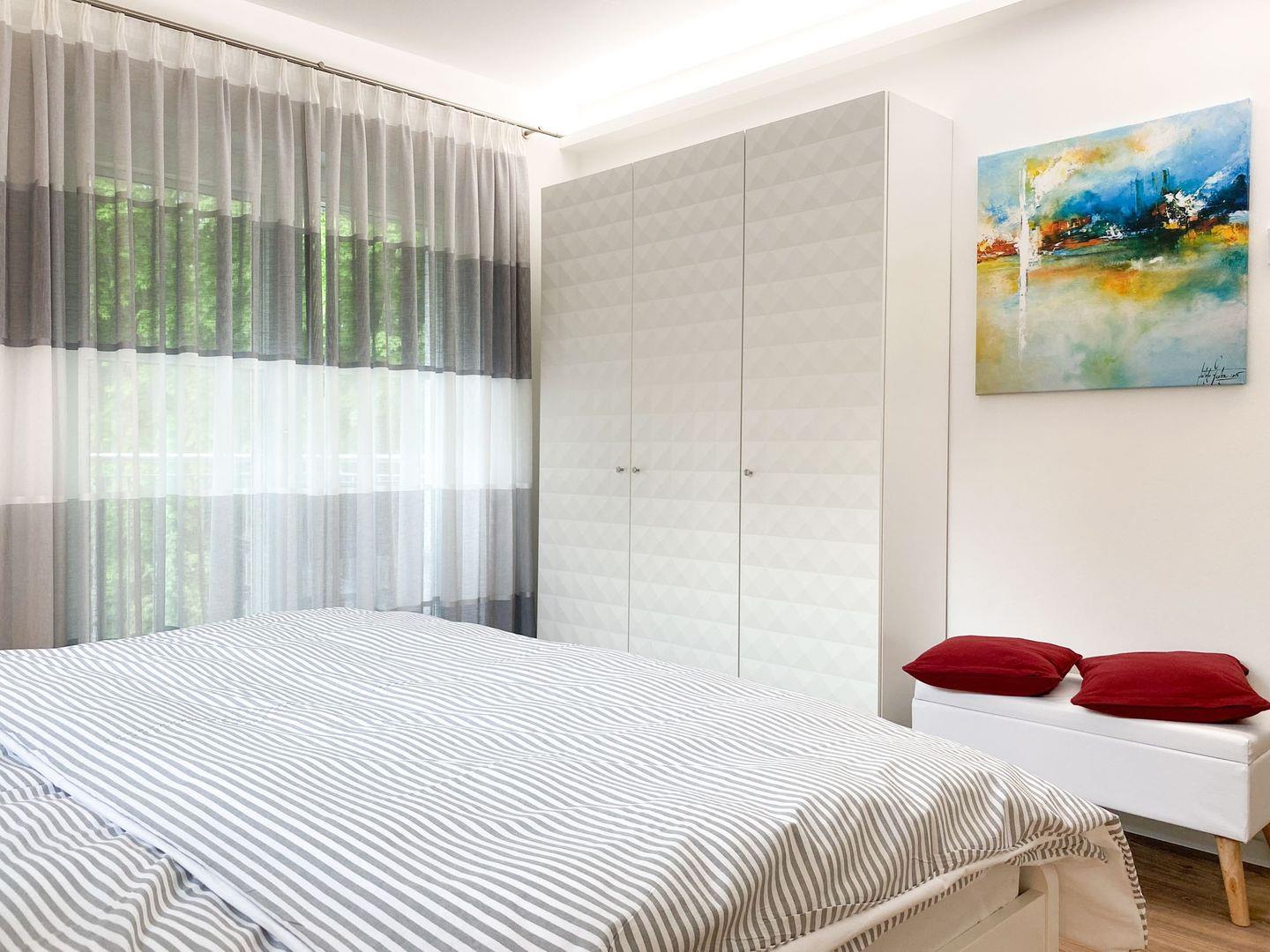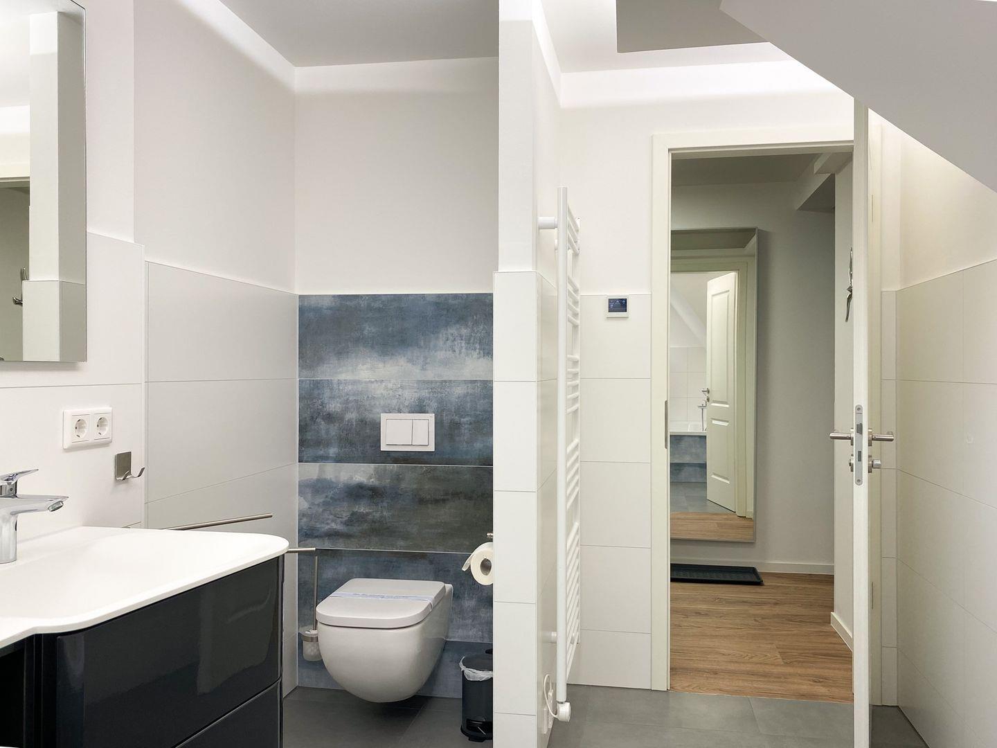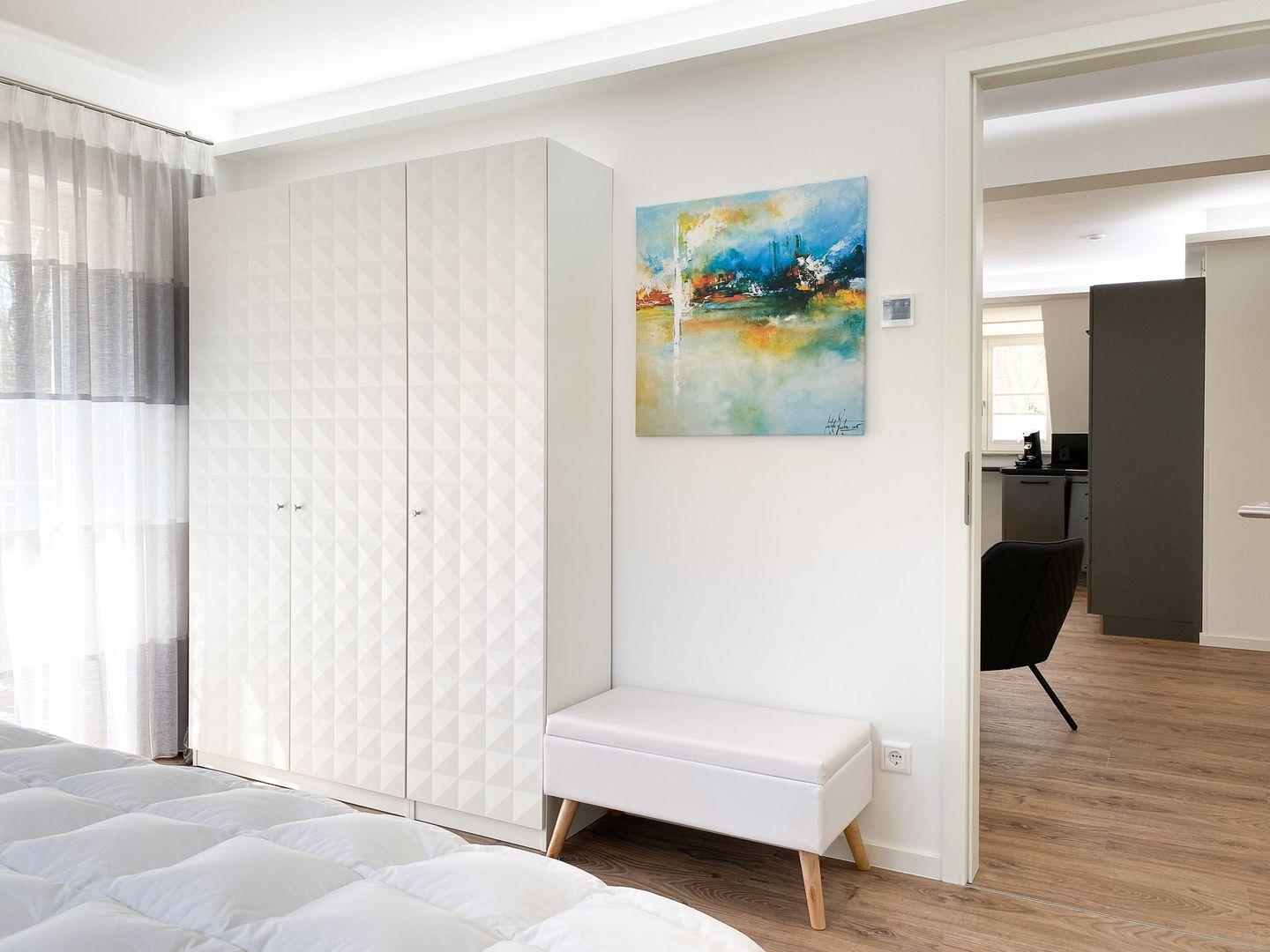 In dieser charmanten 72 m² großen Oase im 1. Obergeschoss, die bis zu vier Personen bequem beherbergen kann, finden Sie einen perfekten Rückzugsort vom Alltag. Betritt man die Wohnung, wird man sofort vom warmen, einladenden Wohnbereich umarmt. Es ist ein Raum, der zum Verweilen einlädt, mit bequemen Sitzgelegenheiten, die ideal sind, um sich nach einem Tag voller Entdeckungen zu entspannen. Die geschmackvoll ausgestattete Küche, die direkt an den Essbereich grenzt, ist ein Traum für jeden Hobbykoch. Sie ist mit allem ausgestattet, was man zum Zubereiten köstlicher Mahlzeiten benötigt, von modernen Geräten bis hin zu nützlichen Utensilien. Die Nächte in "Parkliebe 4" sind ebenso verlockend wie die Tage. Die Schlafzimmer, ausgestattet mit himmlischen Doppelbetten und hochwertiger Bettwäsche, versprechen eine erholsame Nachtruhe. Die sanfte Beleuchtung verstärkt die ruhige Atmosphäre und sorgt für einen tiefen, erholsamen Schlaf. Ein weiteres Highlight sind die zwei modernen Bäder der Wohnung. Ob Sie sich für ein entspannendes Bad oder eine erfrischende Dusche entscheiden, hier beginnen und enden Ihre Tage mit einer Note von Luxus. Der Balkon der Wohnung bietet einen idyllischen Rückzugsort im Freien. Ob beim Frühstück mit Blick auf den Garten oder beim Entspannen auf den bequemen Gartenmöbeln, dieser Ort wird schnell zu Ihrem persönlichen Lieblingsplatz. Die Wohnung zeichnet sich auch durch ihre durchdachten Annehmlichkeiten aus. Von praktischen Aspekten wie Waschmaschine und Trockner bis hin zu Unterhaltungsoptionen wie WLAN und Smart-TV, alles ist darauf ausgerichtet, Ihren Aufenthalt so angenehm wie möglich zu gestalten. Zur Wohnung steht Ihnen ein Parkplatz und eine abschließbare Fahrradabstellmöglichkeit und E-Bike-Lademöglichkeiten zur Verfügung. Die Lage der Wohnung ist ideal für Urlauber, die Aktivitäten wie Surfen, Radfahren oder Reiten genießen möchten.