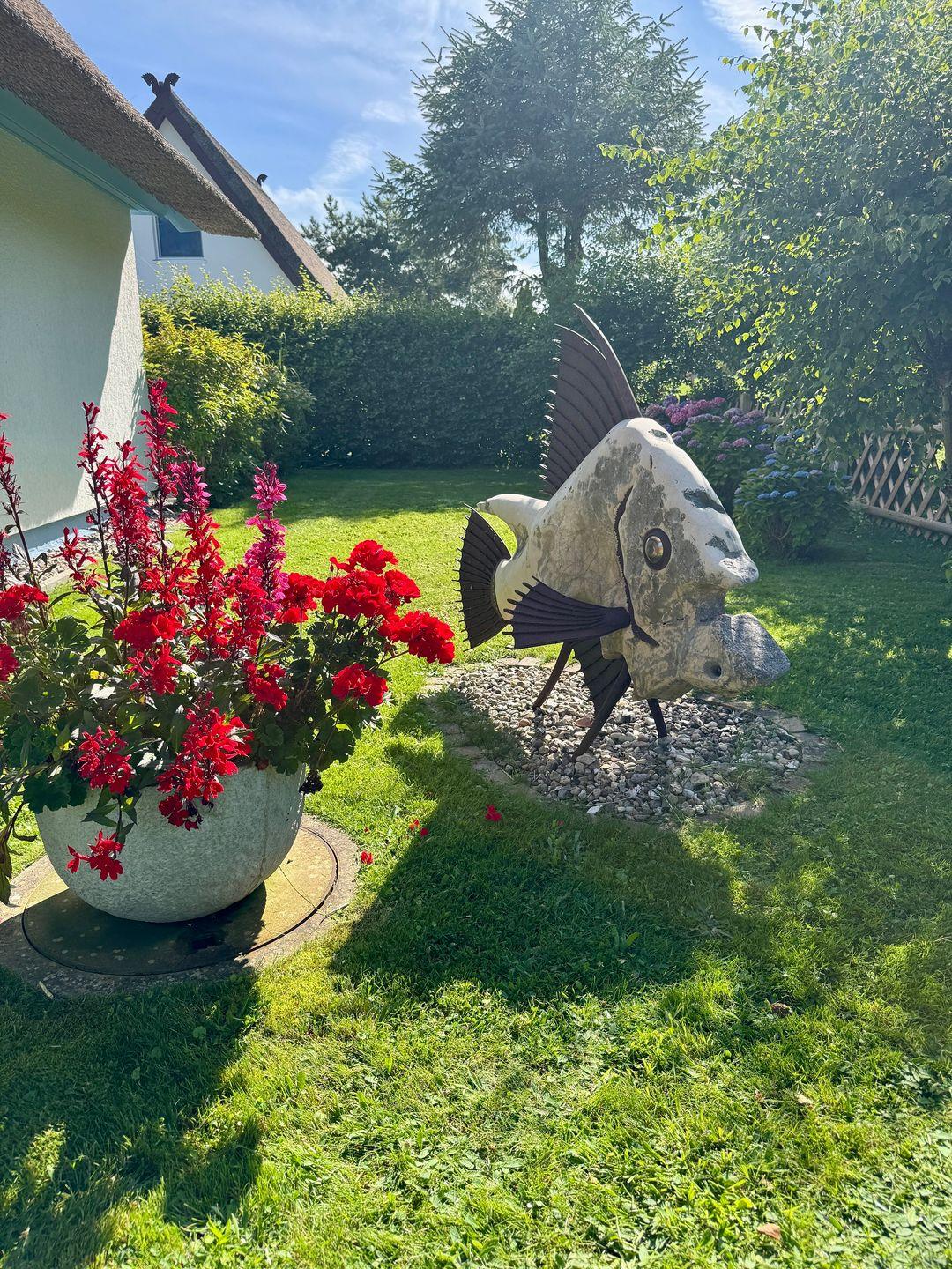 Willkommen im reetgedeckten Strandhaus "Dünenwind" mit seinen 3 Zimmern auf 58qm! Diese traumhafte Unterkunft heißt Sie direkt hinter dem Deich herzlich willkommen und lässt Ihr Herz höher schlagen. Stellen Sie sich vor, wie Sie den Wohn- und Essbereich betreten und der herrliche Blick in den Garten Sie sofort verzaubert. Die Vorstellung von gemeinsamen Stunden mit Ihrer Familie in diesem wunderschönen Raum lässt Ihr Herz vor Freude hüpfen. Die gut ausgestattete Küche mit ihrem Geschirrspüler, der Filterkaffeemaschine, der Nespresso Kapselmaschine, dem Toaster und dem Wasserkocher lässt keine Wünsche offen. Sie können sich hier voll und ganz auf das Kochen und Genießen konzentrieren. Das Bad ist mit Tageslicht durchflutet und verfügt über eine erfrischende Dusche, die Sie nach einem langen Tag am Strand oder beim Radfahren wieder auf die Beine bringt. Auch können Sie die Gartendusche im Außenbereich nutzen. Aber das ist noch nicht alles! In der oberen Etage erwartet Sie ein Hauptschlafzimmer mit einem Doppelbett und einem Insektenschutz, der Ihnen einen erholsamen Schlaf garantiert. Das 2. Zimmer bietet eine hochwertige ausziehbare Schlafcouch zum Träumen und ein Bürotisch für Arbeiten per High-Speed ein. Der große Garten mit seiner Terrasse und dem Strandkorb ist der perfekte Ort, um zu entspannen und die Seele baumeln zu lassen. Sie können den Tag mit einem gemütlichen Frühstück auf der Terrasse beginnen und am Abend bei Kerzenschein und gemeinsamem Essen ausklingen lassen. Und das Beste? Sie können Ihre Fahrräder direkt auf dem eigenen Grundstück abstellen und haben auch einen Parkplatz direkt auf dem Grundstück. Dieses Ferienhäuschen bietet Platz für 2-3 Personen auf zwei Ebenen und verspricht Ihnen das ganze Jahr über einen einzigartigen Ostseeurlaub. Worauf warten Sie noch? Buchen Sie jetzt und erleben Sie einen unvergesslichen Aufenthalt im Strandhaus "Dünenwind"!