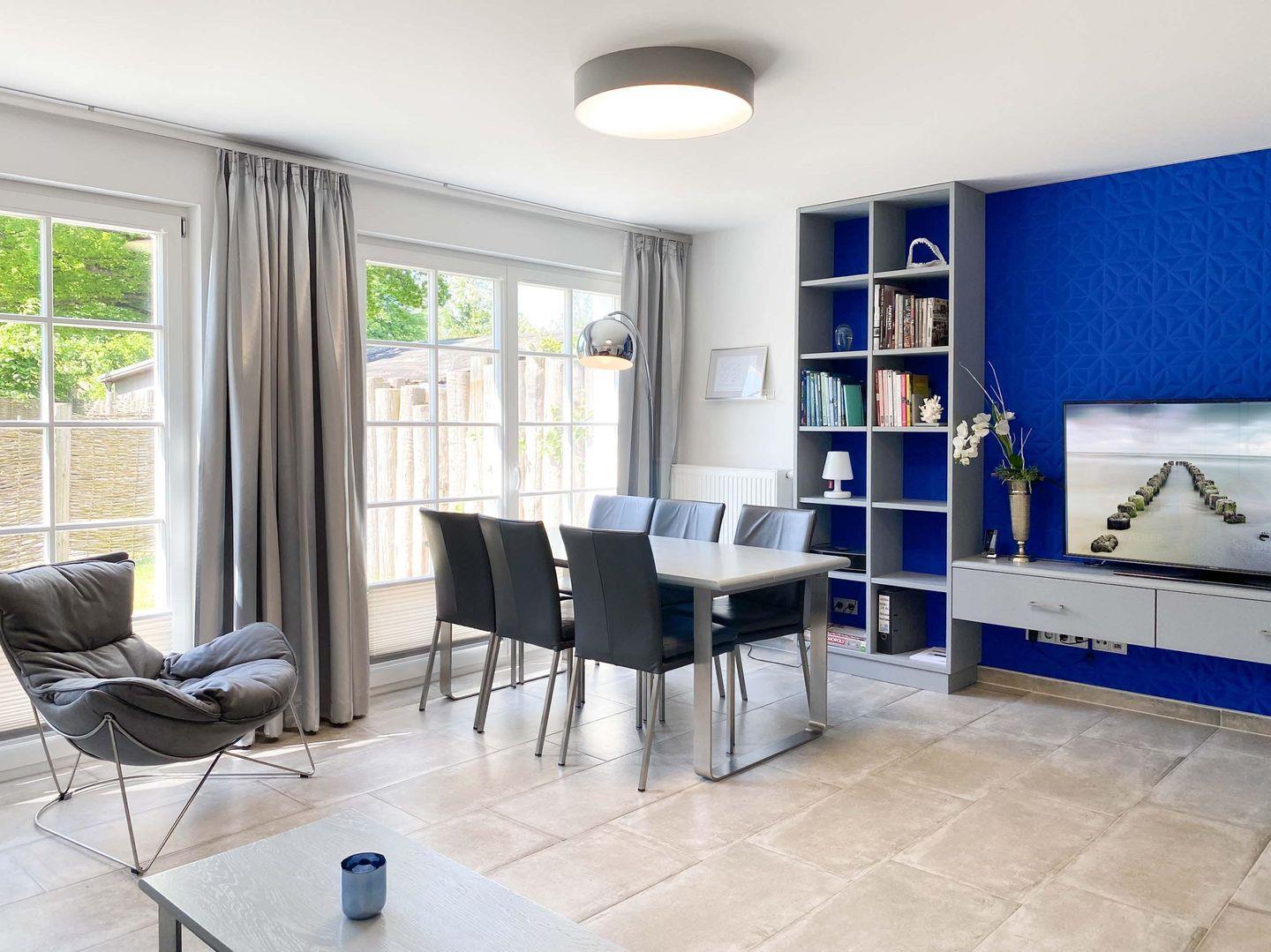 Die Doppelhaushälfte verfügt über insgesamt 4 komfortable Schlafzimmer, die mit hochwertigen Bettwäsche ausgestattet sind und für erholsame Nächte sorgen. In der modernen und vollständig ausgestatteten Kochnische können Sie Ihre Lieblingsgerichte zubereiten und diese in geselliger Runde am großen Esstisch genießen. Der gemütliche Wohnbereich lädt zum Entspannen ein – lassen Sie den Tag bei einem Filmabend auf dem Fernseher oder einem gemeinsamen Spiel an der Spielekonsole ausklingen.