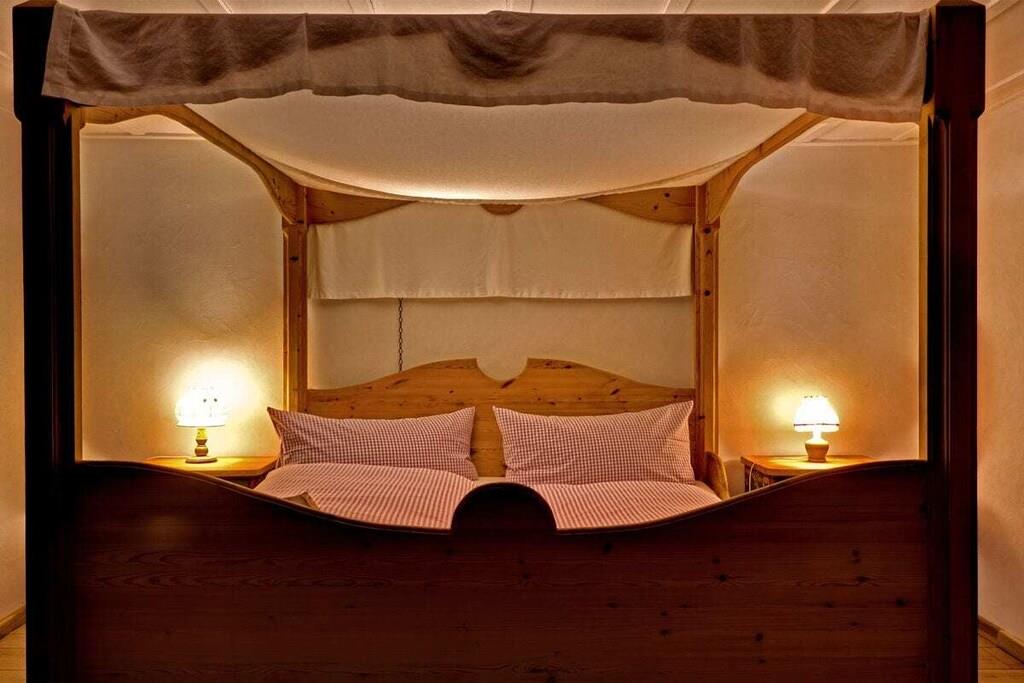 Feriehuset Schwarzwald Farmhouse glæder gæsterne med en fantastisk udsigt over alperne, rustikke bondegårdsmøbler fra svundne tider, store træterrasser og en ægte Schwarzwald-kakkelovn. Med to bondegårdsstuer, et stort bondekøkken og fem soveværelser fordelt på tre etager er der masser af plads til to til ti personer. Men selv som par vil I føle jer hyggelige og komfortable takket være den harmoniske planløsning. Panoramavinduer med udsigt over alperne og engen med grillplads lader jer nyde hver en solstråle. Om vinteren vil den enorme kakkelovn, en vidunderlig pejs og en flammende pejs varme jer. Glæd jer til autentiske bondegårdsmøbler og naturlige byggematerialer. Uanset om det er en himmelseng eller en Schwarzwald-seng, vil alle finde deres yndlingssoveværelse her.