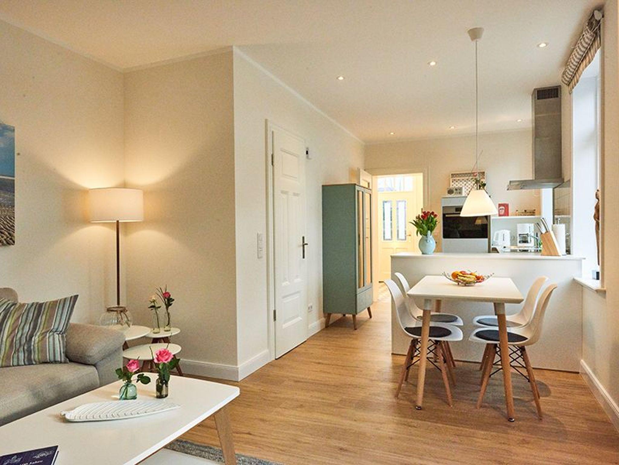 Das ca. 80 qm große Haus Waldstraße bietet bis zu vier Gästen viel Raum und Ruhe auf zwei Etagen. Das nach Osten ausgerichtete Haus verfügt über eine gut ausgestattete Küche, ein Badezimmer und ein weiteres WC, und einen original friesischen Kachelofen. Für eine erholsame Nachtruhe stehen ein Zimmer mit Doppelbett (Ruf Boxspringbett) sowie ein Zimmer mit zwei Einzelbetten zur Verfügung. Auf der Terrasse können Sie ausgiebig frühstücken oder im Strandkorb gemütlich entspannen.