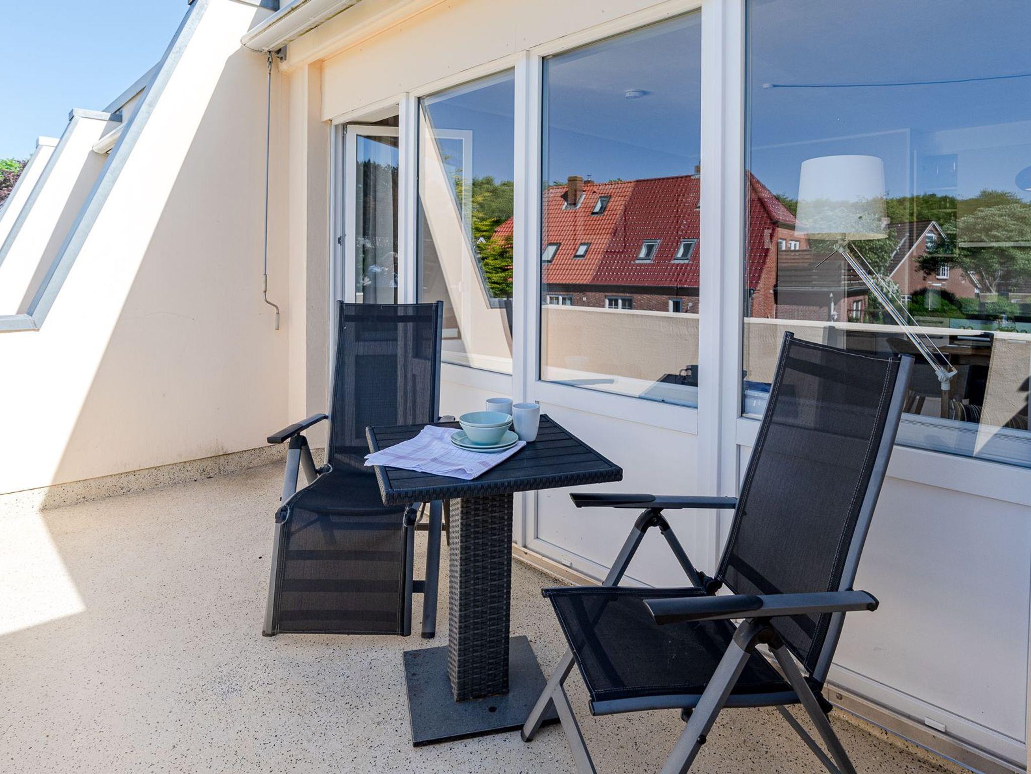 Modern eingerichtete und 2014 renovierte Wohnung im 1. Stock mit großem Südbalkon. Nähe Friesenmuseum und Edeka. Zum Zentrum, Strand, Wellenbad und Kurmittelhaus sind es nur ca. 10 Gehmin.
