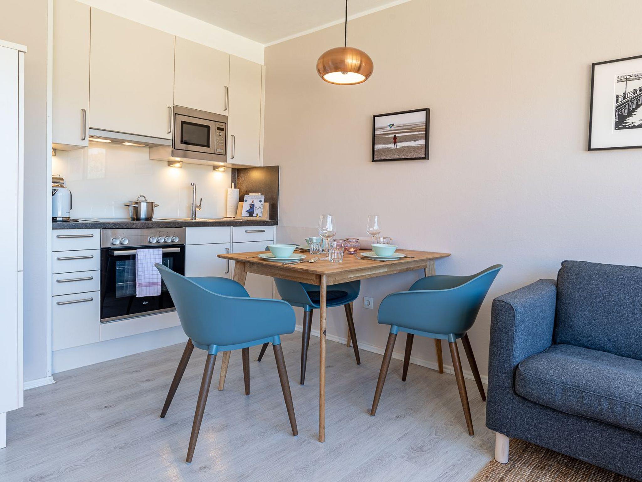 Die Wohnung befindet sich im Obergeschoss eines Mehrfamilienhauses in Wyk auf Föhr. Es erwartet Sie ein modernes und gemütlich eingerichtetes Feriendomizil für 2 Personen