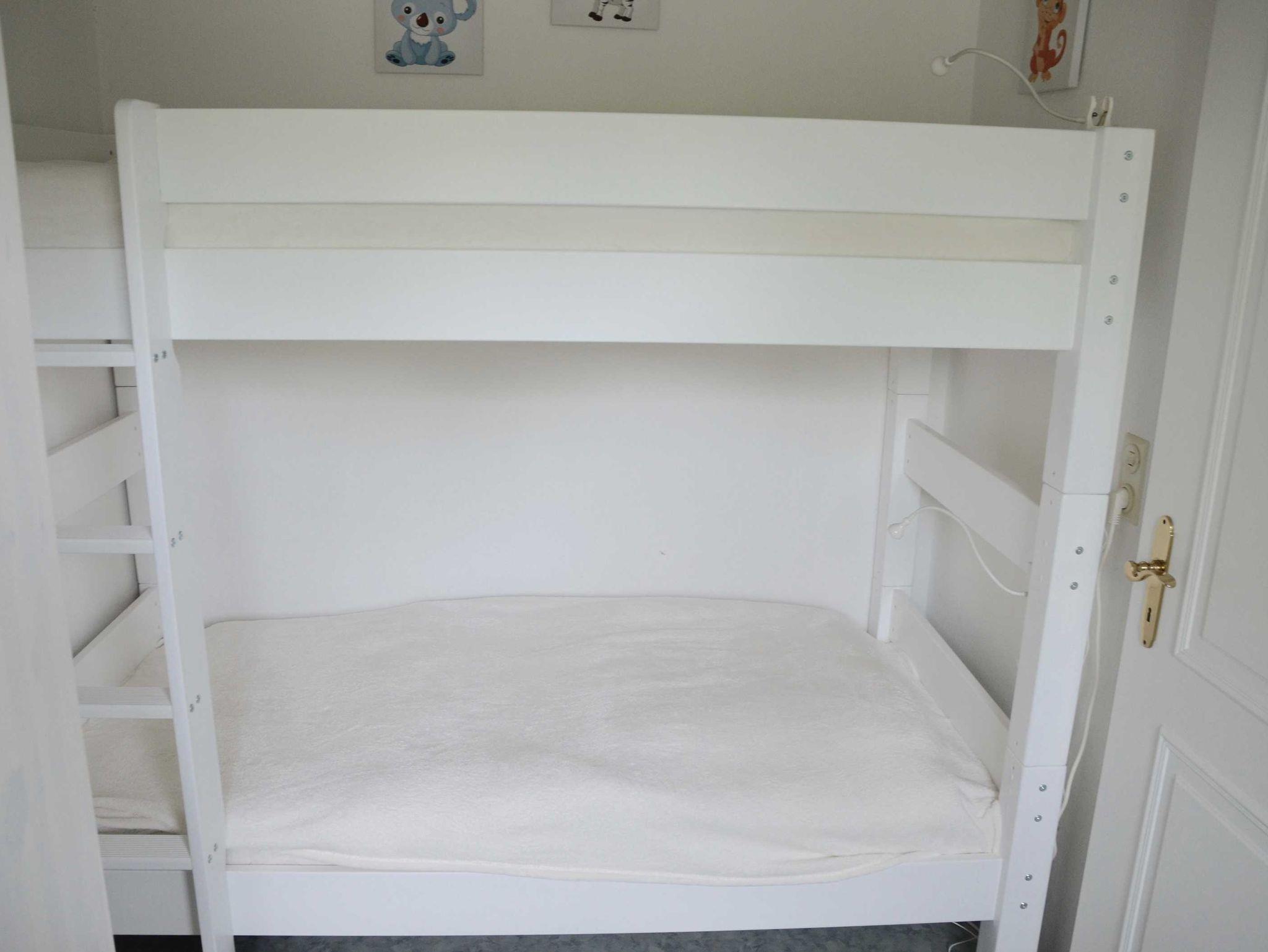 Die Ferienwohnung unterteilt sich in Küche (Herd, Kaffeemaschine, Wasserkocher, Toaster), Flur, Duschbad, Kinderzimmer mit Etagenbett (Zustellmöglichkeit Babybett vorhanden) und ein großes Wohn-Schlafzimmer(Flachbildfernseher, Radio, DVD-bzw. Bluerayplayer). Weitere Ferienwohnungen mit Einzelbetten im Kinderzimmer vorhanden. Das Etagenbett ist von der Höhe so bequem, dass auch Erwachsene, die getrennt schlafen möchten, angenehm einsteigen können.