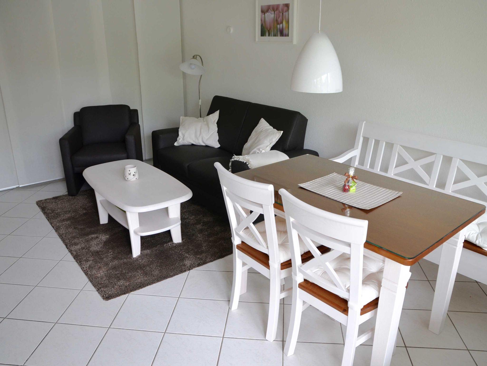 Diese Ferienwohnung bietet auf ca. 46qm Platz für 2 Erwachsene und bis zu 2 Kindern.
