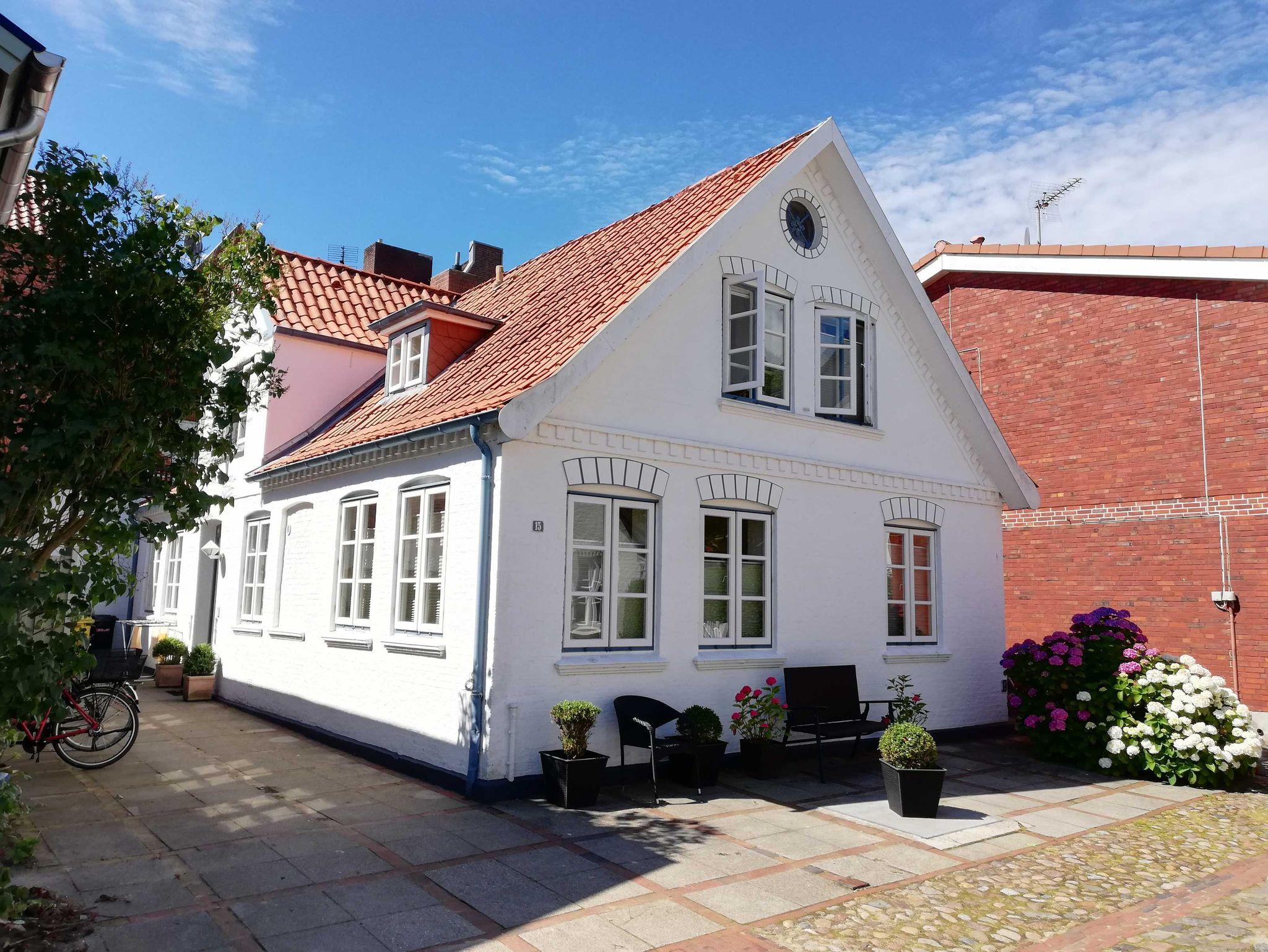 In diesem zentral gelegenen Haus in der Fußgängerzone von Wyk, vermieten wir zwei Wohnungen. Hier ist kein Autoverkehr erlaubt. Ein großer kostenfreier Parkplatz und ein Supermarkt sind wenige Gehminuten entfernt. Bäcker, Metzger und Fischladen sind gleich um die Ecke.