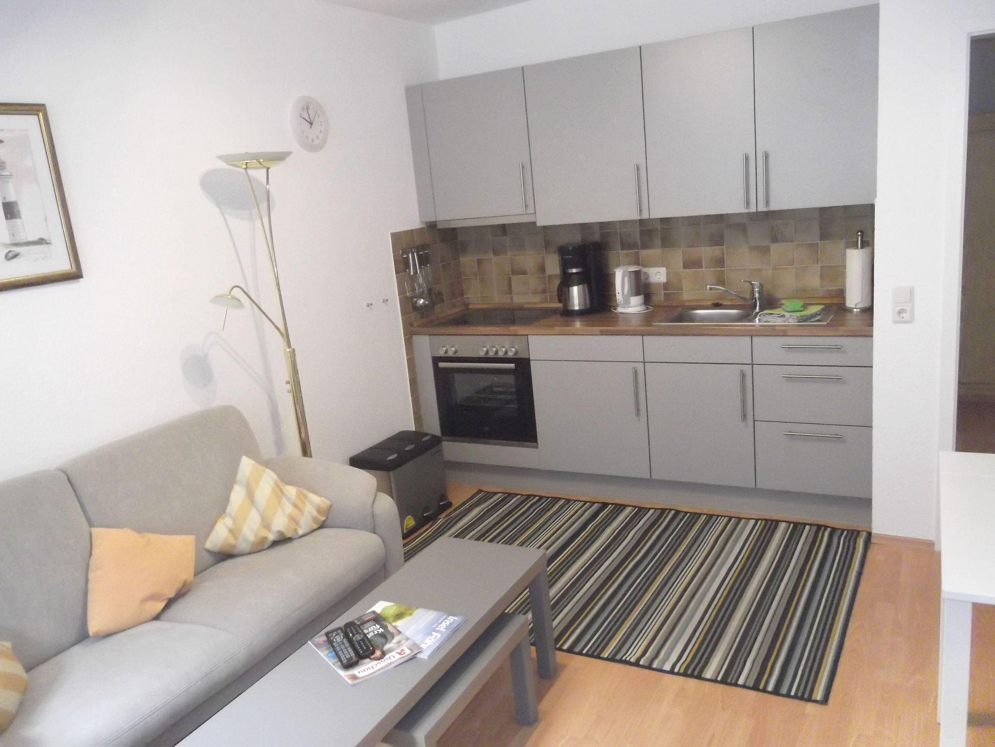 Die Wohnung befindet sich im Erdgeschoss, ist 30m² groß und verfügt über ein separates Schlafzimmer mit einem Doppelbett. In der im Wohnzimmer integrierten Küchenzeile stehen Ihnen Backofen mit Cerankochfeld und Mikrowelle zur Verfügung. Ein gemeinschaftlicher Außensitzplatz ist vorhanden.