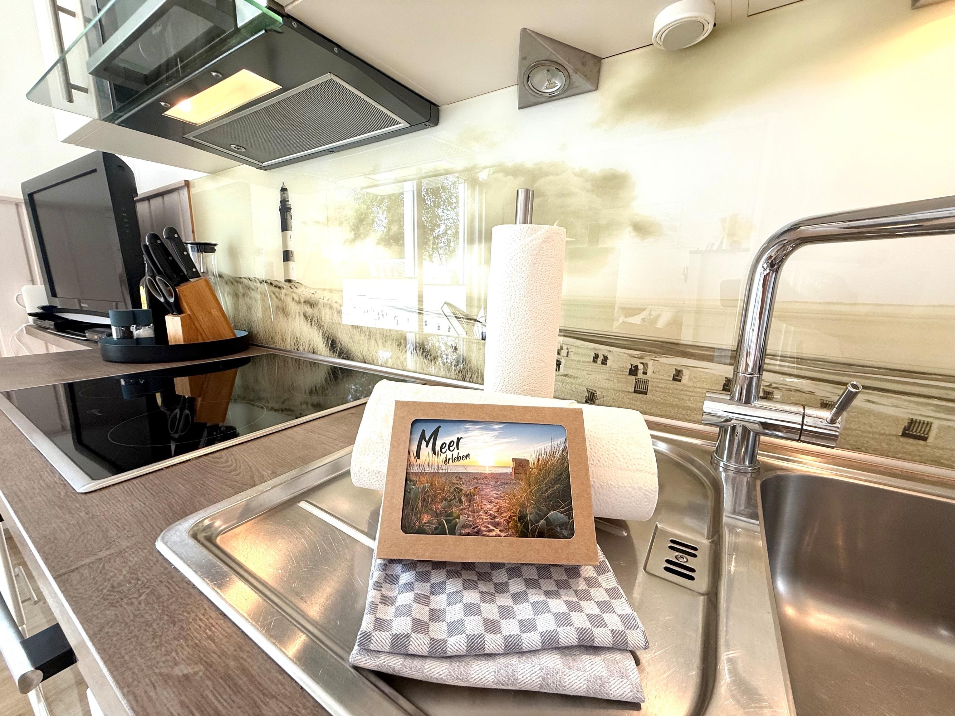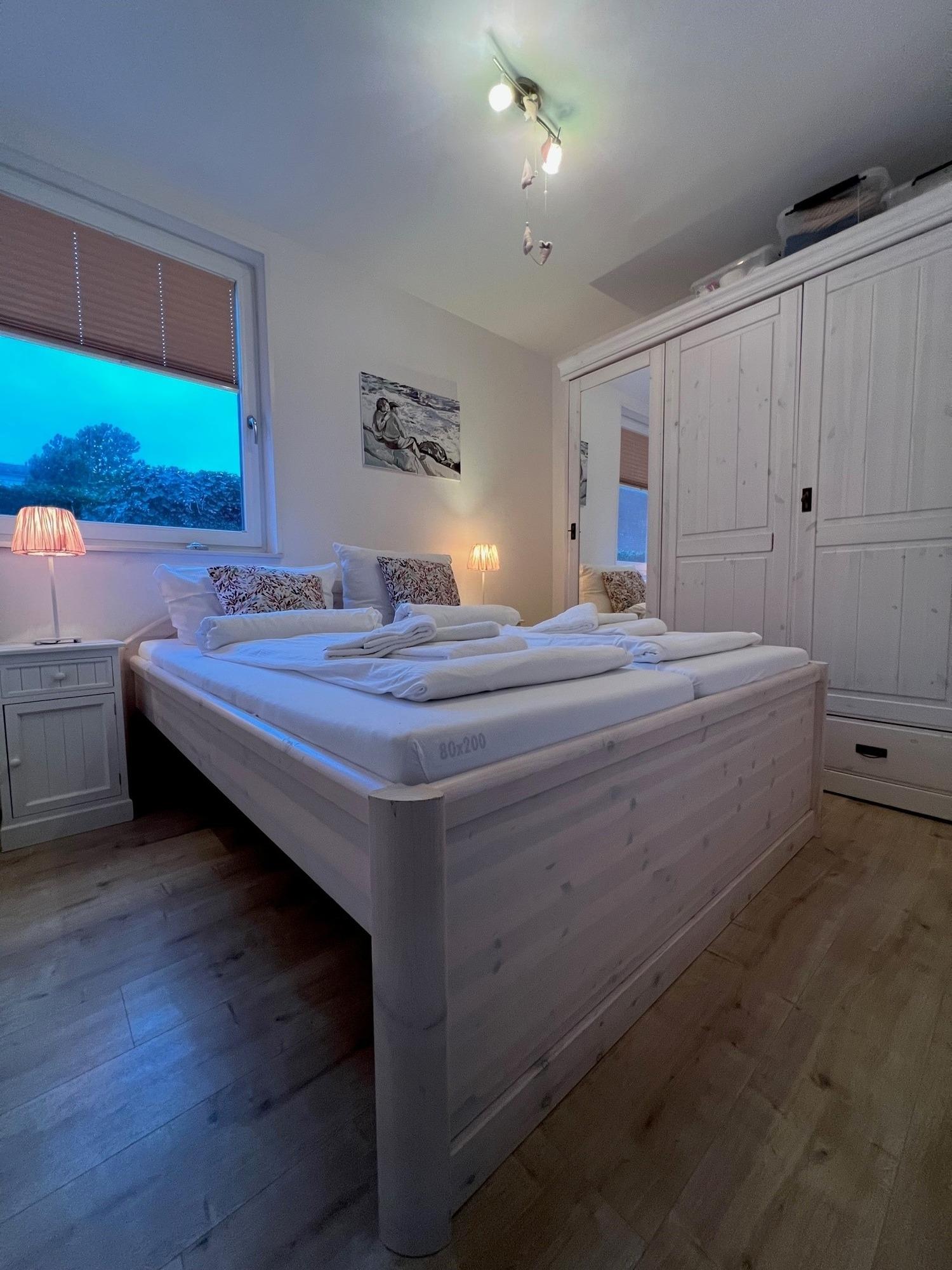In der modernen und umfangreich ausgestatteten Küche mit Essplatz finden Sie z.B. Backofen, Mikrowelle und Geschirrspüler. Der gemütliche Wohnbereich bietet Platz für gemütliche Momente. Ein Flachbild-TV ist für die Unterhaltung vorhanden. Das Dusch-Badezimmer ist großzügig gestaltet und auch das Schlafzimmer in weissem Farbton und mit kleinen speziellen Wohndetail runden Ihren Wohlfühl-Urlaub ab. Ein W-LAN Anschluss wird Ihnen gern zur Verfügung gestellt.