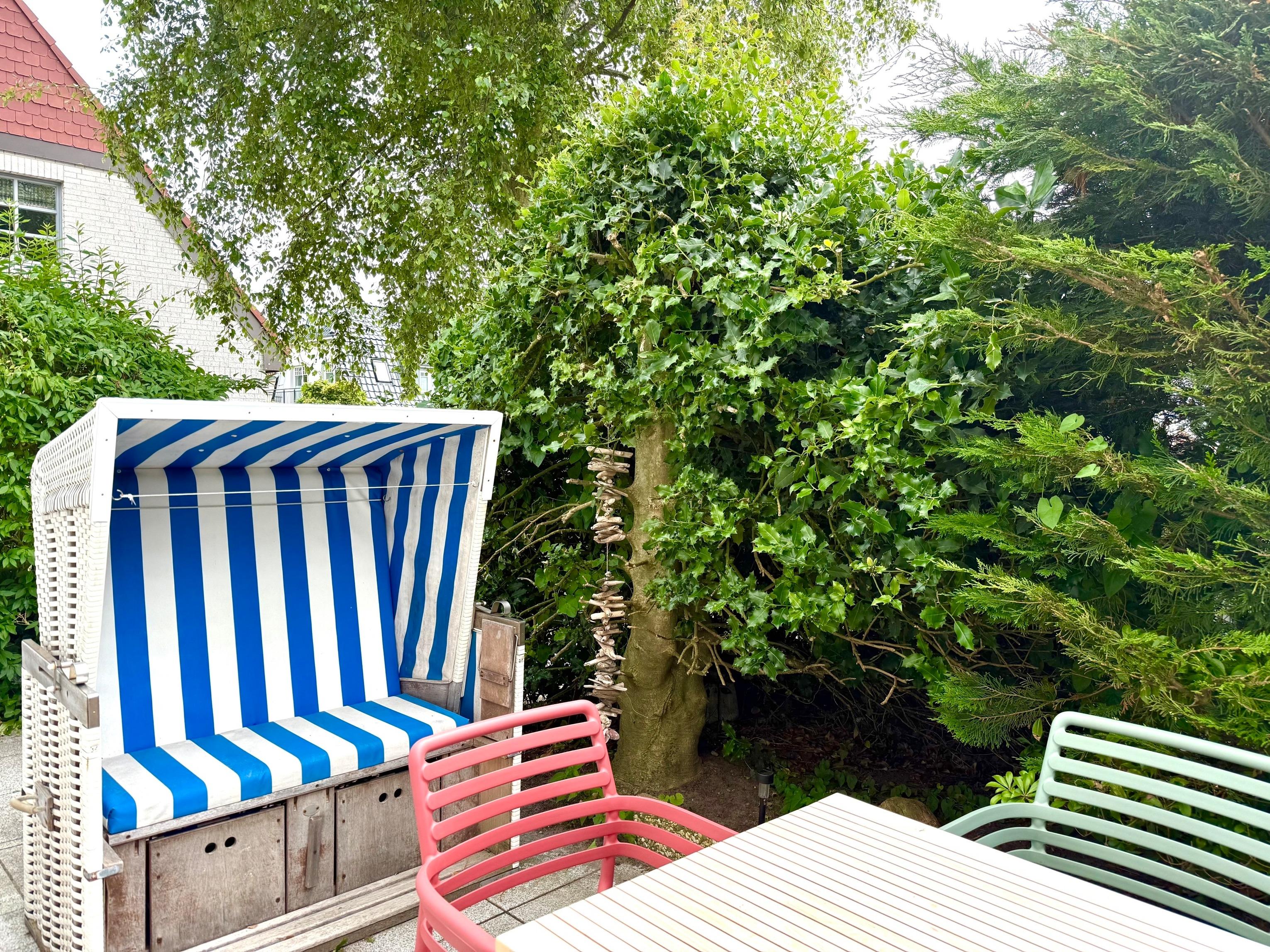 Die komplett neu, hell und geschmackvoll eingerichtete Wohnung "Käptn`s Koje" für 2 Personen empfängt Sie im maritimen Stil mit Blick auf die Terrasse und ins Grüne. Hier finden Sie Gartenmöbel zum Relaxen. Aber auch die Möglichkeit zum Sonnen-Frühstück, einem Kaffee zwischendurch oder mit einem Sundowner den Abend in Ruhe zu beenden, ist hier gegeben.