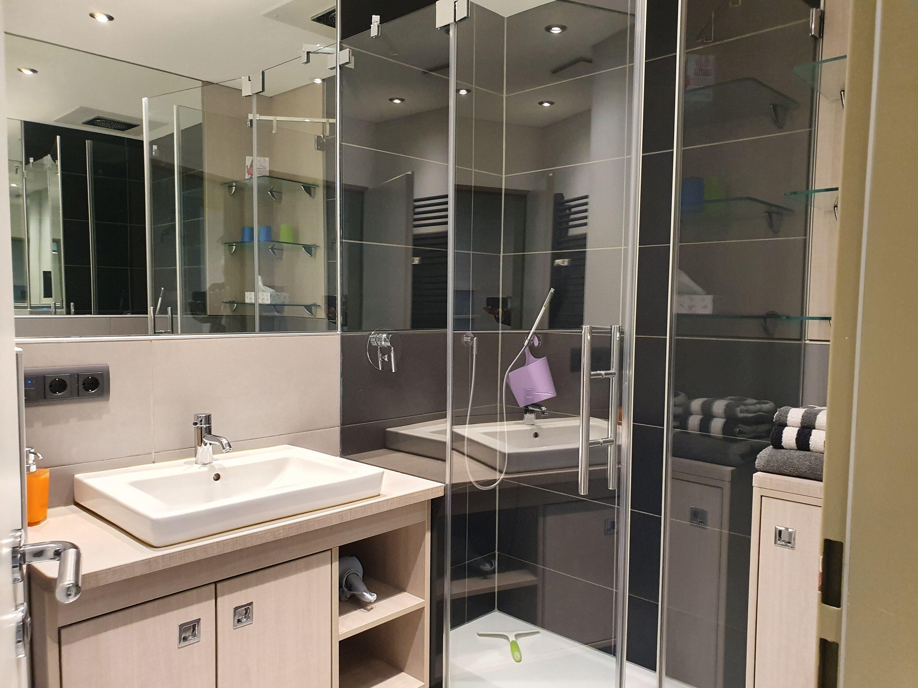 Die Ausstattung umfasst einen Balkon mit direktem Meerblick sowie Zugang zu einem gemeinschaftlichen Schwimmbad und einer Sauna. Für die Unterbringung von Fahrrädern ist ebenfalls gesorgt. Von der Wohnung aus genießen Sie einen herrlichen Panoramablick.