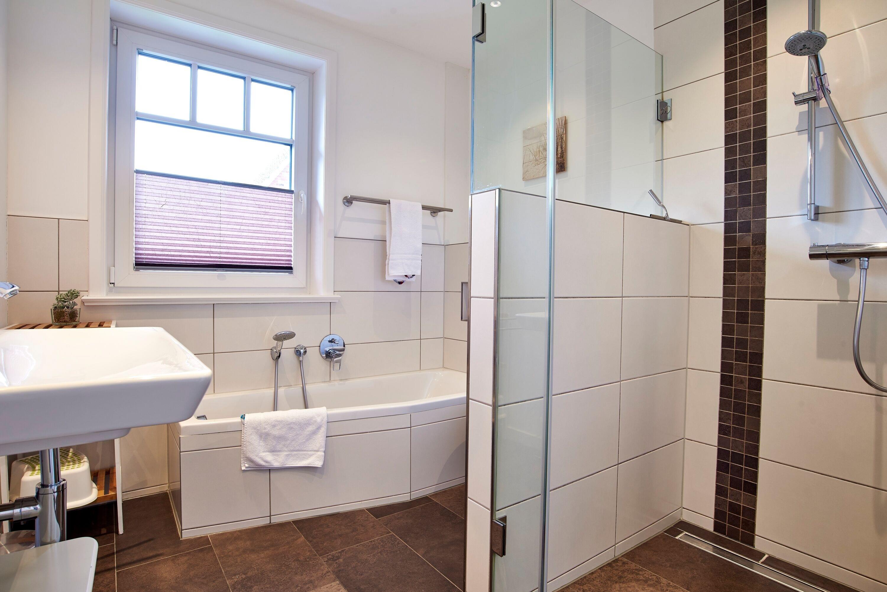 Badeværelse med bruser og badekar