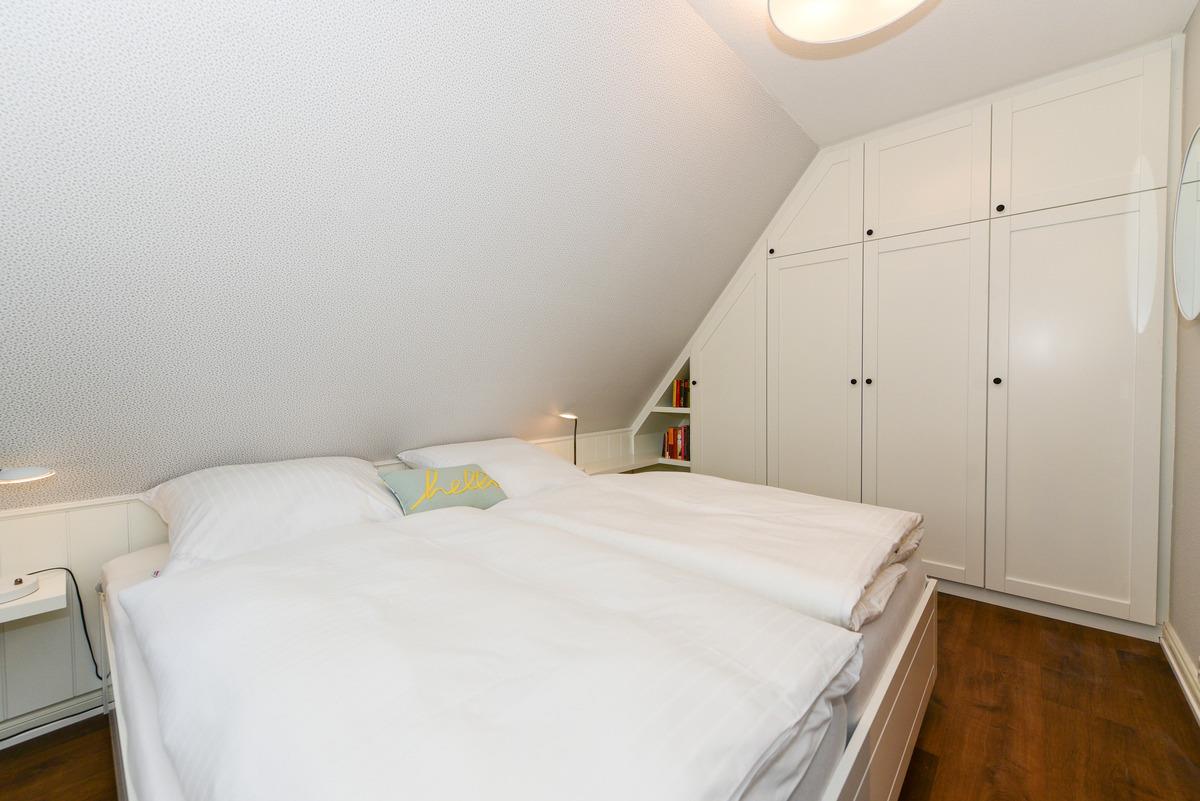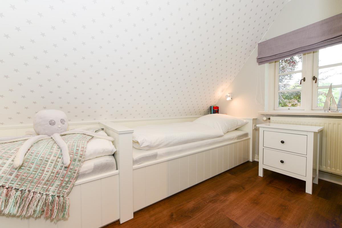 Die Ferienunterkunft "Farnweg 7 (Haus Ost)" befindet sich in Wyk auf Föhr und bietet Platz für maximal 4 Personen auf einer Fläche von 100 m². Die Schlafzimmer und das Bad befinden sich im OG.