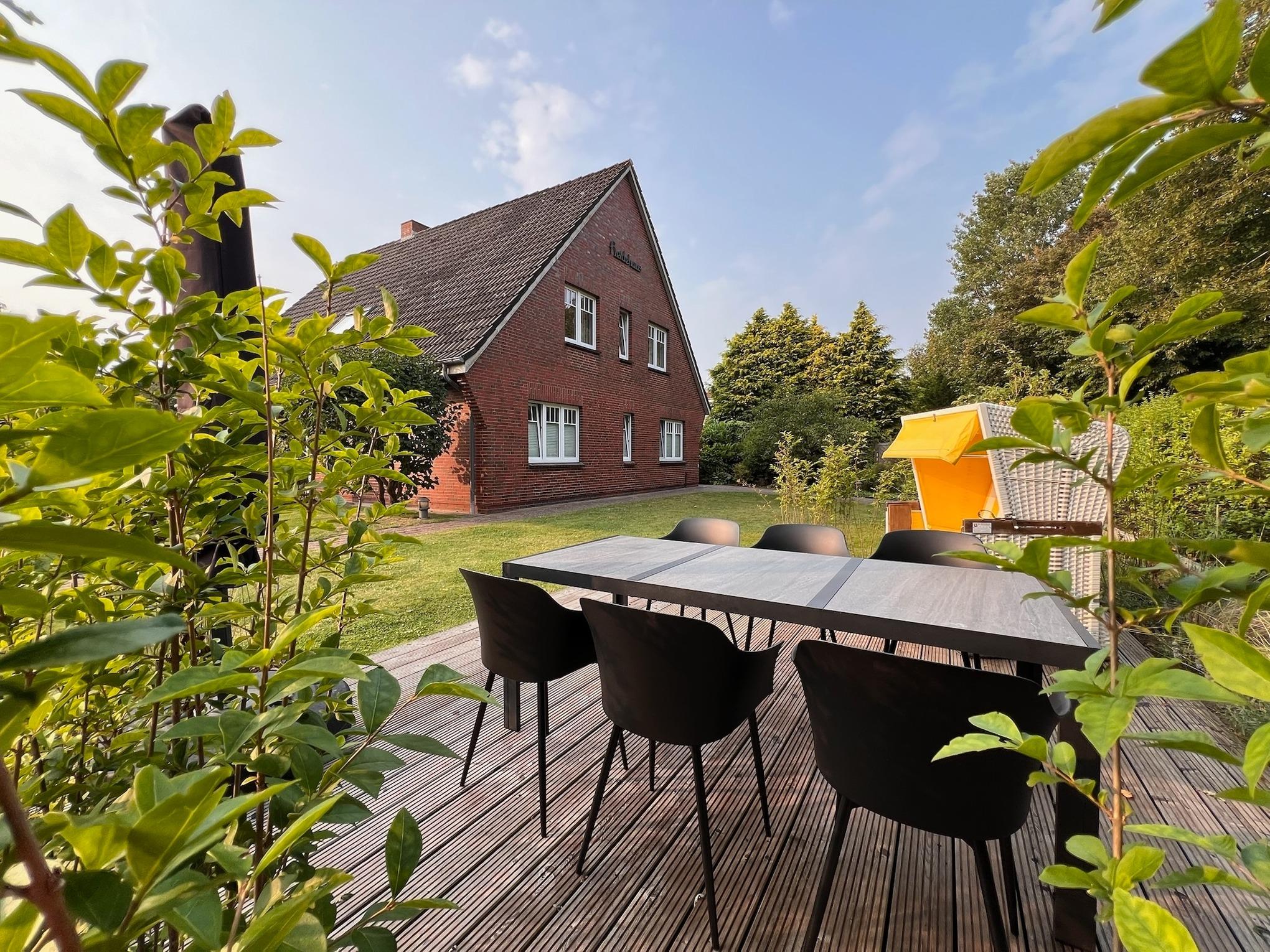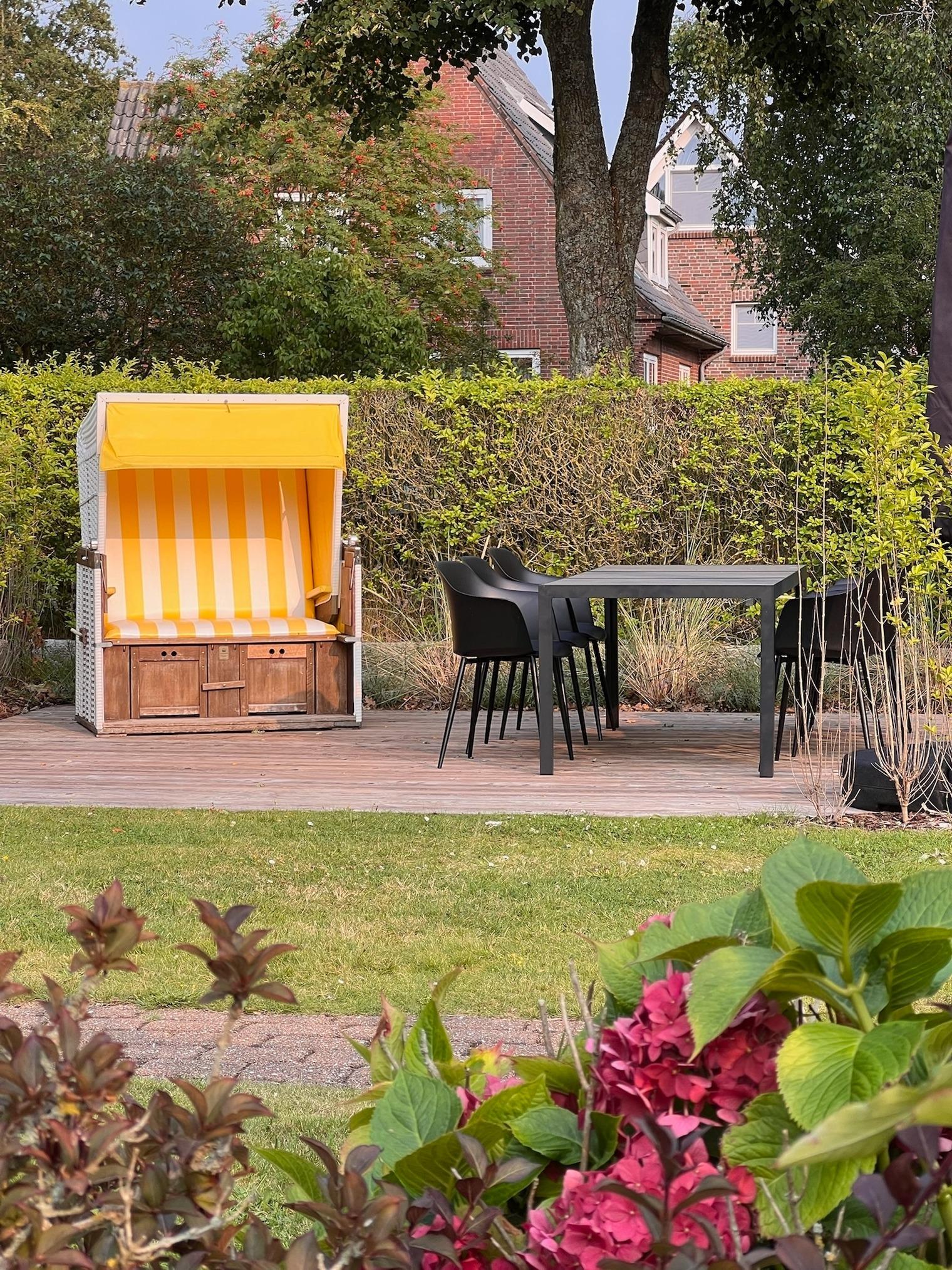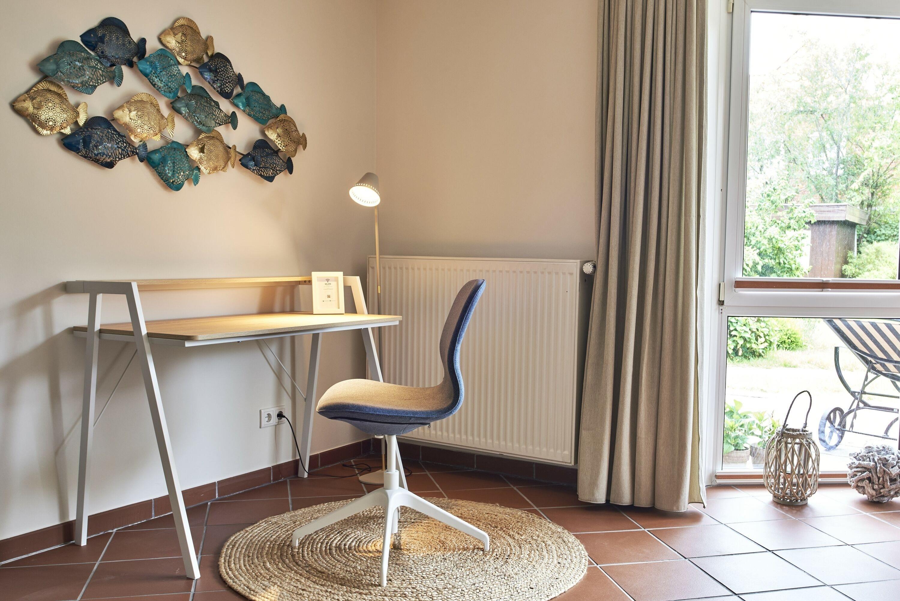 Für alle, die auch im Urlaub ein Home-Office benötigen, bietet der dezente Schreibtisch ausreichend Platz und das schnelle Internet ermöglicht Videostreaming und Onlinekonferenzen. Die Terrasse vor dem Wohnzimmer wartet darauf, im Sommer als zusätzliches Esszimmer genutzt zu werden oder lädt dazu ein, in der Abendsonne den Tag ausklingen zu lassen. Vor "zuviel" Sonne schützt die Markise und das Windschott vor einer allzu frischen Brise.