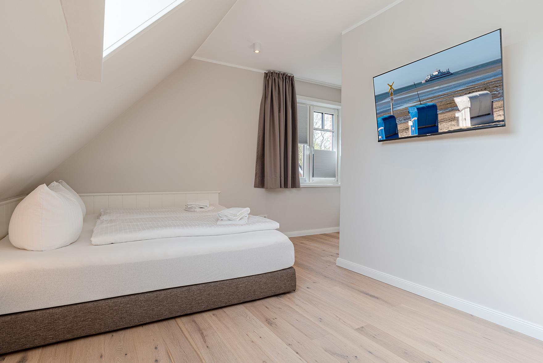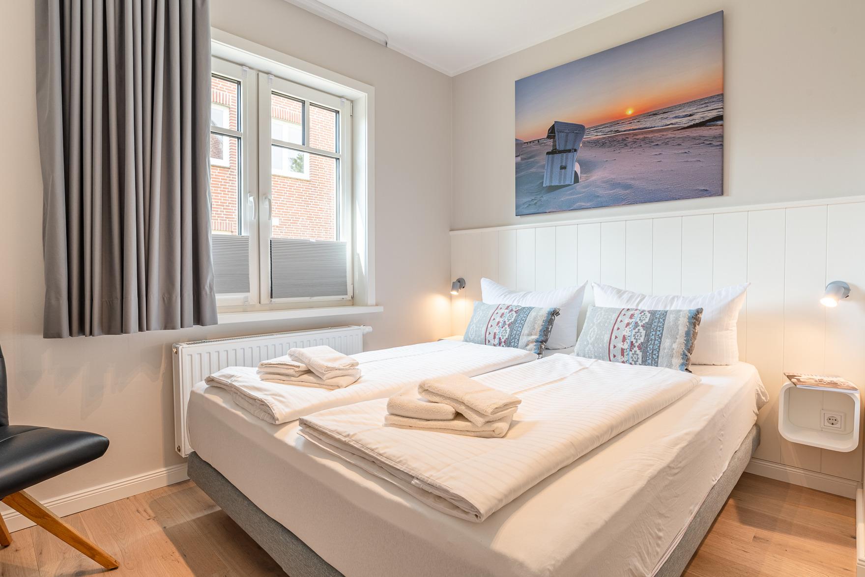 Das Haus befindet sich in einer ruhigen Nebenstraße mitten in Wyk, so dass die Fußgängerzone mit Restaurants und Geschäften nur wenige Gehminuten entfernt sind, zum Strand sind es ca. 15 Gehminuten. Der Tennisplatz ist ebenfalls schnell erreicht, aber weit genug, ihn nicht zu hören.