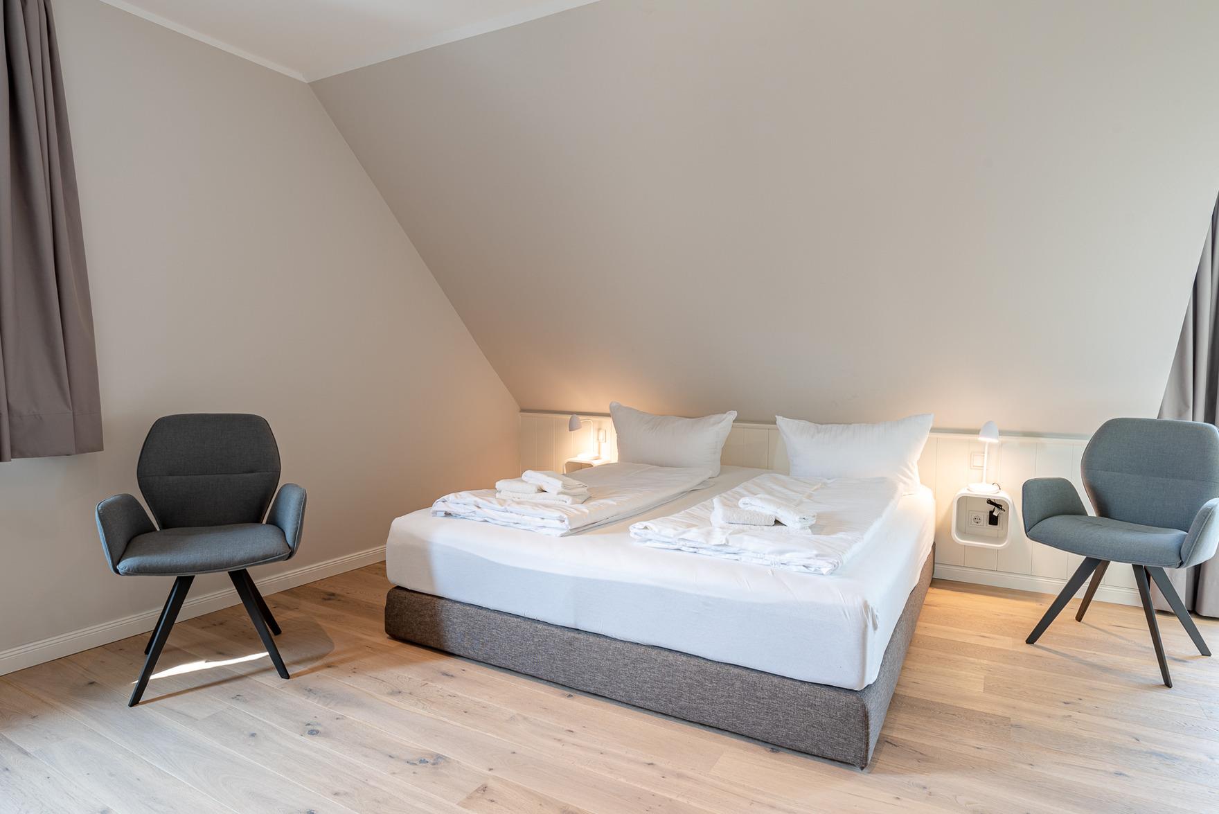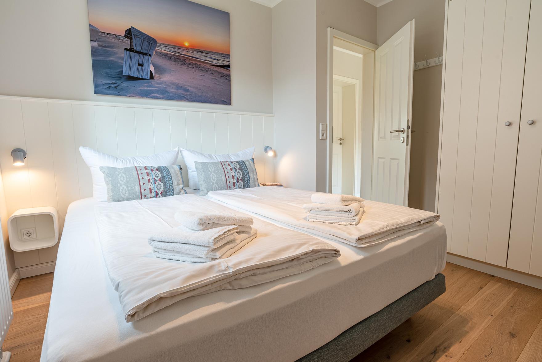 Die Unterkunft verteilt sich über EG und 1.OG. Es gibt 3 Schlafzimmer mit Doppelbett (1 x im EG und 2 x im OG).