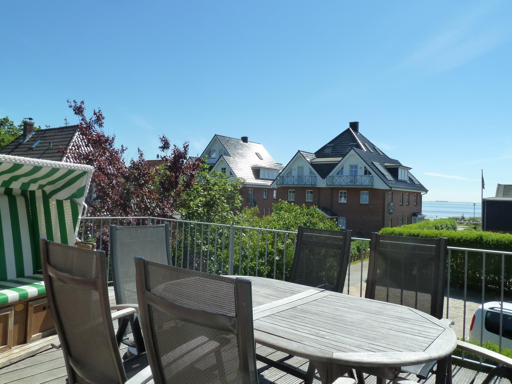 Die Wohnung "Strandhafer" hat einen großem Balkon mit Teil-Meerblick und ist sehr schön eingerichtet. Sie ist besonders gut für Familien mit Kindern geeignet, zumal der Garten mit Spielgeräten mitbenutzt werden darf. Da sich das Haus in der 2. Reihe nach hinten versetzt befindet, wohnen Sie hier sehr ruhig und idyllisch. In weniger als einer Minute sind Sie zu Fuß am Wyker Südstrand.