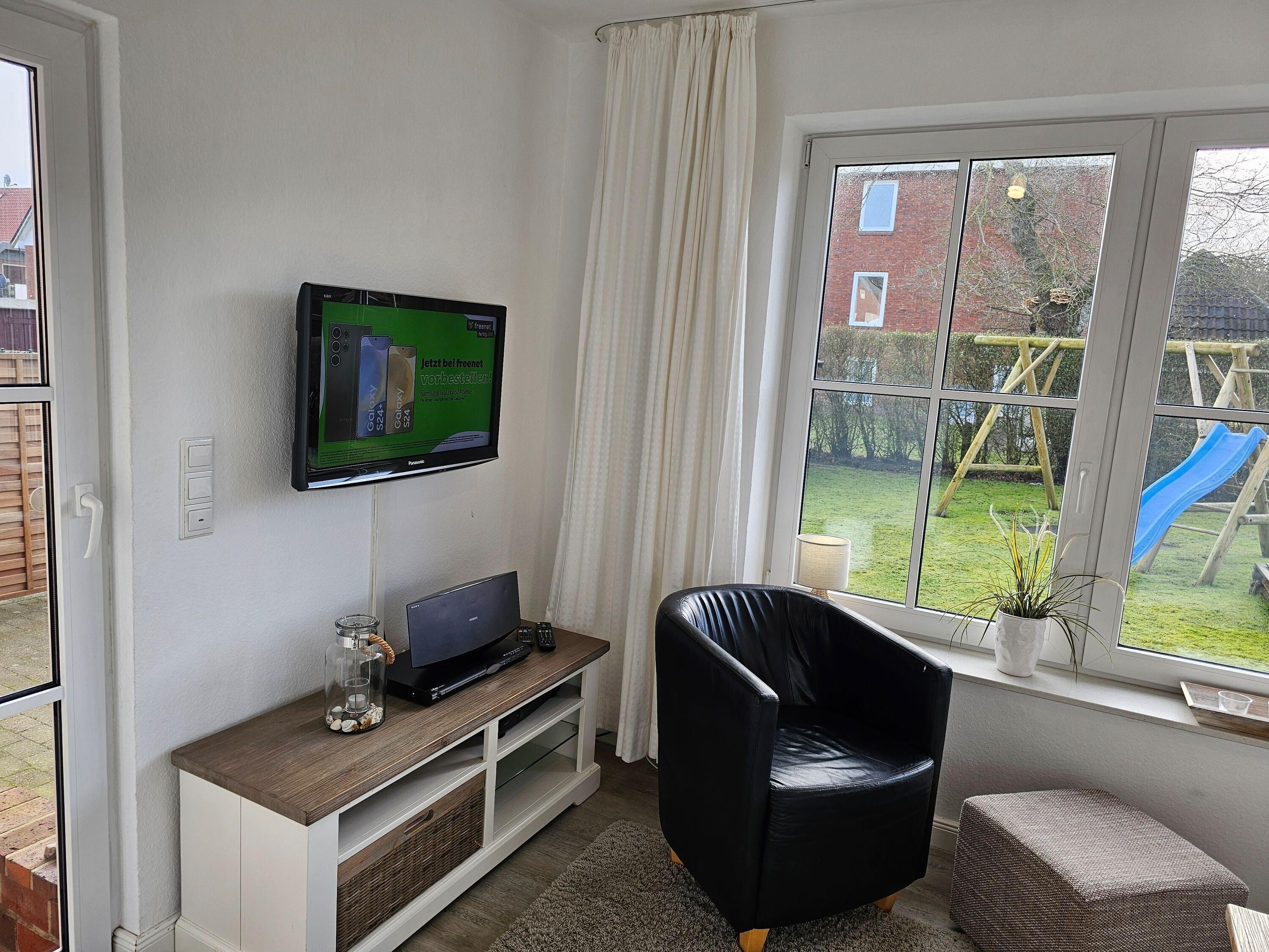 Die Wohnung "Wattenläufer" besitzt eine Terrasse mit angrenzendem umzäunten Garten und Spielgeräten. Sie ist sehr stilvoll eingerichtet und besonders gut für Familien mit Kindern geeignet. Da sich das Haus in der 2. Reihe nach hinten versetzt befindet, wohnen Sie hier sehr ruhig und idyllisch. In weniger als einer Minute sind Sie zu Fuß am Wyker Südstrand.