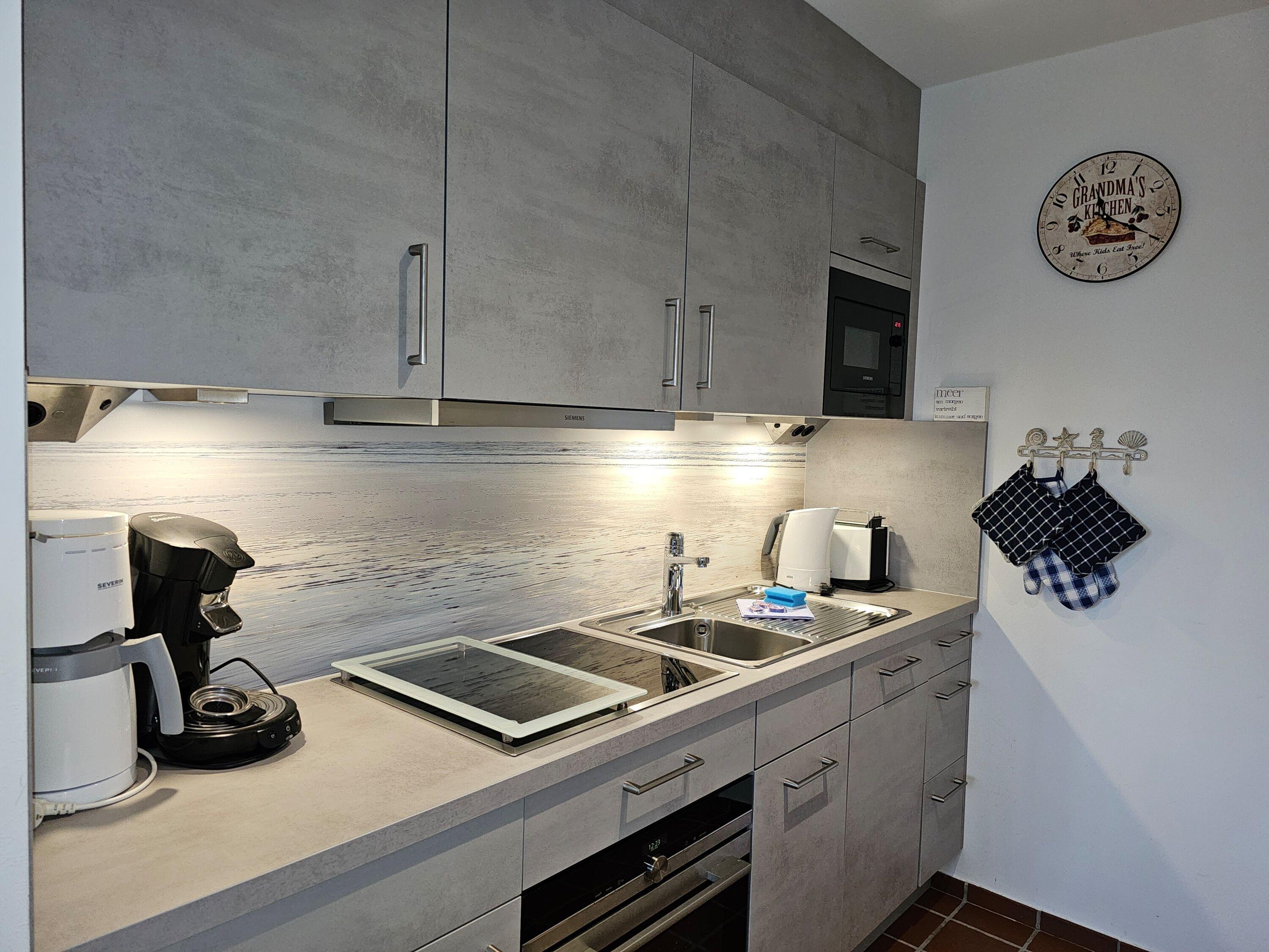 Unsere ca. 50 qm große Erdgeschosswohnung im Haus Gud Tidj erstrahlt seit Anfang 2022 im neuen Glanz und bietet bis zu 4 Personen Platz, um herrliche Urlaubstage zu verbringen. Die zentrale Lage in der Badestraße ist der ideale Ausgangsort für Ausflüge. Das Aquafoehr, die Wyker Innenstadt, das Friesenmuseum und der schöne Strand sind in wenigen Minuten zu erreichen. Das einladende Wohnzimmer mit integriertem Essbereich ist der Mittelpunkt der Wohnung und wurde von den Eigentümer zeitgemäß und gemütlich eingerichtet. Neben einem Flachbild- TV, DVD- Player, einer Musikanlage und WLAN finden Sie hier auch einige Gesellschaftsspiele und einen bequemen Lesesessel. Am Wohnbereich angrenzend befindet sich die moderne und gut ausgestattete Küchenzeile mit Ceranfeld und Backofen, Mikrowelle, Geschirrspüler, Wasserkocher und Kaffeemaschine und einer Senseo Maschine. Hier finden Sie alles, was Sie fürs tägliche Kochen benötigen. Des Weiteren verfügt die Wohnung über ein hellgefliestes Bad mit Dusche und Fenster und zwei liebevoll hergerichtete Schlafräume.