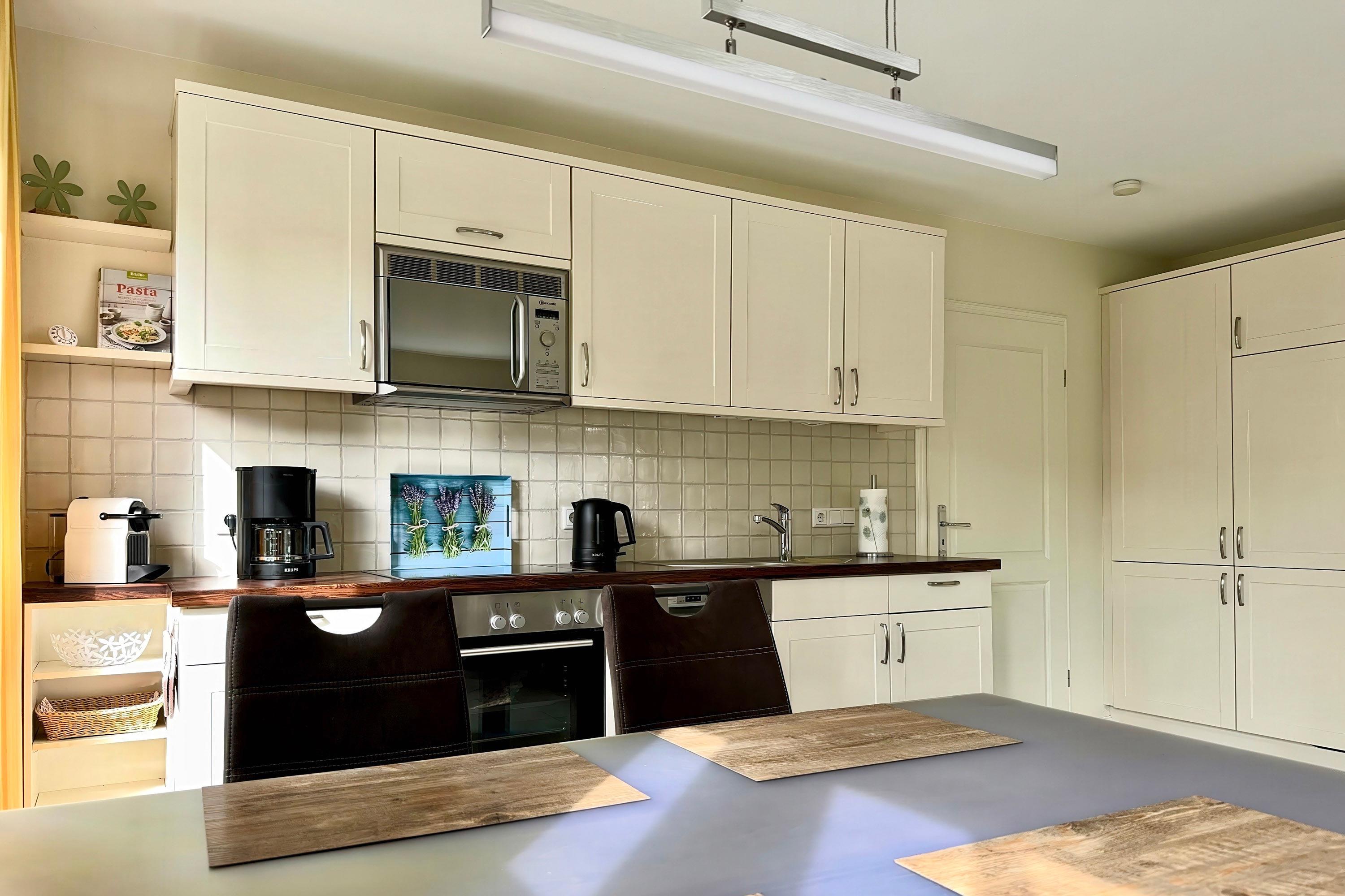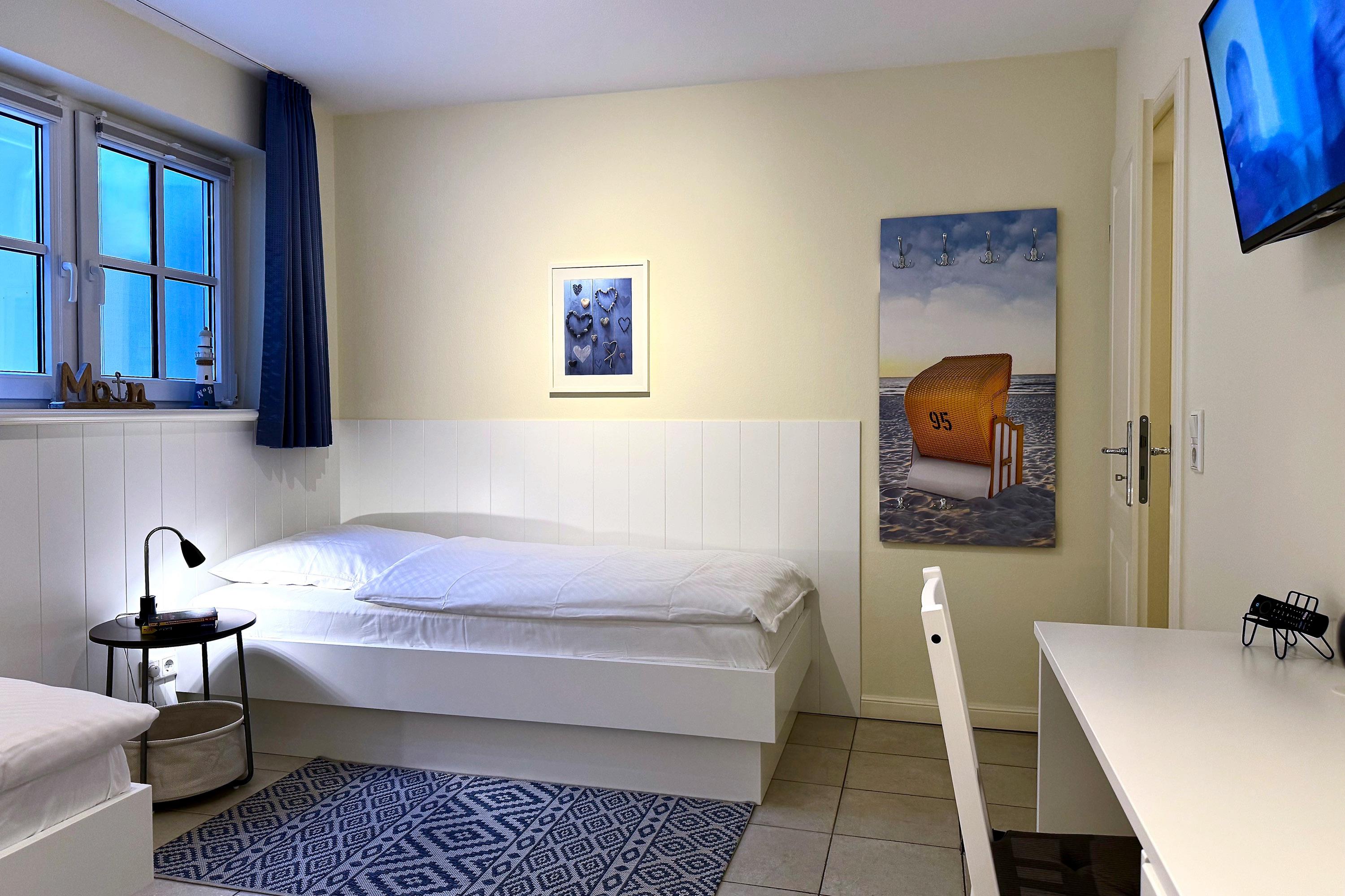 Herzlich Willkommen in unserem ruhig gelegenen, exklusiven Appartement. Die hochwertige Möblierung sowie die großzügig geschnittenen, lichtdurchfluteten Räume kennzeichnen diese außergewöhnliche Ferienwohnung. Das Haus mit 4 Wohnungen steht in unmittelbarer Nähe vom Südstrand in Wyk. Von der geschützt liegenden, großzügigen Südterrasse genießen Sie den Blick auf das kleine Wäldchen und die Atmosphäre der unmittelbar dahinter liegenden Nordsee. Während Sie gemütlich bei einem Glas Wein im Strandkorb den schönen Tag ausklingen lassen, toben Ihre Kinder im eigenen Garten. Abends oder bei Schietwetter" machen Sie es sich am Kaminofen gemütlich oder entspannen sich in der eigenen Infrarotsauna und tanken mal wieder auf! Ein Appartement mit hohem Komfort. "