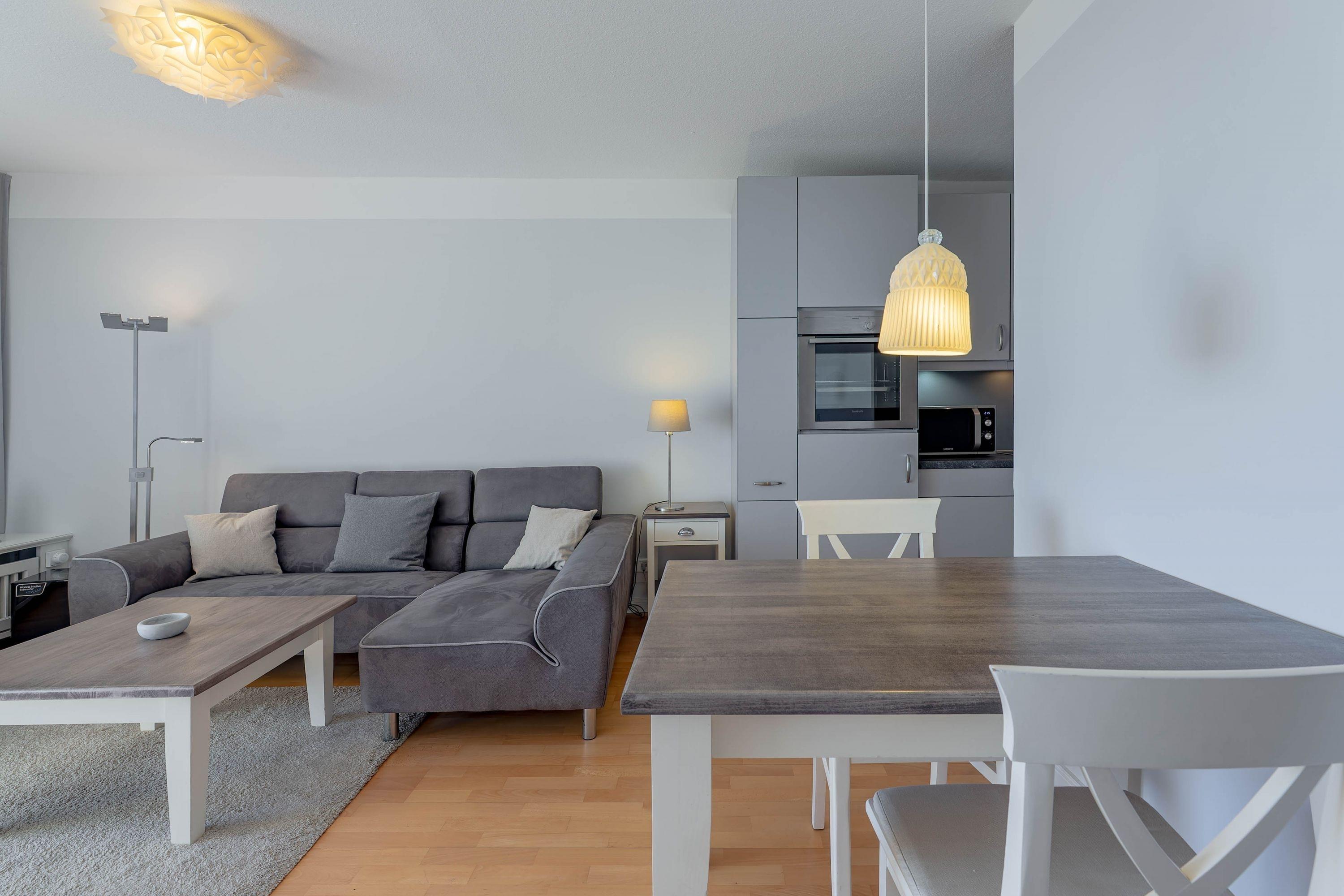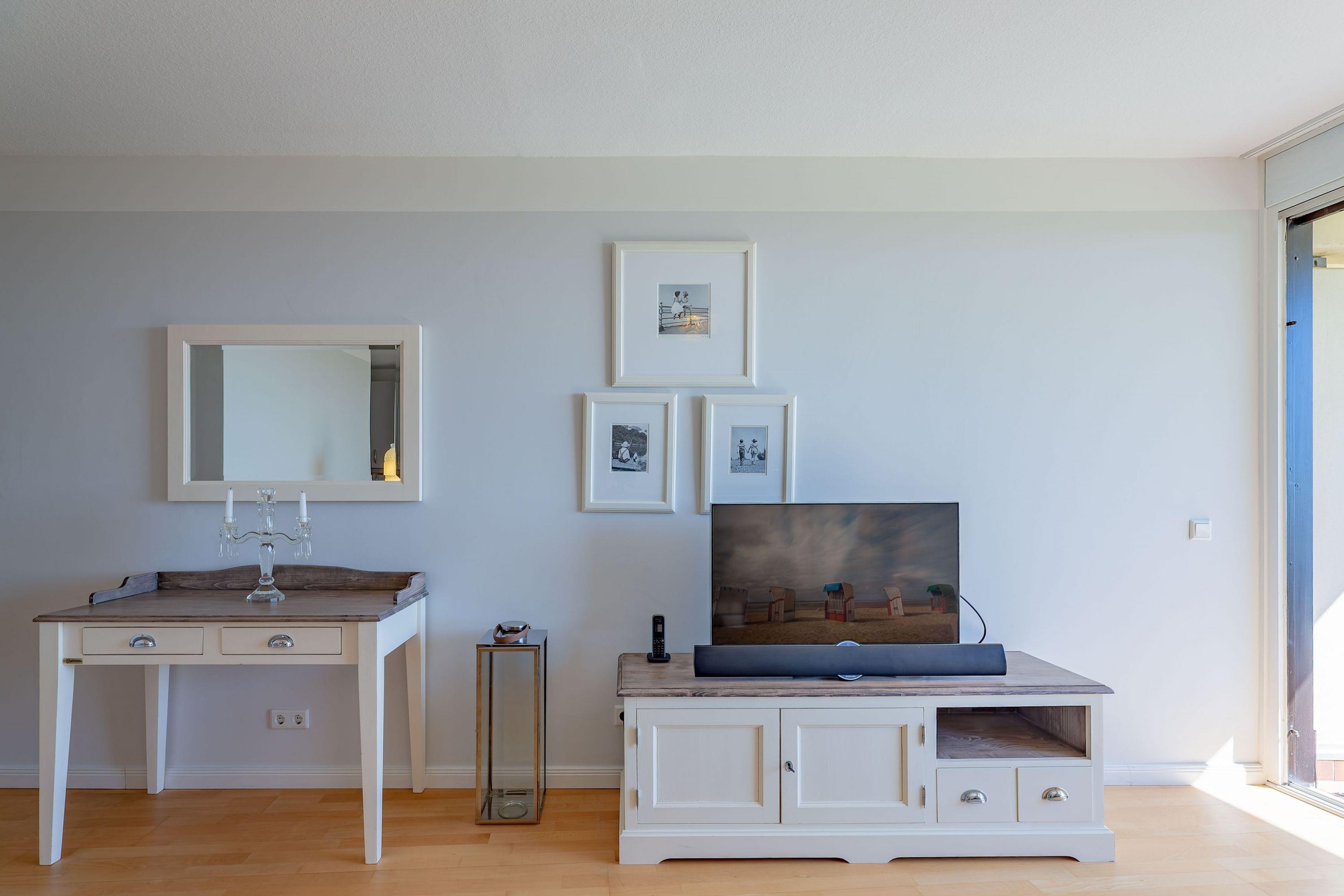 Die bekannte und sehr beliebte Ferienwohnanlage Bi de Wyk" liegt direkt am Südstrand von Wyk und bietet Ihnen einen herrlichen Blick über die Nordsee zu den Halligen und nach Amrum. Sowohl Einkaufsmöglichkeiten, als auch Restaurants, Kurmittelhaus und die Bushaltestelle befinden sich in unmittelbarer Umgebung - ein Urlaub ohne Auto wäre somit problemlos möglich. An Wellness-Angeboten steht im Haus ein Schwimmbad zur kostenfreien Nutzung und eine Sauna (mit Gebühr) zur Verfügung. Die Wohnung ist geschmackvoll eingerichtet und mit einer hochwertigen Küchenausstattung bestückt. Sie befindet sich im mittleren Teil des Gebäudes in Hochpaterre.