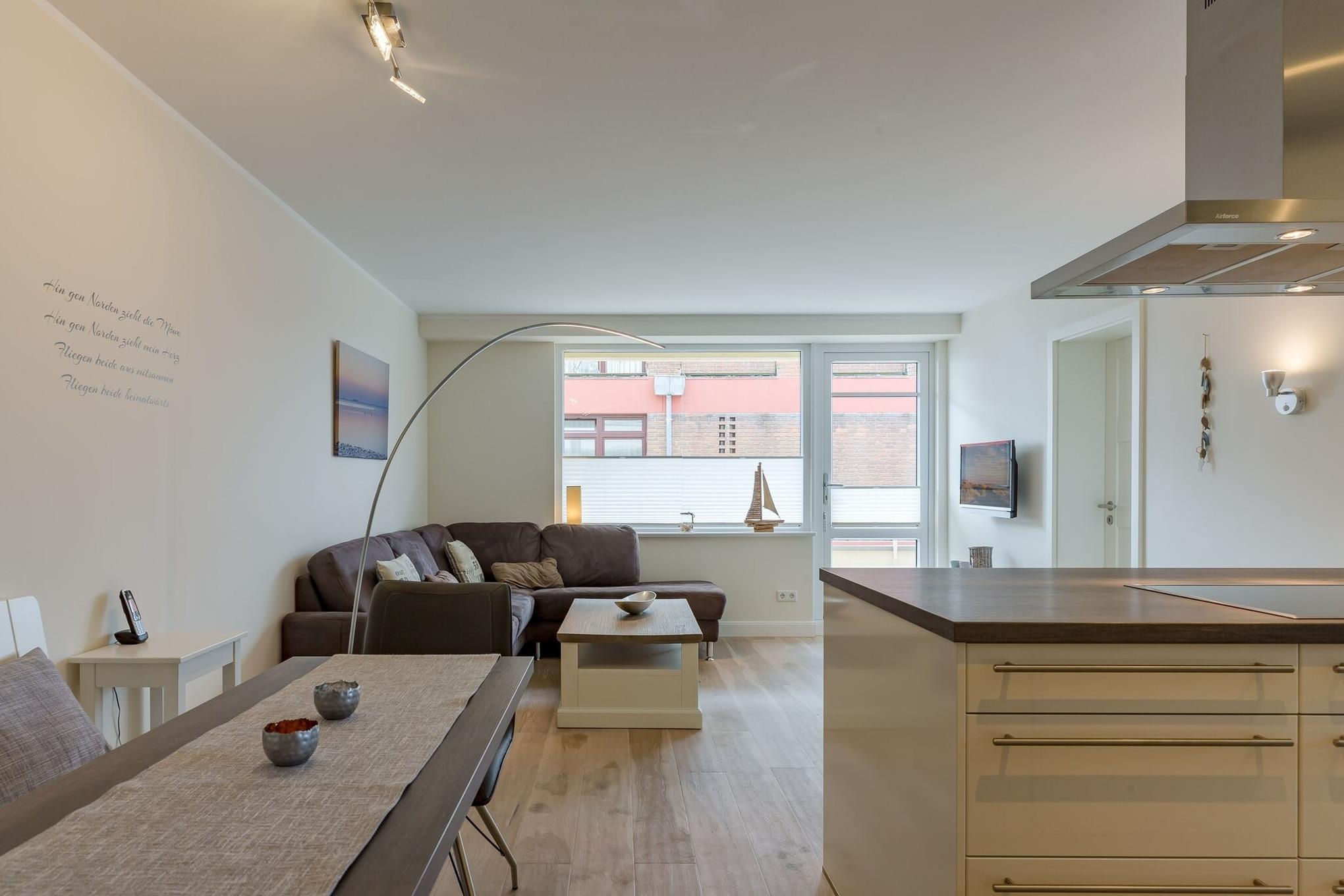 Wohnen Sie direkt am Sandwall in Wyk ?- in der ersten Reihe am Wasser. Hier befindet sich eine Wohnanlage mit mehreren Einheiten. Ihre Wohnung mit Balkon und Meerblick befindet sich im ersten Stock. Von hier genießen Sie einen traumhaften Blick direkt auf die Nordsee. Morgens zum Kaffeetrinken, Nachmittags zur Teatime und Abends erleben Sie die Abendstimmung am Meer..Mit nur wenigen Schritten sind Sie am Sandstrand und am Wasser oder auch an der Promenade in Wyk mit seinen vielen Cafes, Geschäften und Restaurants. Bummeln, Shoppen und leckere Köstlichkeiten genießen - alles mit Meerblick ?- wo gibt es das schon? Die Wohnung bietet Platz für drei Personen. Der Wohn-Essebereich mit offener Küche läßt keine Wünsche offen. Sie werden sicherlich einen unvergesslichen Urlaub in diesem Wohlfühlappartement verbringen..
