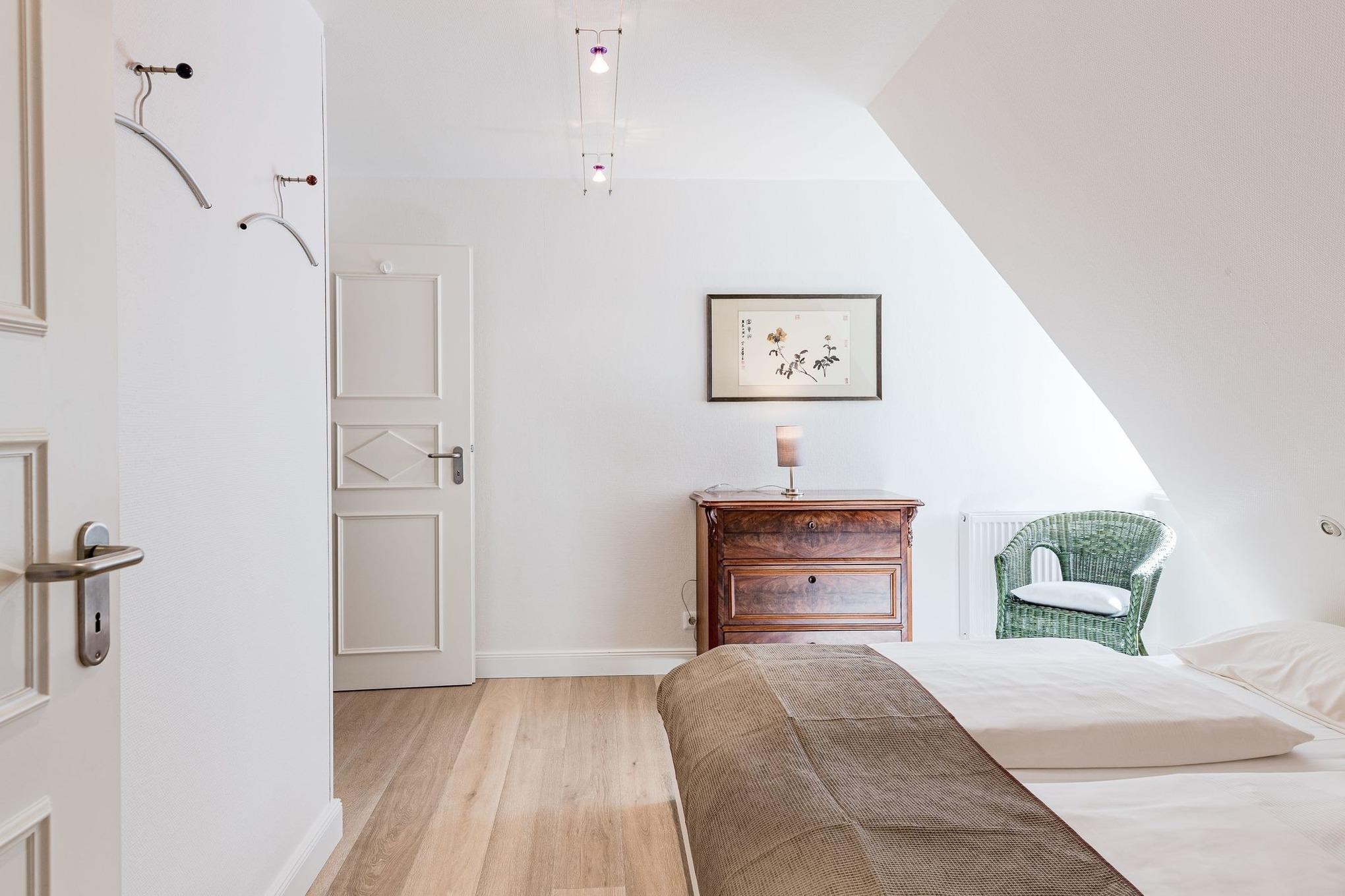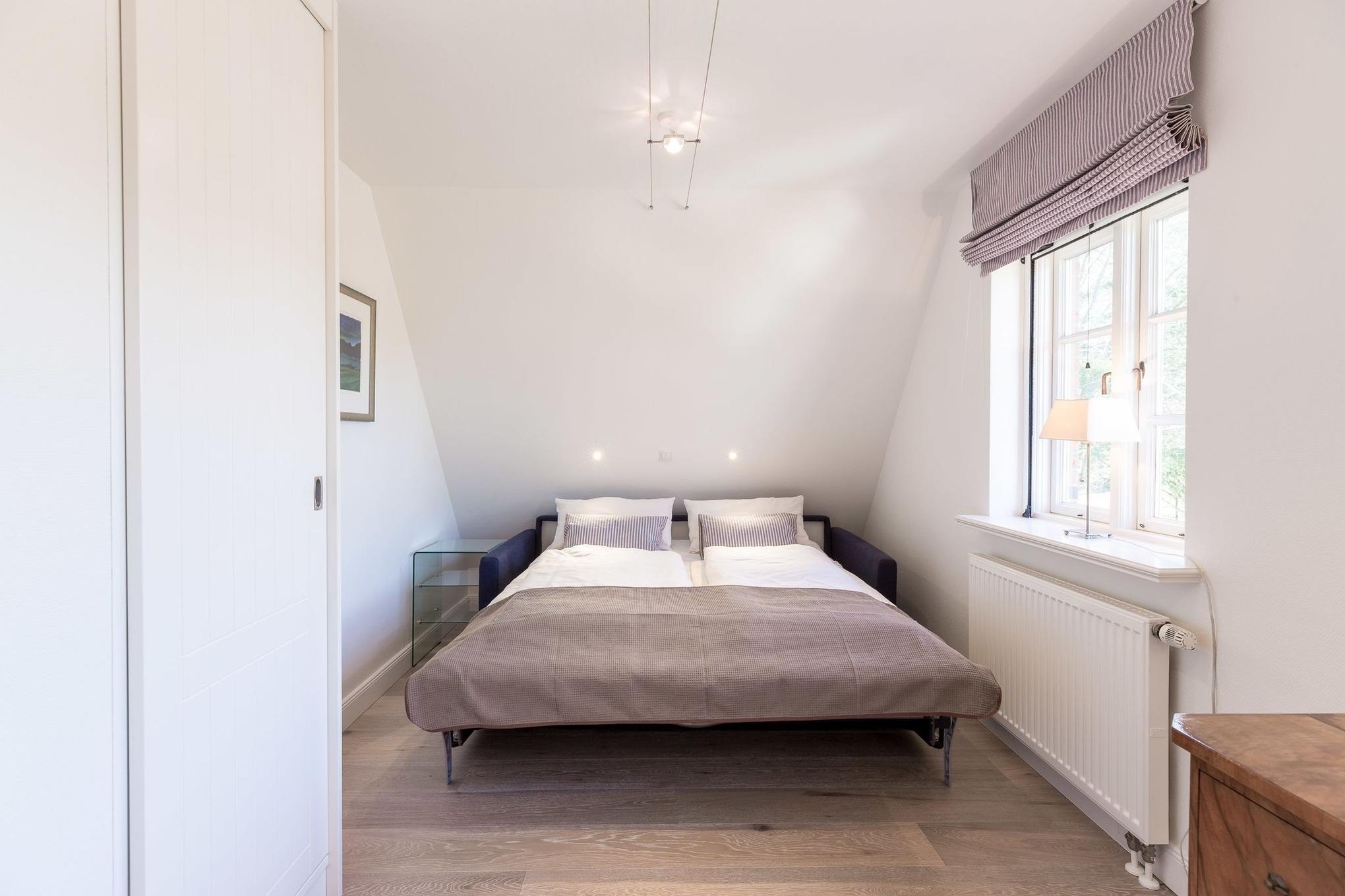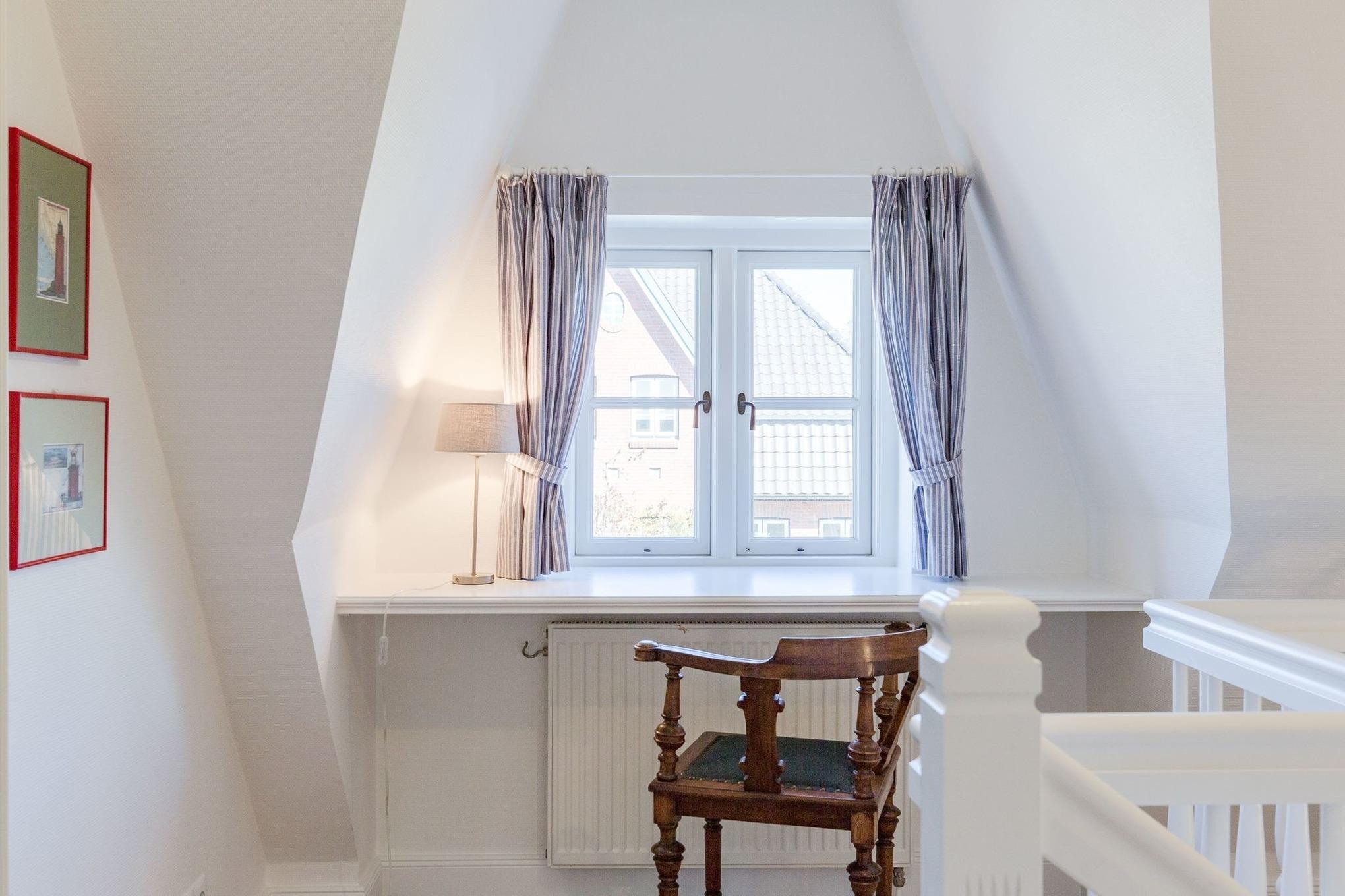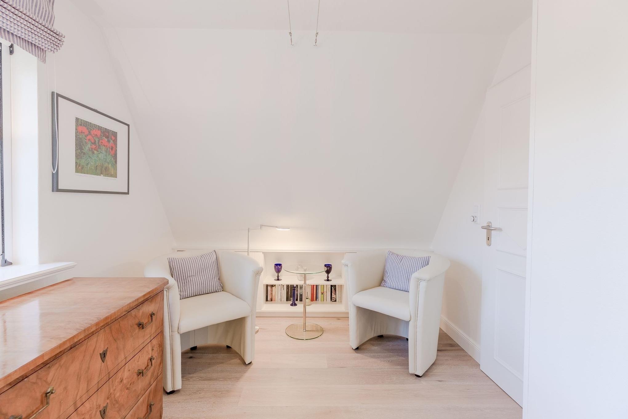 Diese Endhaushälfte unter Reet läßt für Gäste kaum Wünsche offen. Das tiefgezogene Reet und der für die Insel Föhr so typische Baustil gibt einem das Gefühl in einem der ältesten Häuser der Insel zu wohnen. Dabei muss auf keinen Komfort verzichtet werden. Die moderne Enrichtung bietet mit vielen ausgesuchten Details eine Menge, damit Ihre Urlaubswünsche in Erfüllung gehen. Sie wohnen direkt am alten Kurkpark und spüren in Ihrem Garten den Wind vom Meer wenn er durch die Blätter und Äste der mächtigen Zedern und Düneneichen streicht. Der Strand liegt in nur 100 Meter Entfernung. Wem es im gemütlichen Strandkorb am Haus denn doch einmal ein wenig zu langweilig wird, ist in etwa 15 Gehminuten im Trubel der kleinen Stadt von Wyk. Ein Haus zum Verlieben! **** Sterne