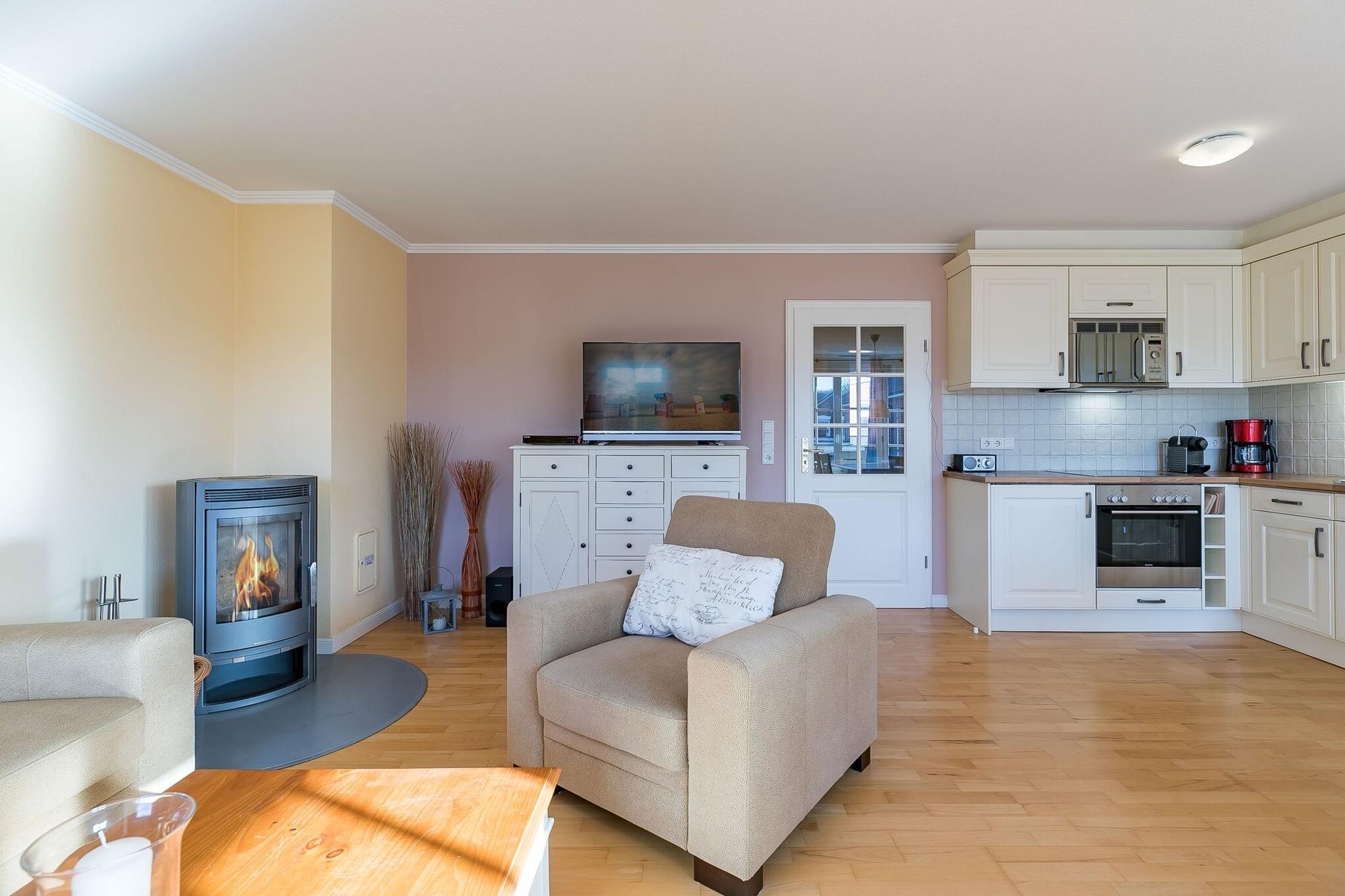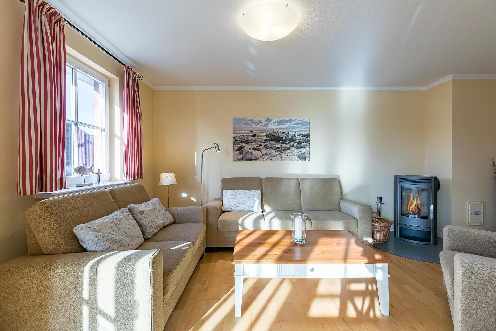 Haus an der Altstadt Wohnung 6 .Badestr. 20, Wyk. .Herzlich Willkommen im Haus an der Altstadt. Mitten im Zentrum von Wyk in der Badestrasse, direkt an der Altstadt gelegen, befindet sich diese wunderschöne Wohnanlage, nur wenige Gehminuten von der Promenade und dem Badestrand entfernt. In unmittelbarer Nähe befinden sich alle Erholungs- und Einkaufsmöglichkeiten sowie Cafés und Restaurants. Die exklusive Obergeschosswohnung Nr. 6 erstreckt sich über 2 Etagen und ist mit einem französischem Balkon, dänischem Kaminofen, einer Sauna und 2 Bädern ausgestattet. Die Wohnung selbst befindet sich in einem 2-geschössigen Wohngebäude mit insgesamt 8 Wohneinheiten. Wir freuen uns auf Ihren Besuch. Seien Sie unser Gast.