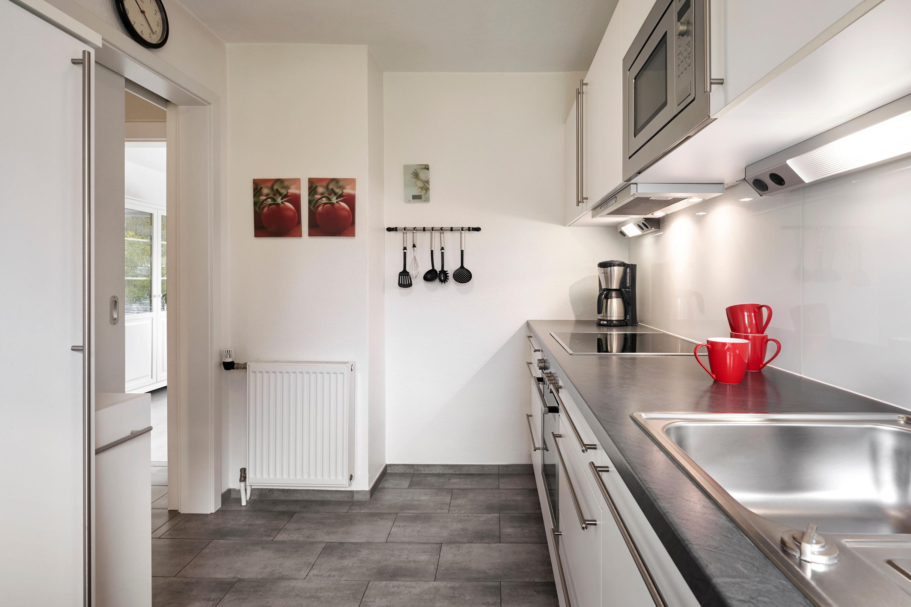 In diesem Einzelhaus im Bungalowstil werden Sie einen wunderbaren Urlaub genießen. Vom großen Wohn-Esszimmer gelangen Sie über eine überdachte Terrasse direkt in den Garten. Sollte also mal ein kurzer Schauer das Grillvergnügen trüben, sitzen Sie geschützt im Freien. Möchten Sie den Tag nicht im eigenen Garten verbringen, machen Sie sich auf den Weg zur Strandpromenade. In nur wenigen Minuten gelangen Sie zu Fuß oder auch per Rad zum Wasser. Angelehnt ist der Grünstreifen an einen Wald, welcher mit wunderschönen Wegen zum Spazierengehen einlädt.