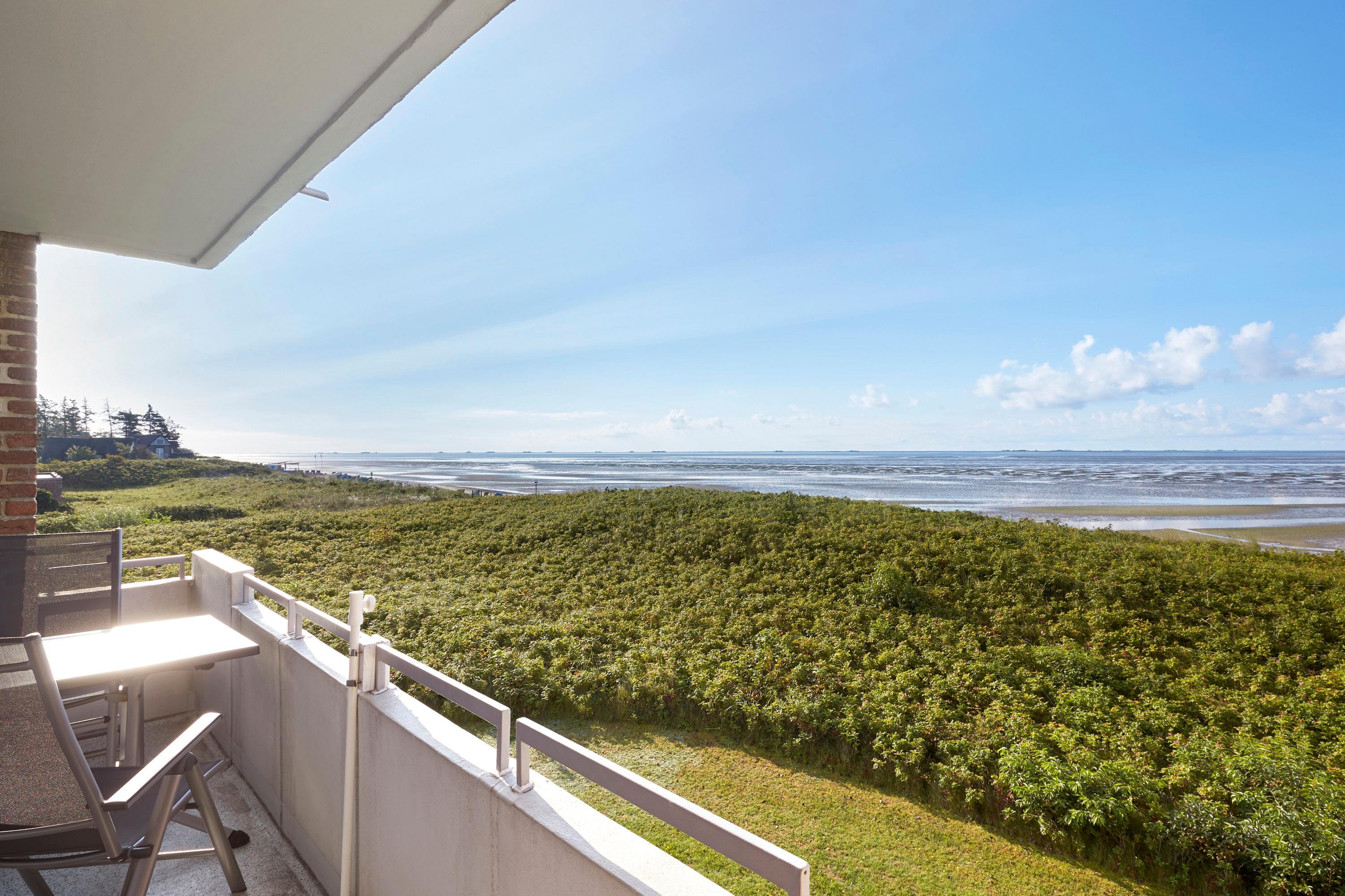 Haus Langeneß ?- erste Reihe am Meer. Wohnen Sie in Traumlage mit absolut einmaligem Blick auf die Nordsee und die Halligen. In der Wohnung 18 im ersten Obergeschoss mit Südbalkon haben Sie genau diesen Blick. Ein kleiner Pfad führt Sie direkt zum Strand. Und wenn die Nordsee mal zu kalt zum Baden ist, im Haus Uthlande steht Ihnen das Schwimmbad zur Nutzung mit zur Verfügung. Die Wohnung ist gemütlich für 2 Personen. Das Etagenbett ist spannend für kleine Kinder.