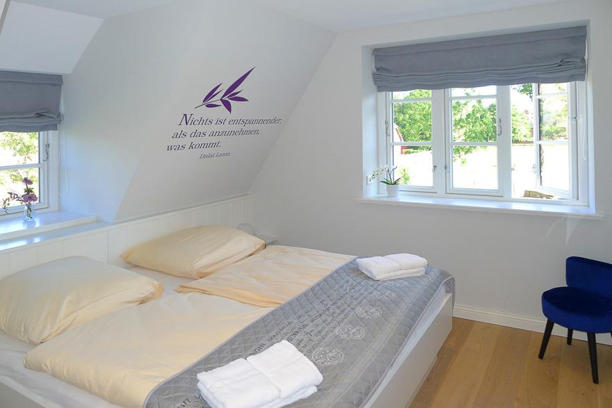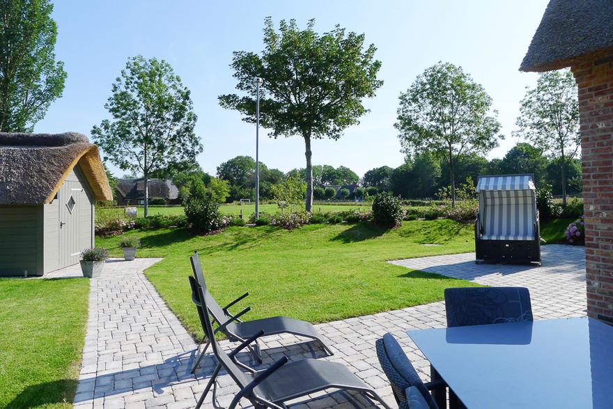 Wohnen Sie in Ihrem Urlaub in dieser schönen Reetdachhaushälfte mit wunderschönen Details und exklusiver Ausstattung. Ihre ganze Familie hat ausreichend Platz und wird sich wohlfühlen. Erholsamen Urlaubstagen steht nichts im Weg, dafür sorgt die Sauna mit Relaxraum im Dachboden, der gemütliche Kachelofen im großzügigem Wohn-Essbereich und die sonnige Terrasse. Egal welche Jahreszeit Ihr Favorit für einen Nordseeurlaub ist ?- hier steht die Erholung in Ihrem Urlaub immer im Vordergrund. Mit nur wenigen Schritten gelangen Sie nach Wyk ins Stadtzentrum und damit auch zur Strandpromenade. Cafes und Restaurants laden zum Schlemmen ein und viele kleine und große Geschäfte warten darauf von Ihnen entdeckt zu werden ?- und das alles mit wunderbarem Blick auf die Halligen und die Nordsee.