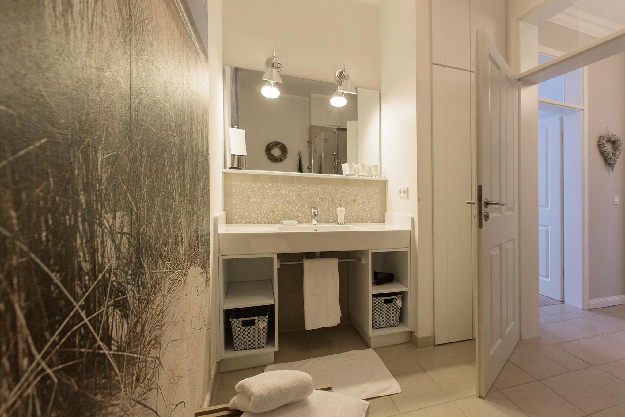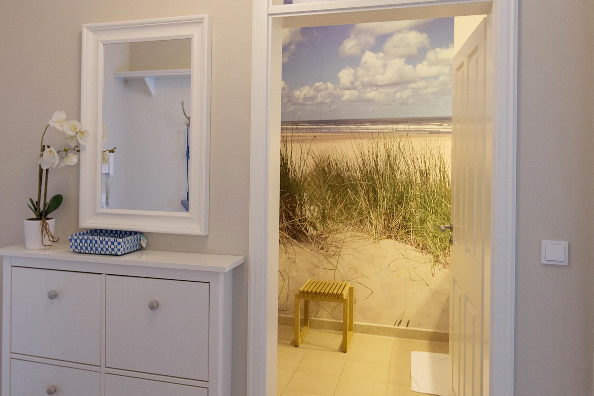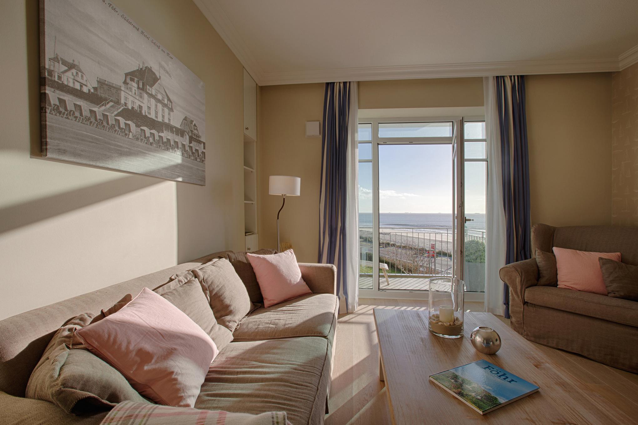 Diese exklusive Wohnung liegt im 2. OG hinter historischer Fassade, die beim Neubau erhalten geblieben ist. Sie bietet vom Wohn-, Schlaf- und Essbereich einen wunderschönem Blick auf den Strand, die Nordsee und die Halligen. Die helle 2-Zimmerwohnung ist u.a. mit hochwertigen Einbauschränken, moderner Landhaus-Küche, einer Rain Air Dusche und einem überlangen Bett ausgestattet. Italienische Fliesen [&] Eichenparkett mit Fußbodenheizung sowie die Einrichtung im Riviera Maison Stil schaffen eine Wohlfühlatmosphäre. Der windgeschützte Süd-Ostbalkon (über 10qm) bietet eine Sonnenliege und zwei Sessel zum Träumen. Nach einem langen Urlaubstag entspannen sie in der hauseigenen Sauna und lassen Ihre Seele baumeln.