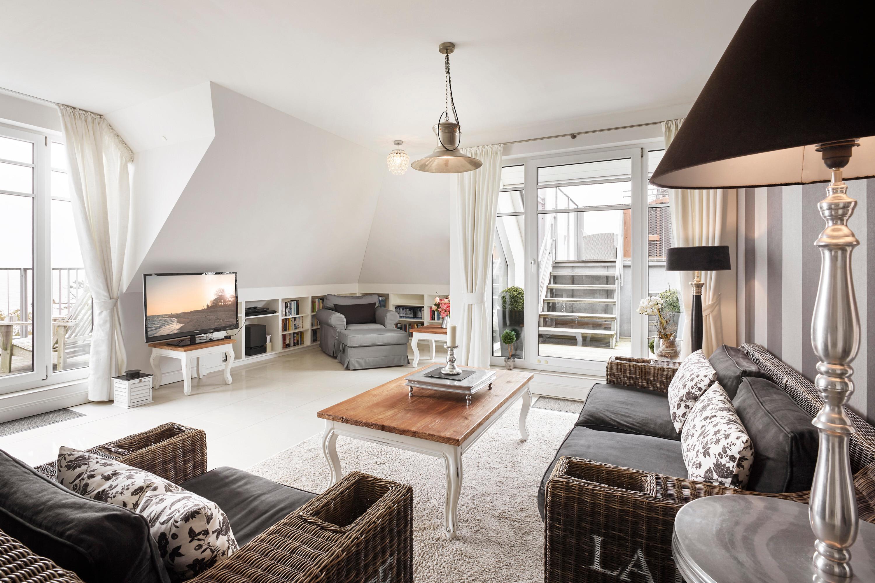Wir begrüßen Sie im Schloss am Meer, der exklusiven Wohnanlage direkt am Wyker Südstrand. Ihre Penthouse Wohnung liegt im 4. Obergeschoss hinter der historischen Fassade, welche beim Neubau erhalten wurde. Hier laden zwei Dachterrassen und eine Loggia ein, den Blick auf die Nordsee und Halligen zu genießen. Ein einzigartiger Panoramablick erwartet Sie. Genießen Sie die Sonne schon beim Frühstück! In nur wenigen Schritten befinden Sie sich auf der Promenade, die Sie ins Herz von Wyk führt. Hier laden Geschäfte zum Bummeln ein, in Cafés und Restaurants werden Sie mit kulinarischen Köstlichkeiten verwöhnt.