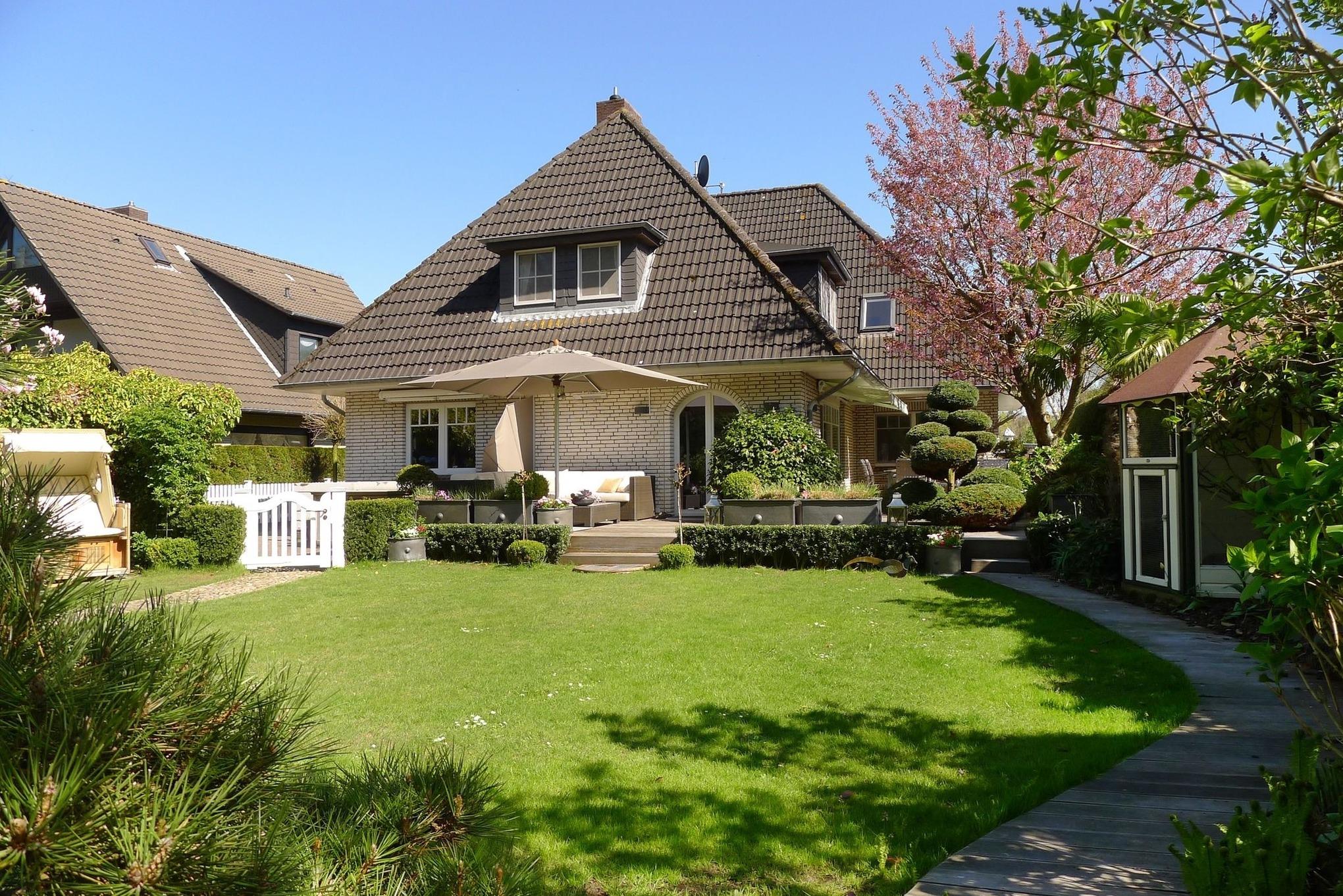 Unser Haus Nordwind" liegt in einer absolut ruhigen Sackgasse am Rande von Wyk. Zur Innenstadt sind es etwa 15-20 Gehminuten, zum Südstrand etwa 10 Gehminuten. Das Haus steht direkt am Wald und bietet Ihnen im Erdgeschoss eine sehr moderne, hochwertige und geschmackvoll eingerichtete Wohnung. Von Wohnbereich gelangen Sie direkt auf die Terrasse die den Blick in den Garten freigibt. Eine zweite Frühstücksterrasse ist auch vorhanden. Beide Terrassen sind zur alleinigen Nutzung - exklusiv für die Erdgeschosswohnung ?- vorgesehen. Der große und wunderbar eingewachsene Garten ist wie ein Gemälde von dem man den Blick gar nicht abwenden mag. Ein gemeinschaftlicher Gartensitzplatz mit Strandkorb und Sitzgruppe ist auch vorhanden. Sollten Sie Ihren Hund mitbringen, bitten wir Sie diesen ?- mit Rücksicht auf die anderen Gäste - nicht ohne Leine auf der Terrasse oder im Garten laufen zu lassen. Ein Haken für eine Hundelaufleine ist auf der Terrasse vorhanden."