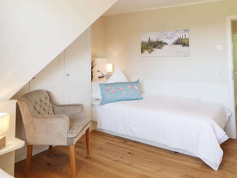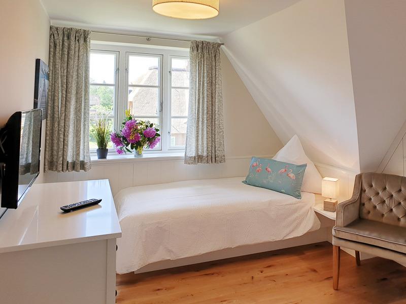 Nahe zum Stadtkern Wyk erwartet Sie ein typisches Friesenhaus mit schönen Details wie ein Reetdach, Holzsprossenfenster, ausgewählte Fliesen und passgenaue Tischlerarbeiten. In dieser modernen Doppelhaushälfte haben Sie alles was den Urlaub auf einer Nordseeinsel so typisch macht.. Der große Garten lädt schon bei den ersten Sonnenstrahlen dazu ein, draußen zu sitzen und die Nordseeluft zu spüren..Mit nur wenigen Schritten gelangen Sie in den Stadtkern von Wyk. Hier laden zahlreiche Geschäfte, Cafes und Restaurants zum bummeln und einkehren ein. Von der Promenade haben Sie einen wunderbaren Blick auf die Nordsee und die Halligen ?- Urlaub pur!.