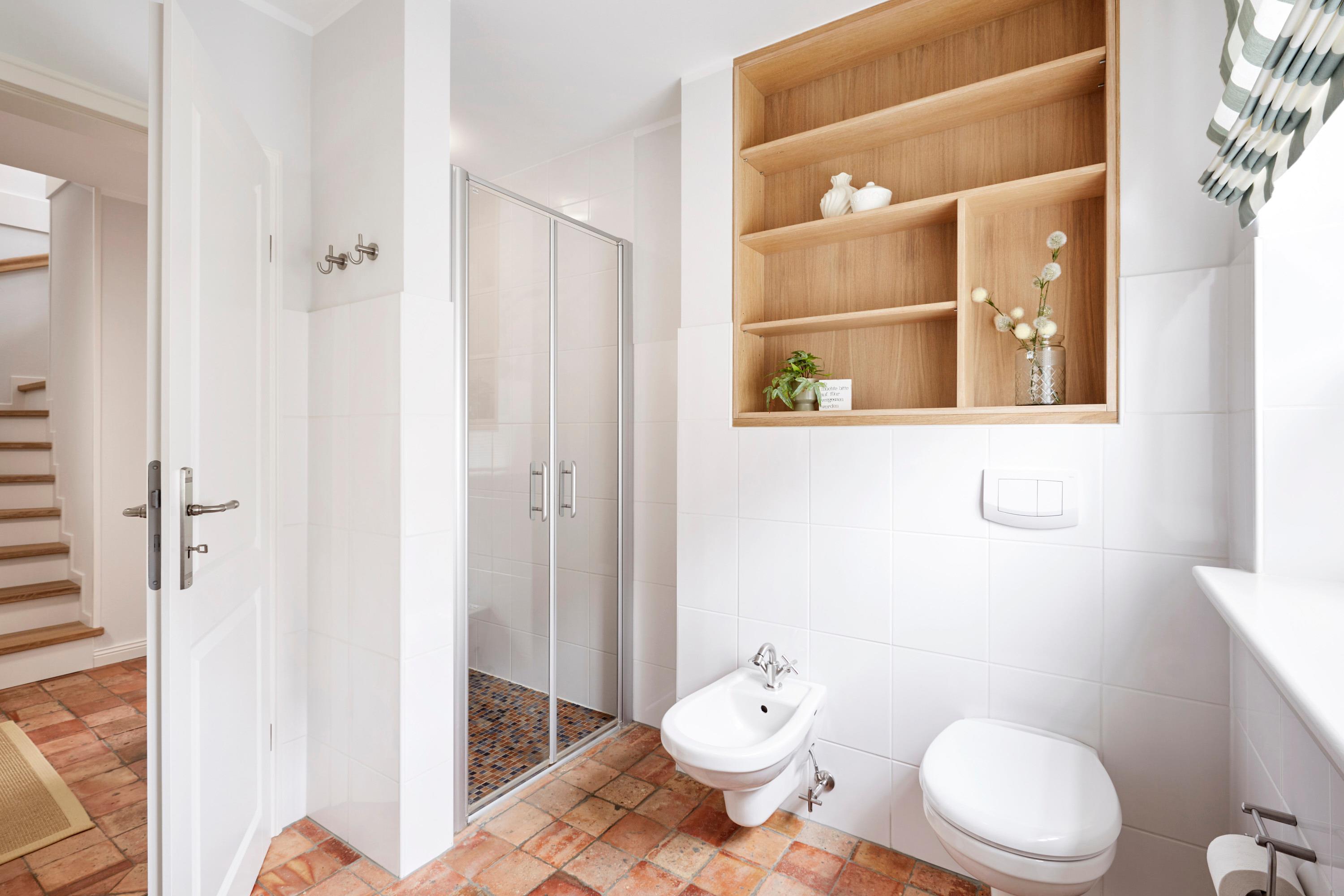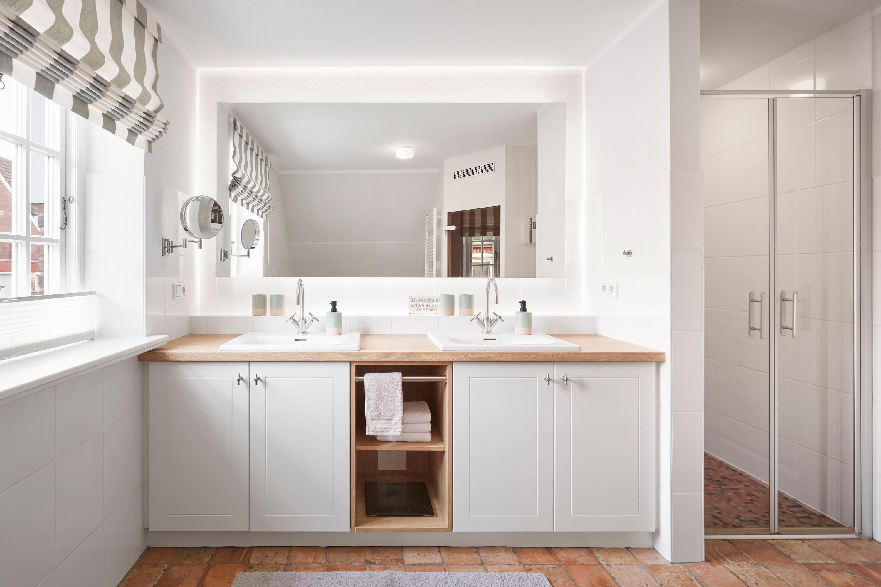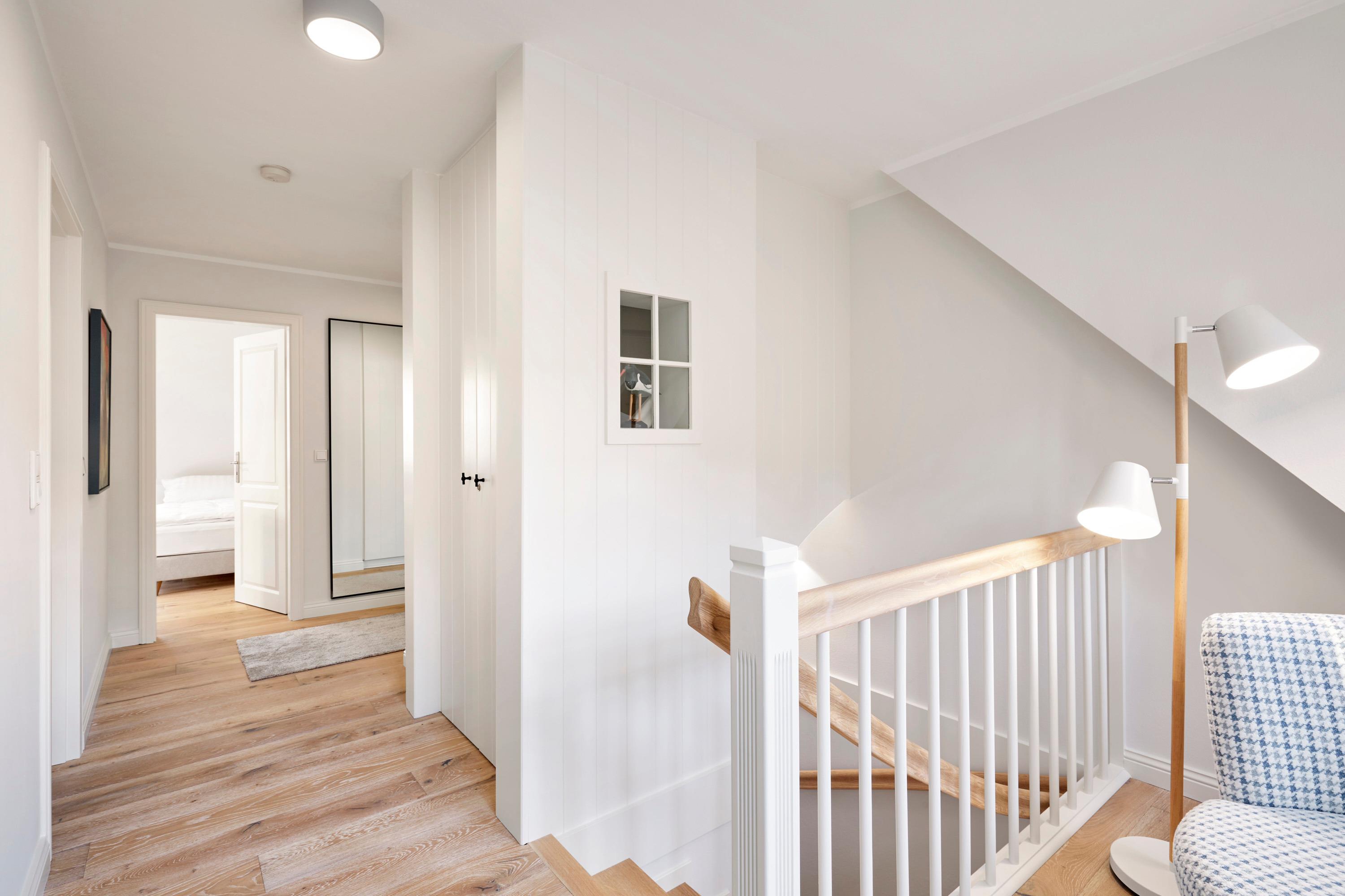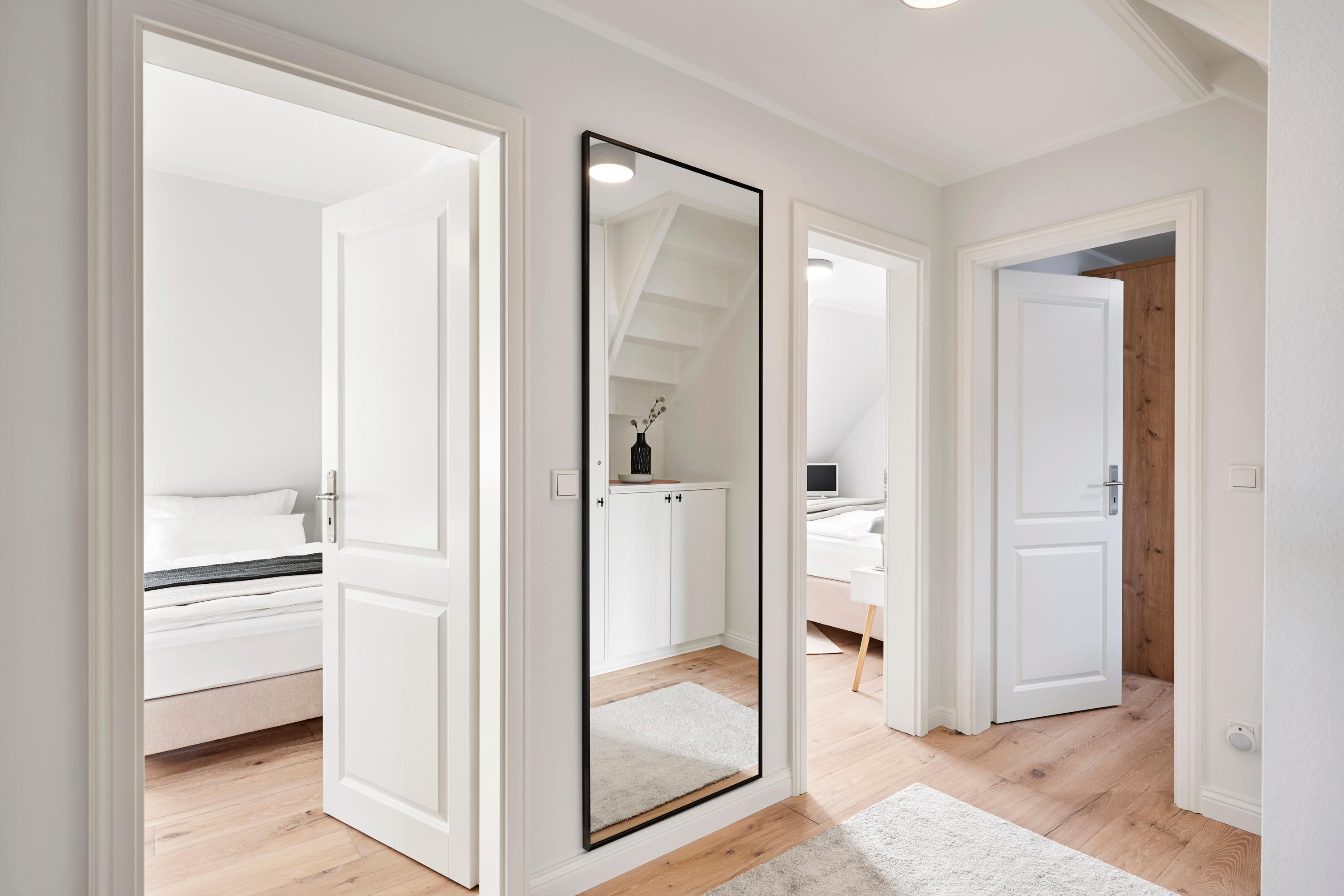 Im Obergeschoss erwartet Sie eine private Wellness-Oase mit Sauna und Badewanne, eingebettet in ein stilvolles Duschbad. Zudem stehen drei behagliche Schlafzimmer zur Verfügung – zwei mit Doppelbetten, eines mit zwei Einzelbetten. Zwei der Schlafzimmer bieten direkten Zugang zu einem Balkon.