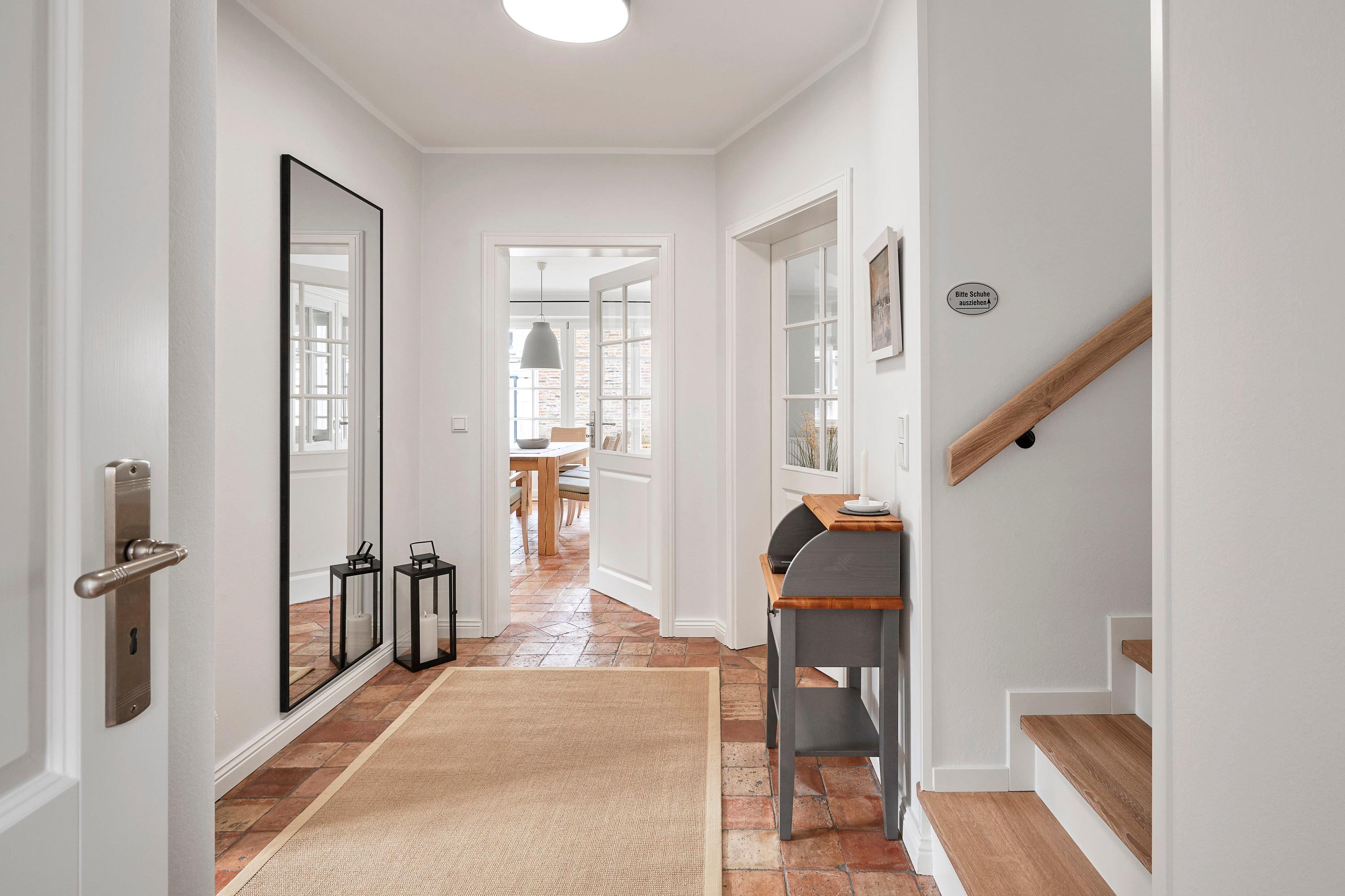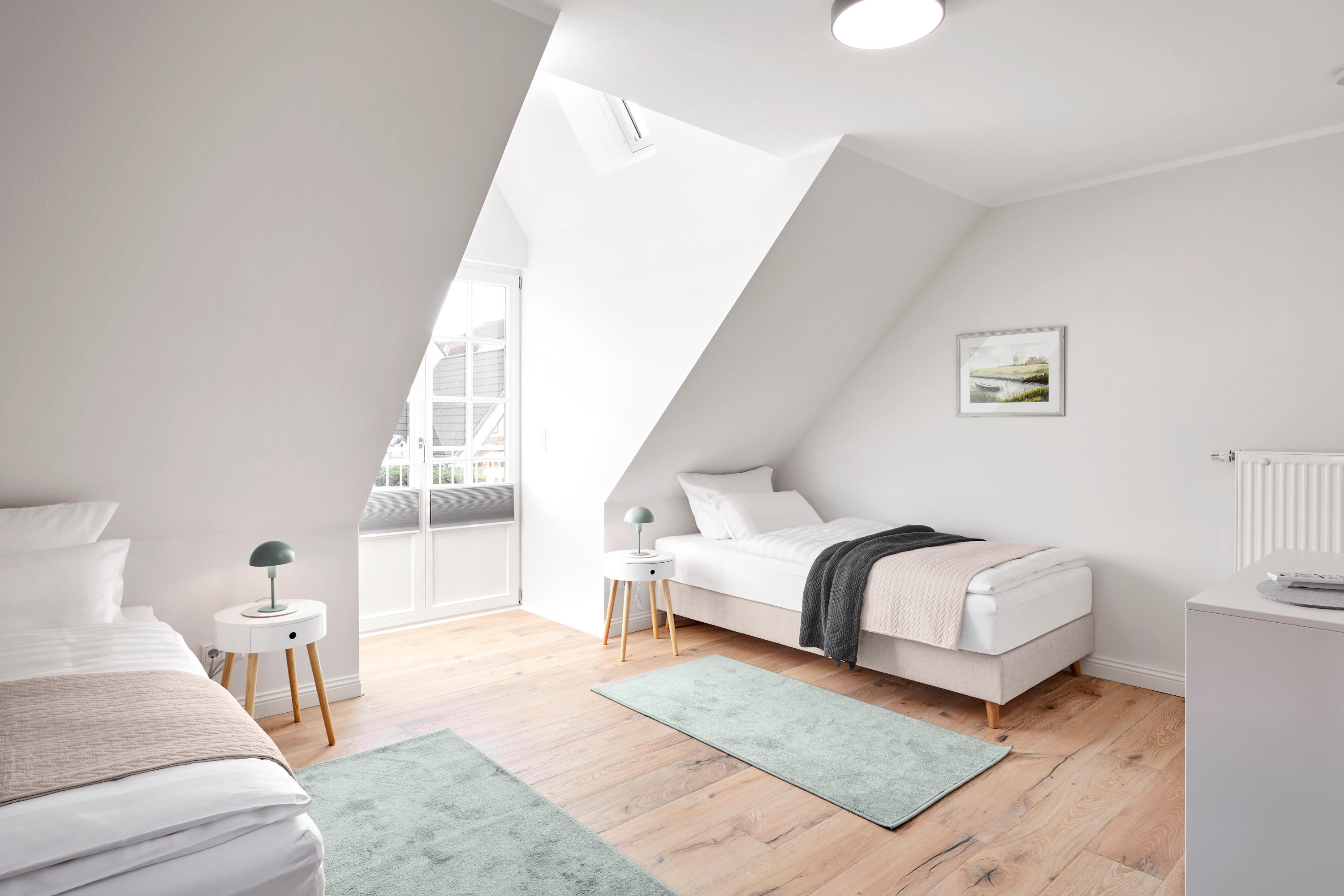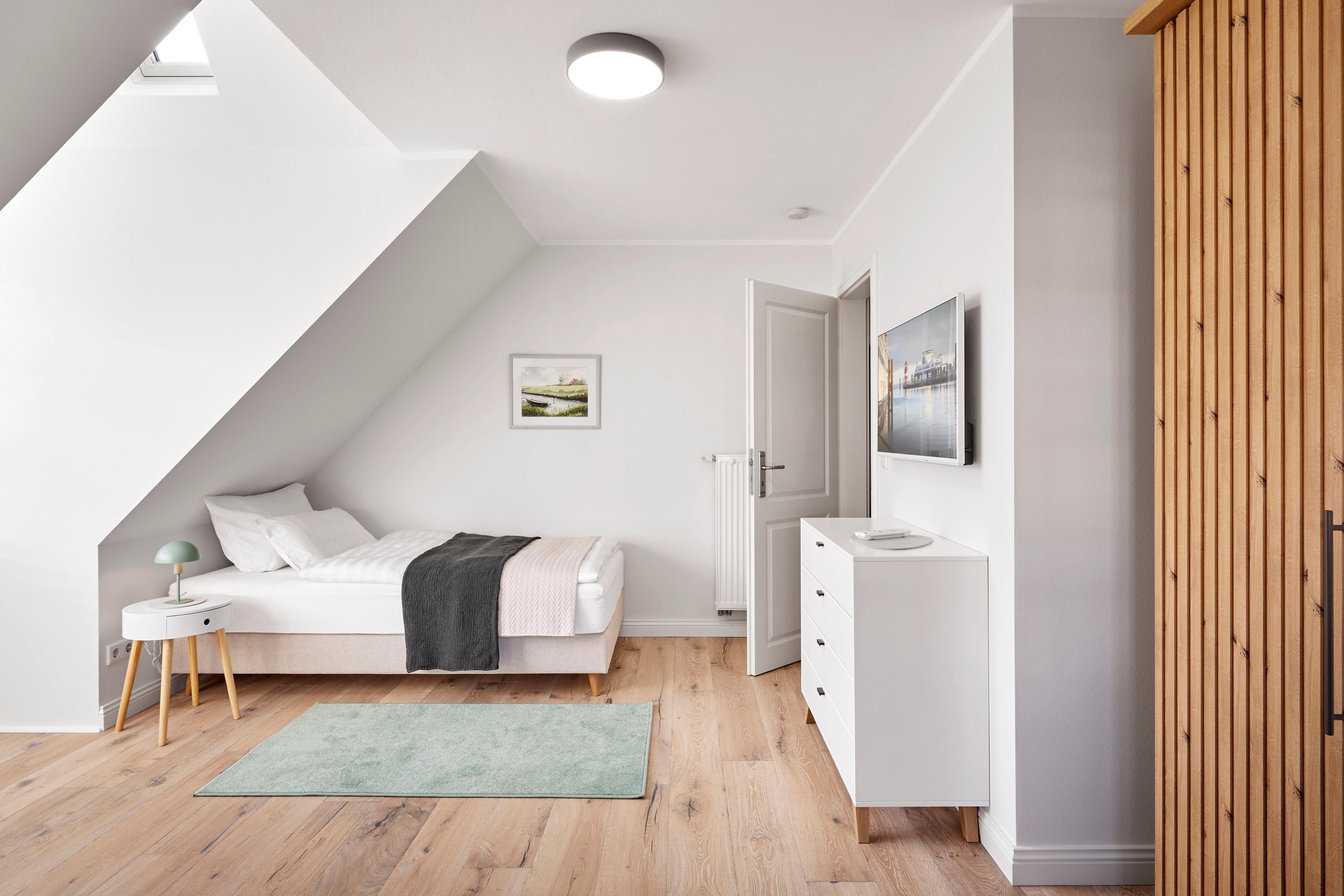Dieses elegante Ferienhaus auf zwei Ebenen vereint Großzügigkeit, stilvolles Design und höchsten Komfort inmitten der charmanten Gassen von Wyk. Das Erdgeschoss besticht durch einen lichtdurchfluteten Wohn- und Essbereich, eine moderne Küche, einen Hauswirtschaftsraum sowie ein vielseitig nutzbares Arbeits- oder Lesezimmer. Ergänzt wird das Raumangebot durch ein geschmackvolles Duschbad mit WC.