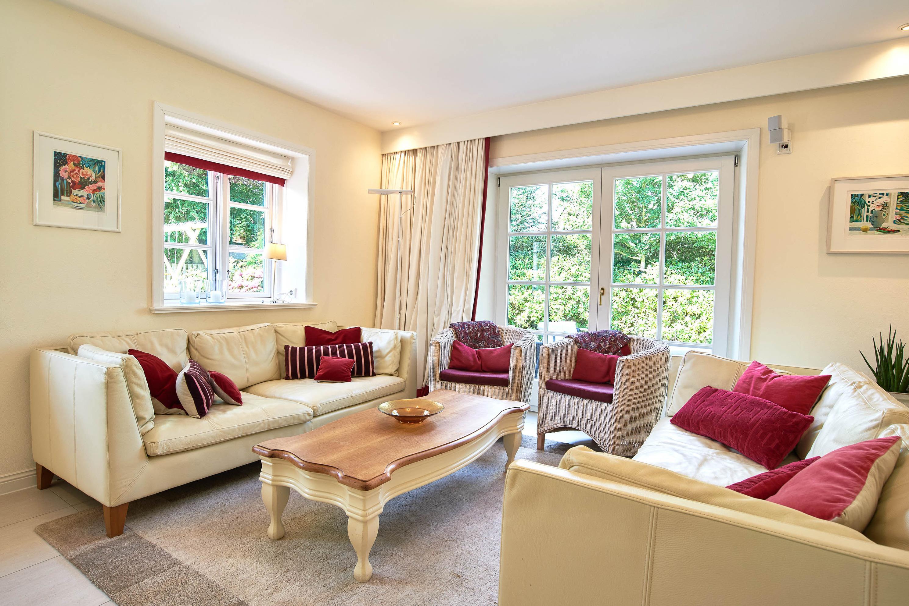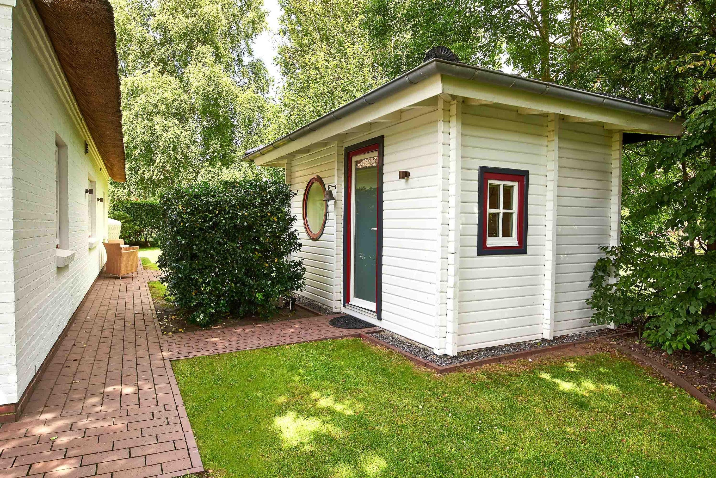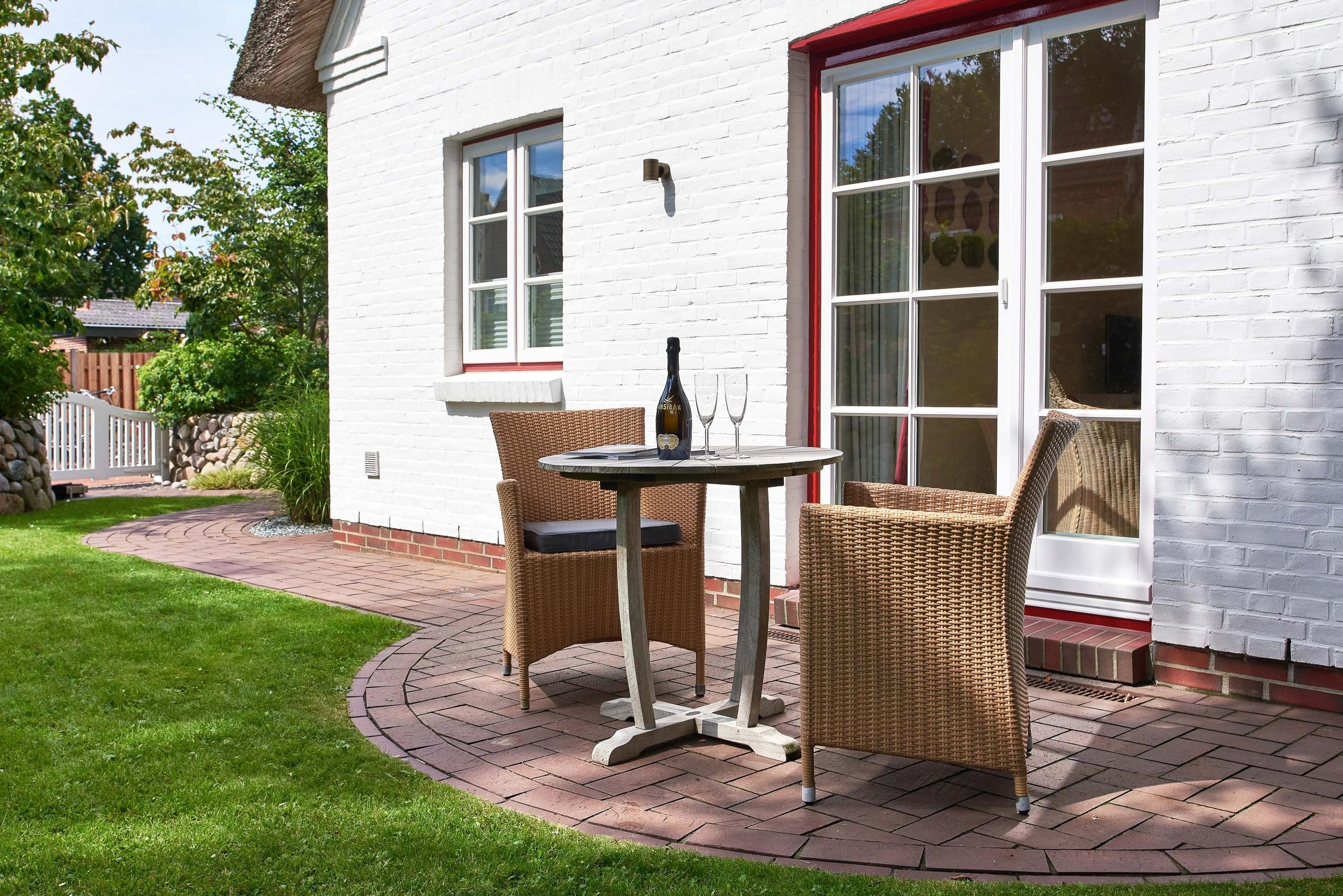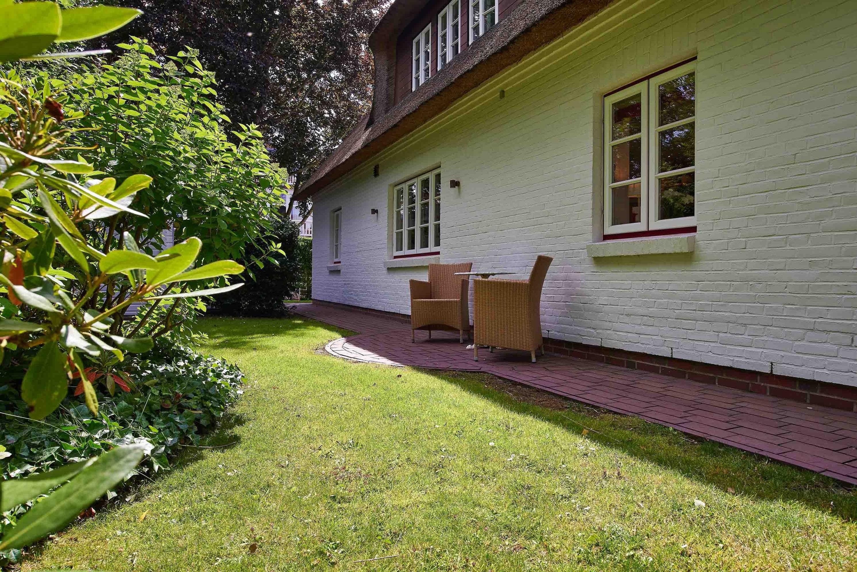 Entdecken Sie das versteckte, märchenhaft im Herzen von Wyk gelegene Einzelhaus unter Reet, das idyllisch und sehr ruhig in zweiter Reihe nur von Gärten umsäumt auf einem ca. 1.000 m2 großen, eingewachsenen Grundstück liegt. Der wunderschön angelegte Garten bietet durch innere Friesenwälle viel Privatsphäre und durch Illumination am Abend eine außergewöhnliche Atmosphäre. Die stilvolle Einrichtung der Villa ist ein stimmiger Mix aus modernen Möbeln und antiken Einzelstücken. Genießen Sie die exklusiven Bäder und den Besuch in der geräumigen Gartensauna. Sie werden sich sicher gern an die gemütlichen Abende vor dem historischen Kachelofen im Wohnzimmer erinnern. Auch zwei der geräumigen Schlafräume sind mit je einem Panoramaofen ausgestattet. Nur ein kurzer Fußweg führt Sie zu den Einkaufsmöglichkeiten und der Promenade mit Badestrand, Bars und Cafes.