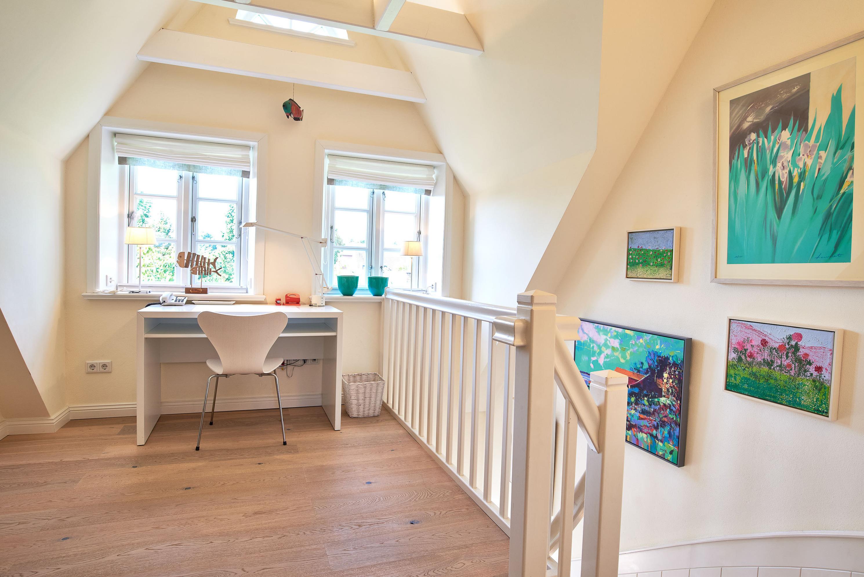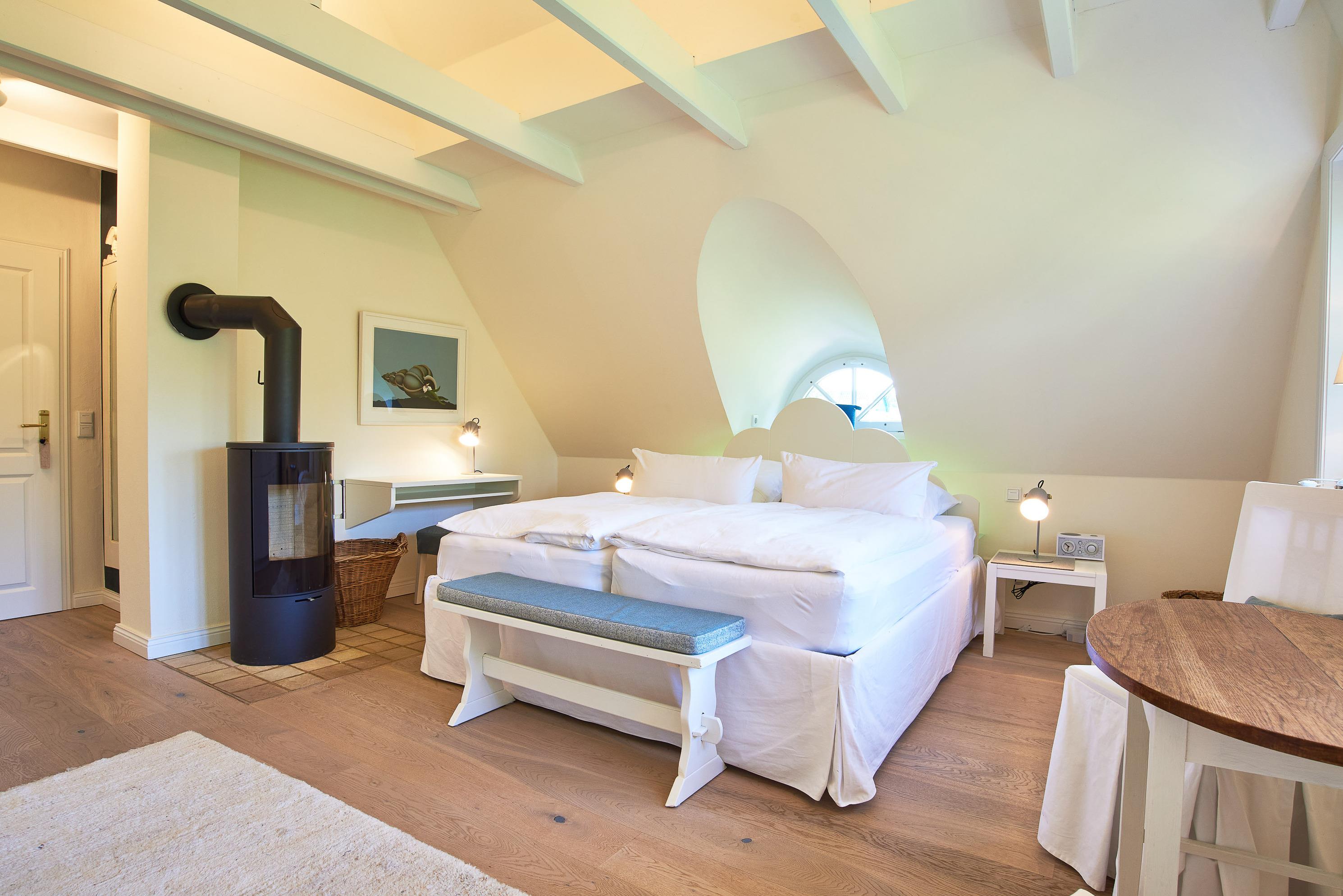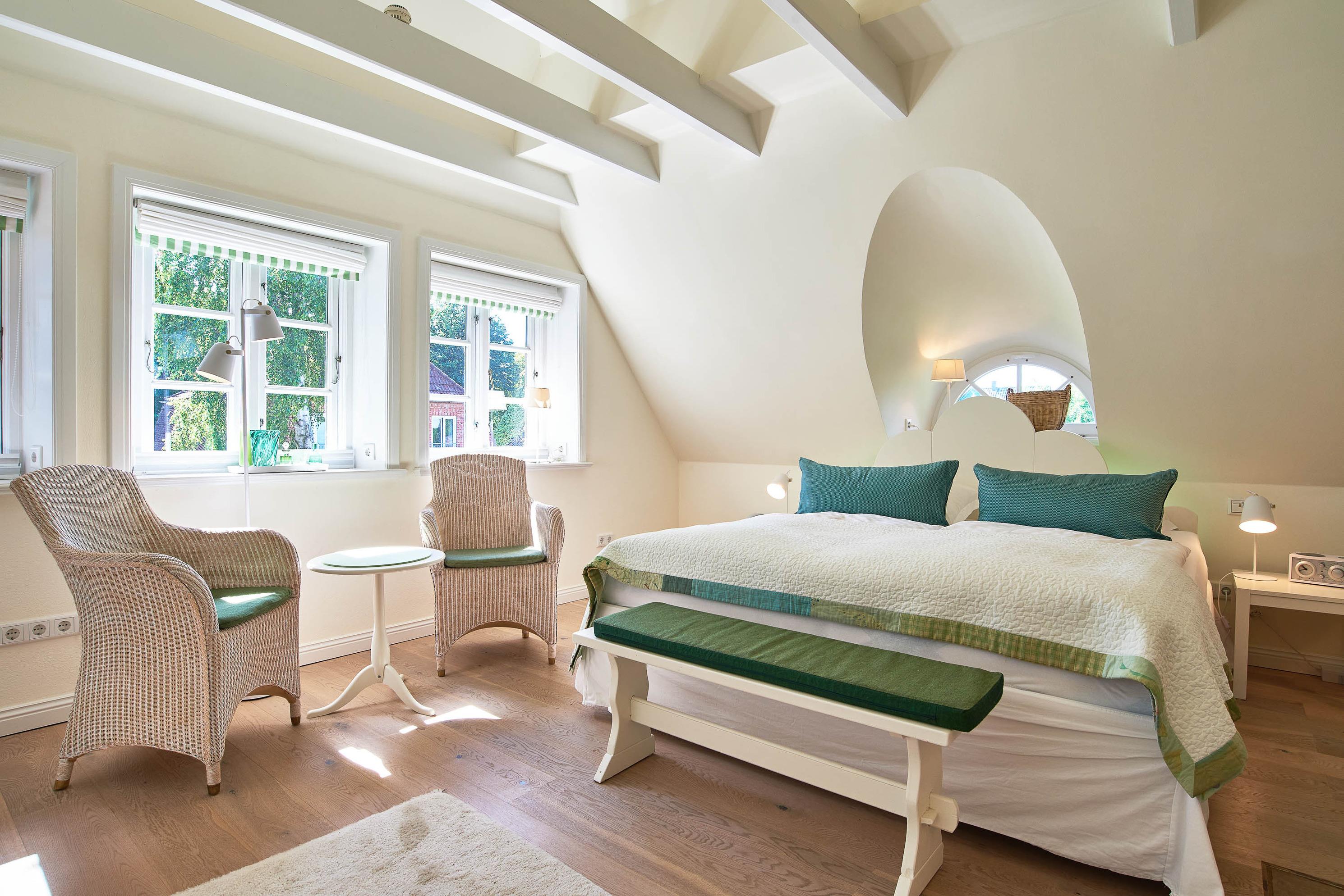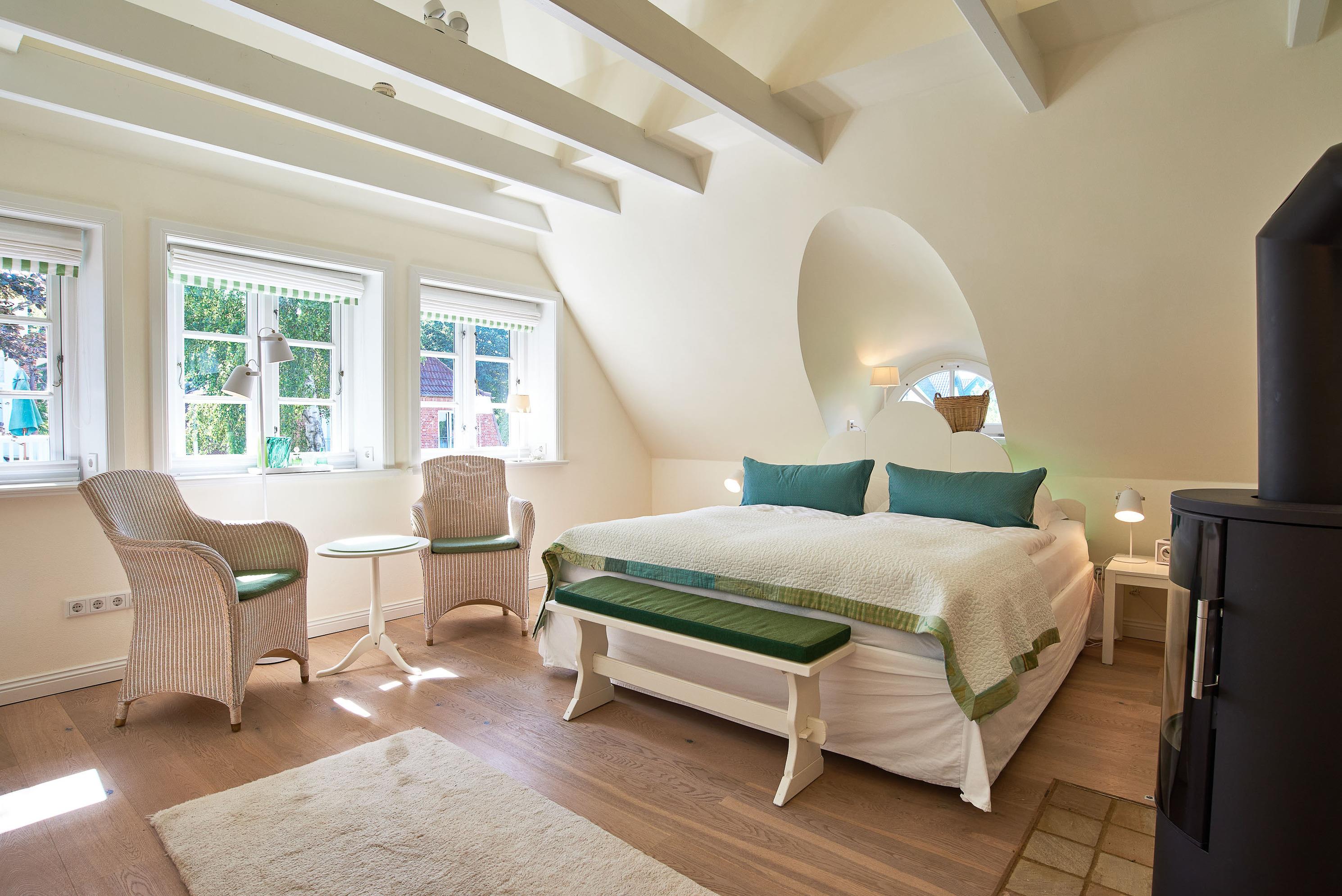 Entdecken Sie das versteckte, märchenhaft im Herzen von Wyk gelegene Einzelhaus unter Reet, das idyllisch und sehr ruhig in zweiter Reihe nur von Gärten umsäumt auf einem ca. 1.000 m2 großen, eingewachsenen Grundstück liegt. Der wunderschön angelegte Garten bietet durch innere Friesenwälle viel Privatsphäre und durch Illumination am Abend eine außergewöhnliche Atmosphäre. Die stilvolle Einrichtung der Villa ist ein stimmiger Mix aus modernen Möbeln und antiken Einzelstücken. Genießen Sie die exklusiven Bäder und den Besuch in der geräumigen Gartensauna. Sie werden sich sicher gern an die gemütlichen Abende vor dem historischen Kachelofen im Wohnzimmer erinnern. Auch zwei der geräumigen Schlafräume sind mit je einem Panoramaofen ausgestattet. Nur ein kurzer Fußweg führt Sie zu den Einkaufsmöglichkeiten und der Promenade mit Badestrand, Bars und Cafes.