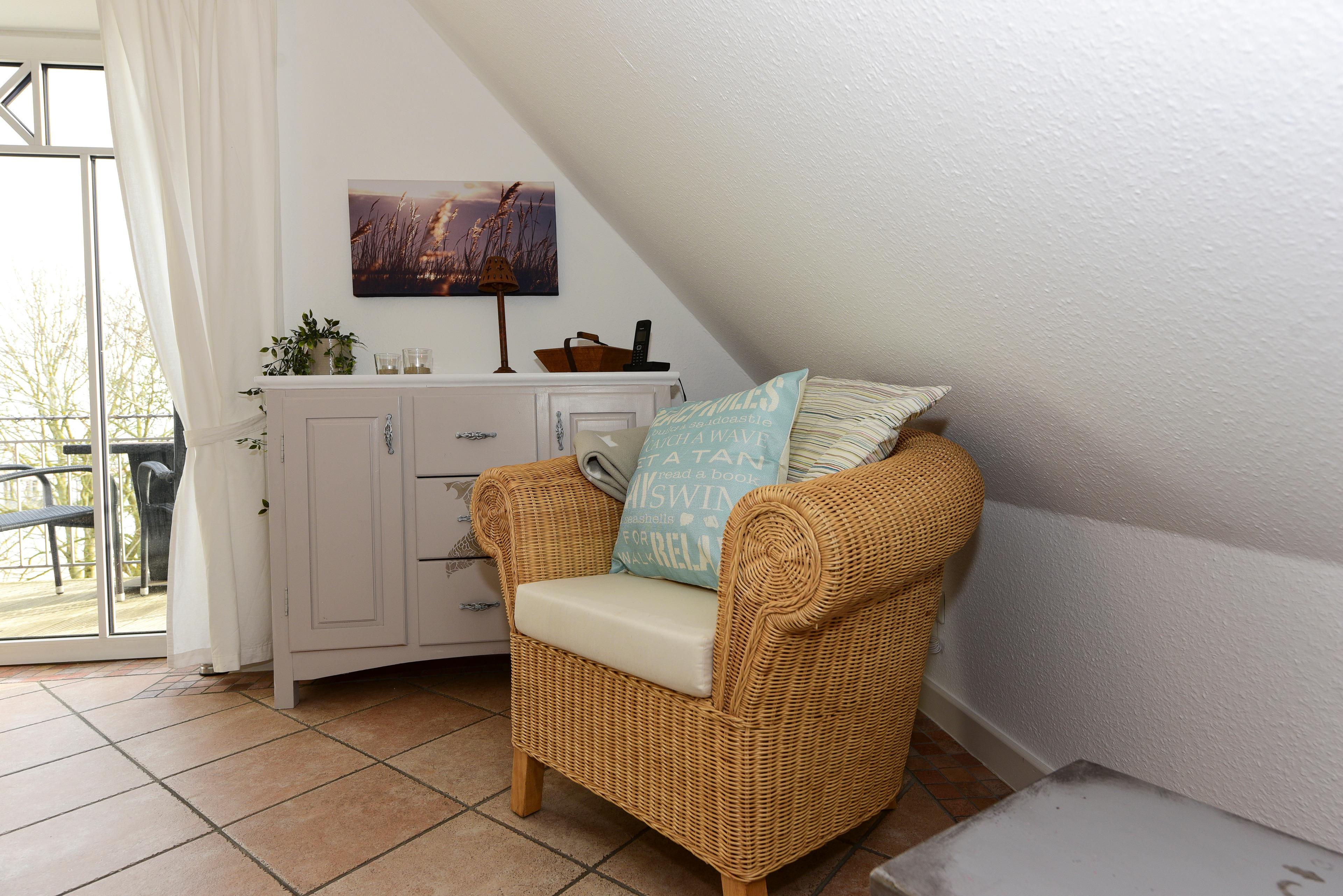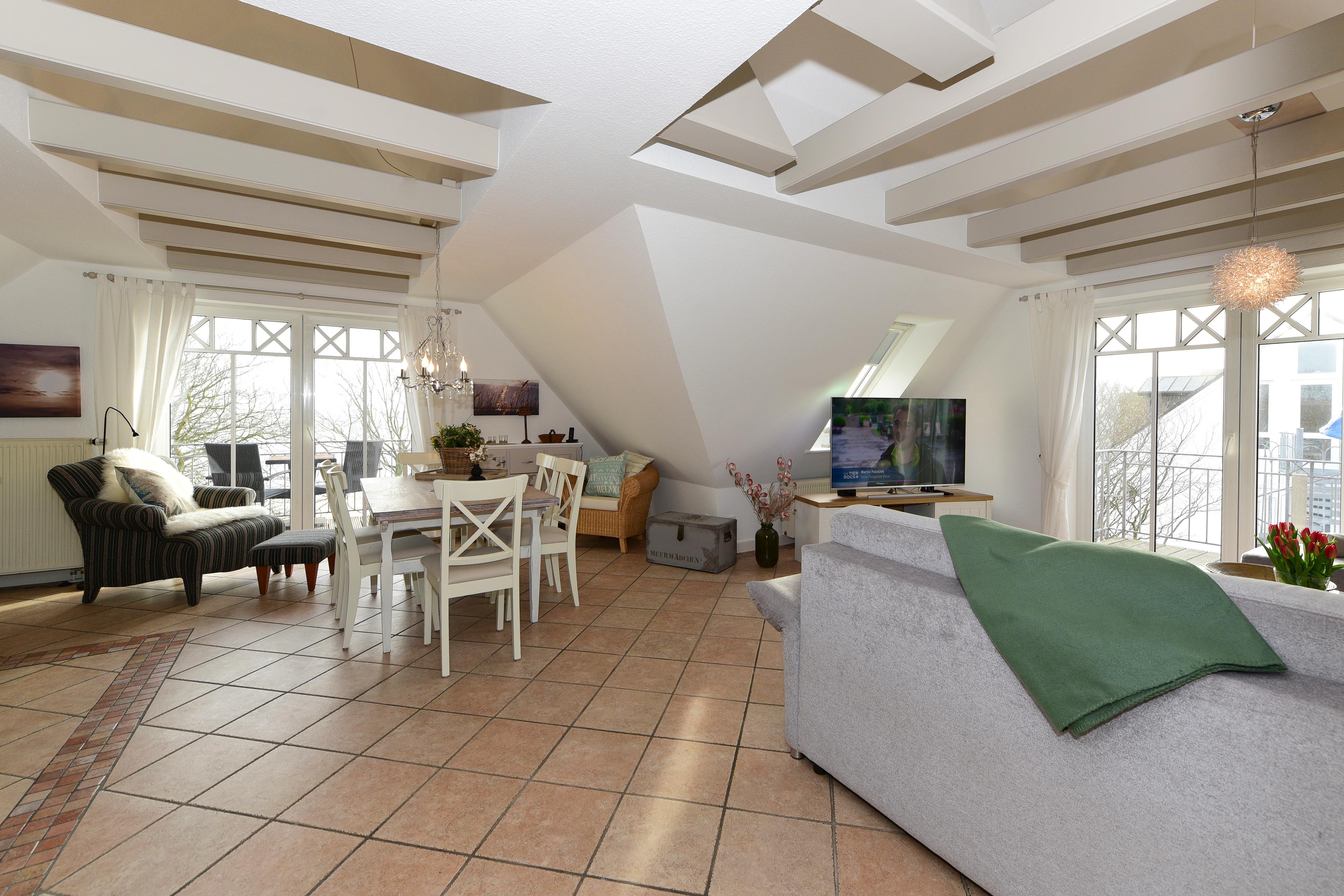 Mit modernster Unterhaltungstechnik, darunter SAT-TV, ein DVD-Player, WLAN und ein Flachbild-TV, wird es Ihnen an nichts fehlen. Die gemütliche Sofaecke lädt mit hochwertigen Möbeln und einem hellen, freundlichen Ambiente zum Verweilen ein. Das Sofa lässt sich ganz unkompliziert zu einem bequemen Doppelbett umwandeln – perfekt für zusätzliche Gäste.